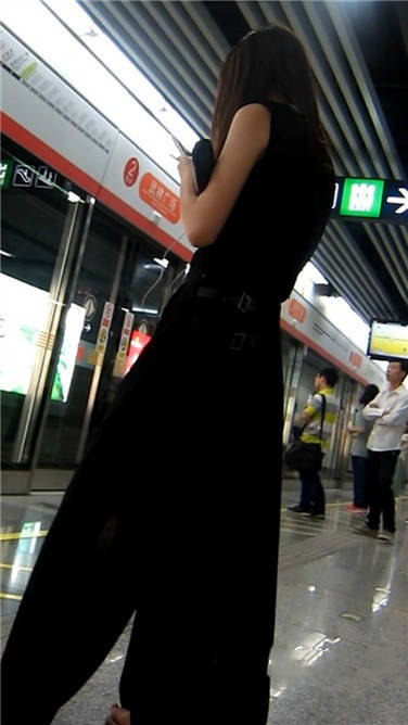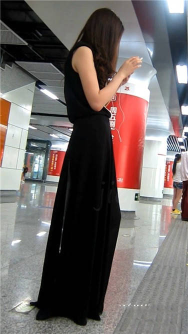 一席黑色长裙美眉在等地铁 编号3870