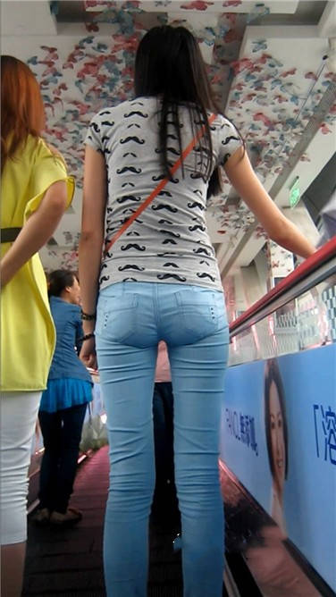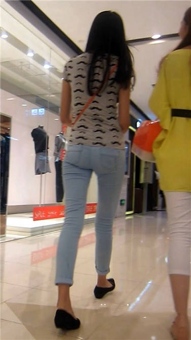街拍苗条身材紧身蓝牛小清新美女 编号3880