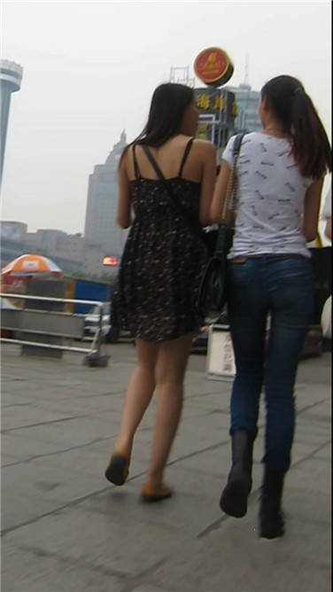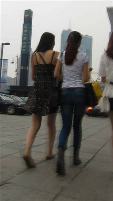 街拍三姐妹逛街,一路有说有笑! 编号3884