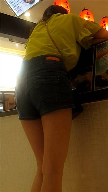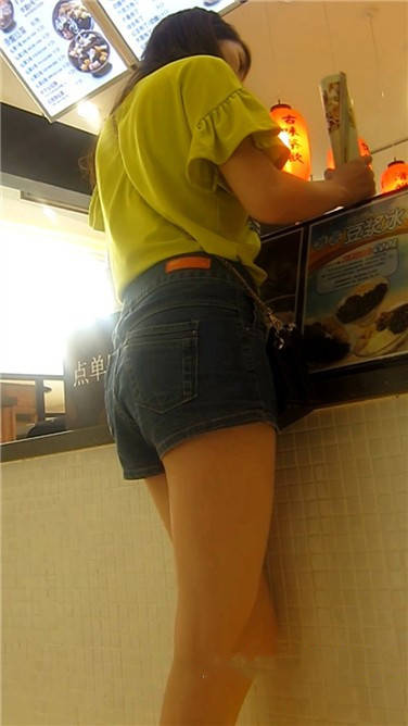街拍逛商场买奶茶的牛仔热裤青春妹子 编号3887