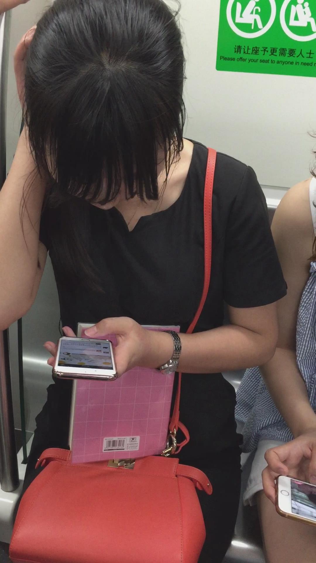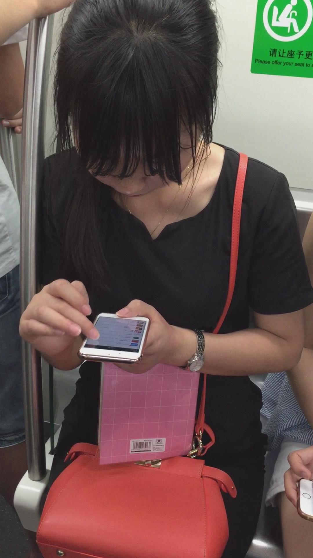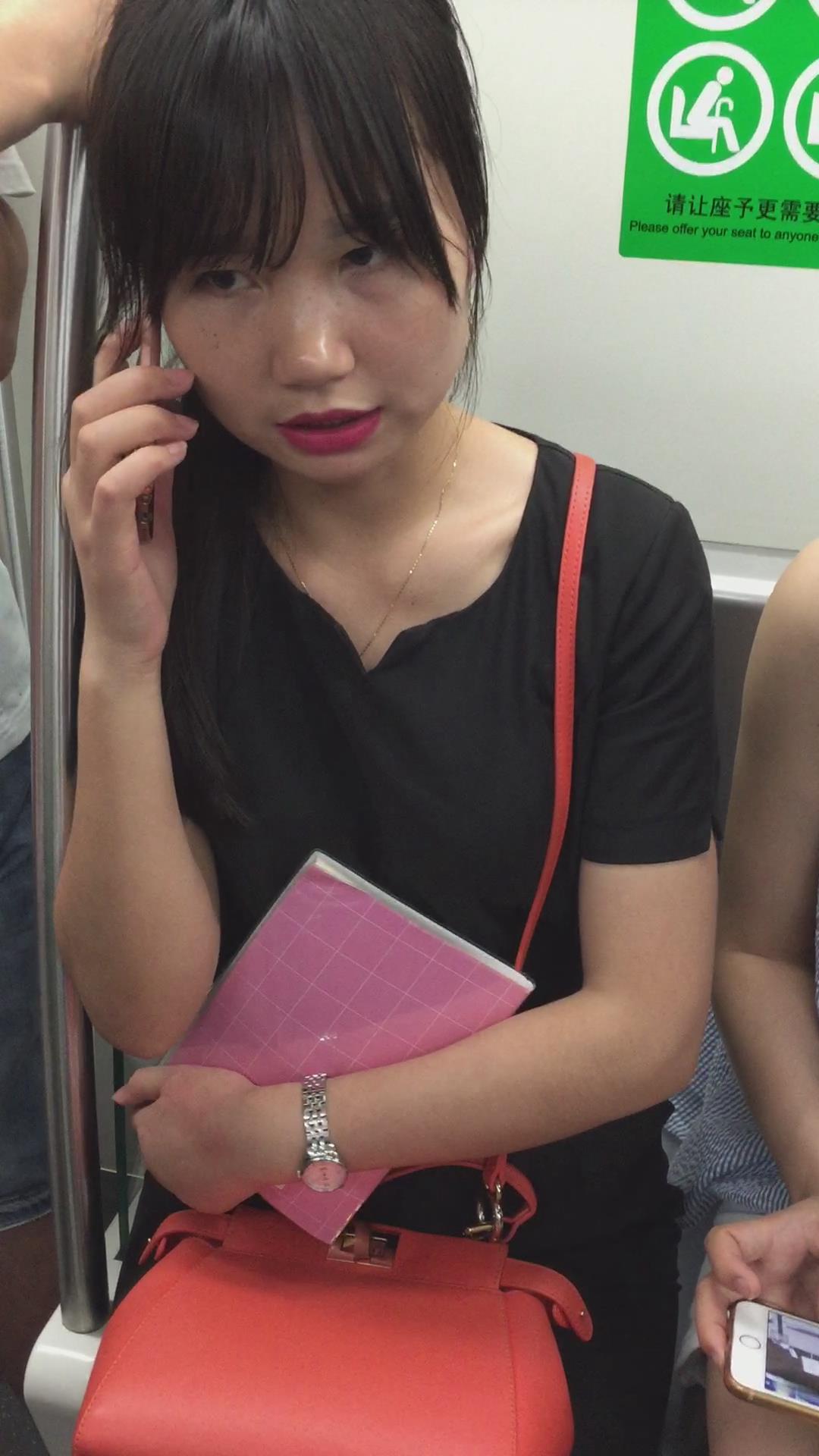地铁上遇见文静甜美OL制服美女 编号5208