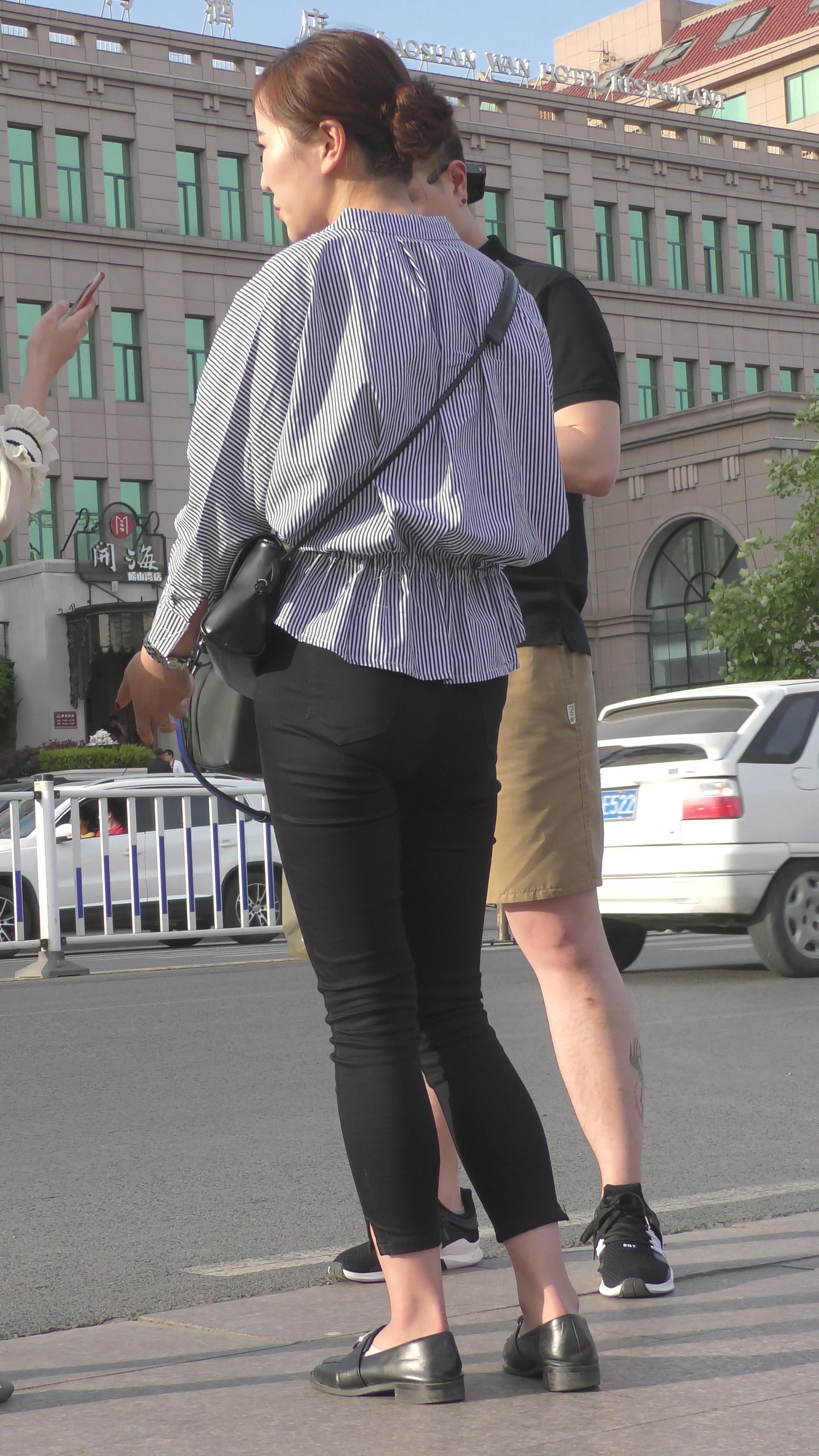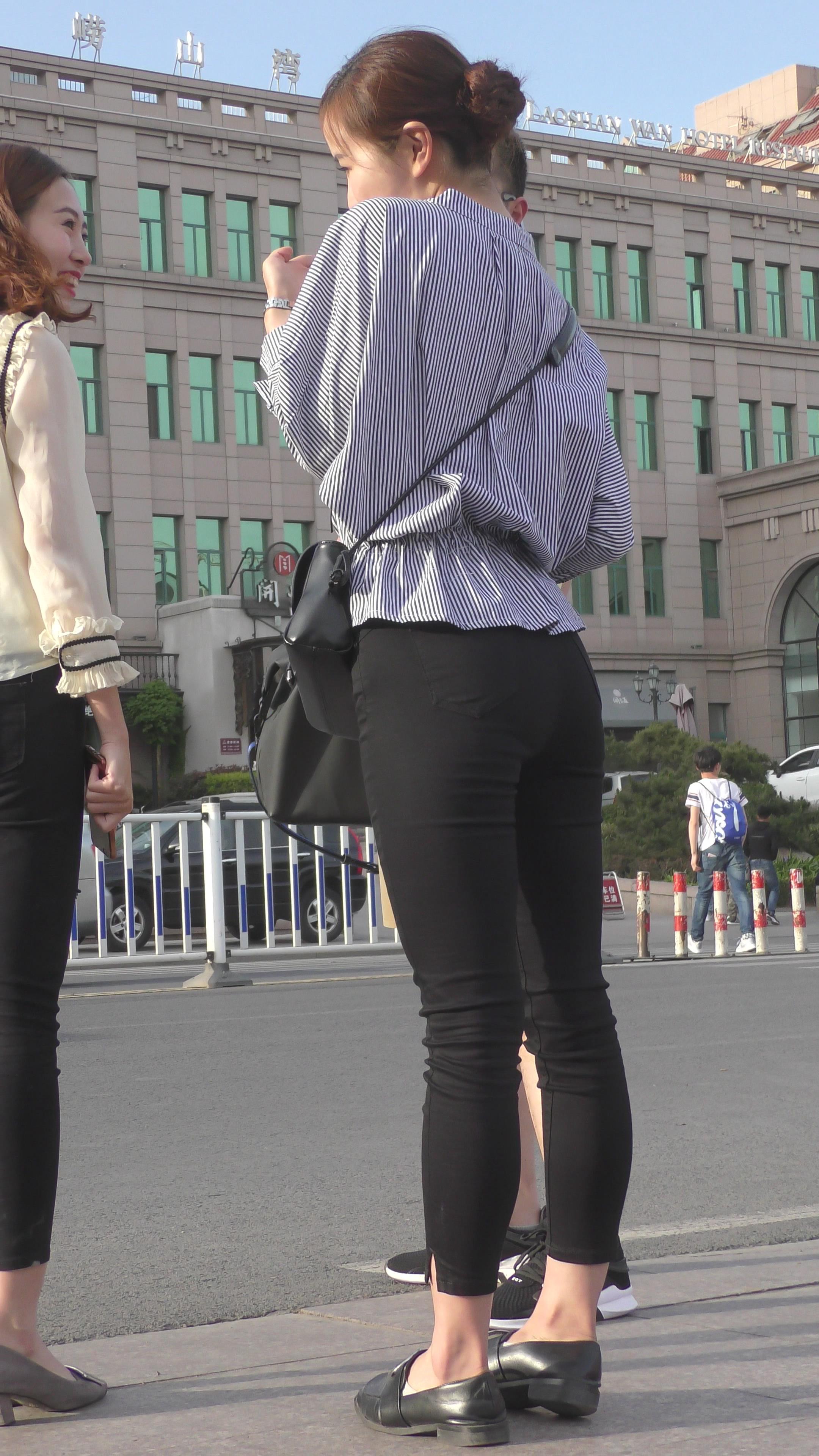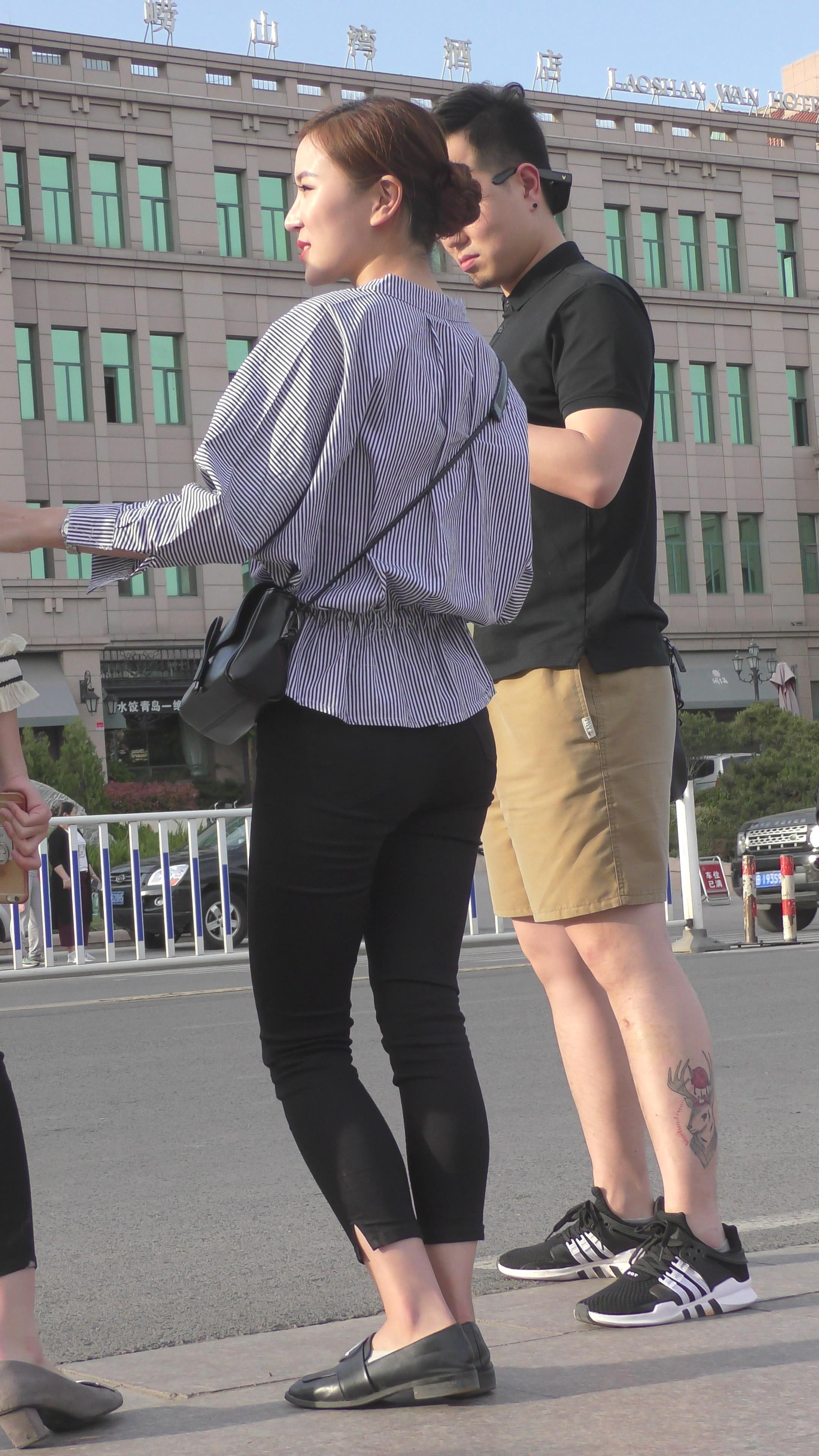 4K 黑色紧身裤街拍美女姐妹闲聊编号3924