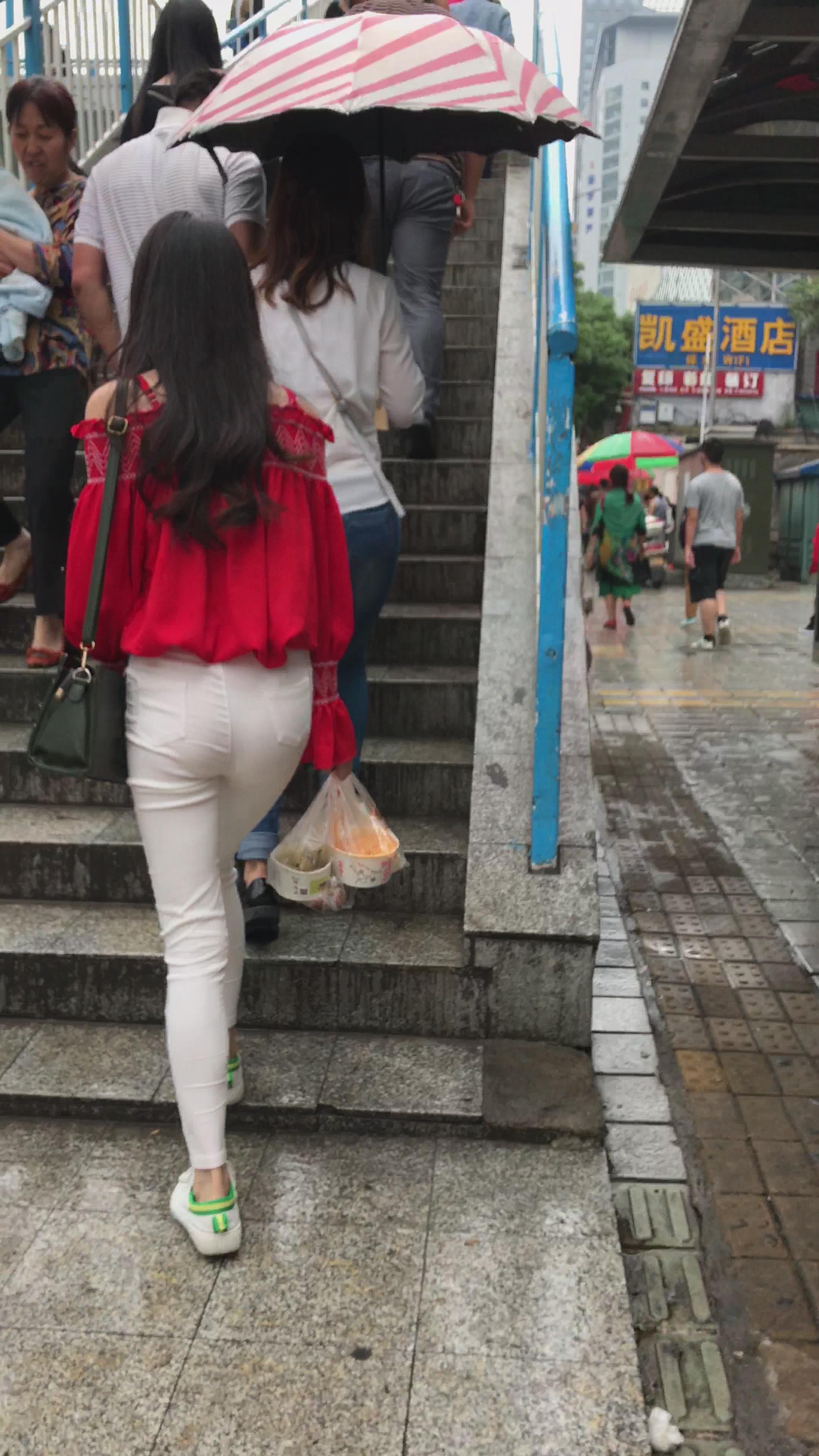 4K - 红色吊带衫紧身裤小姐姐真想顶他一下编号3937