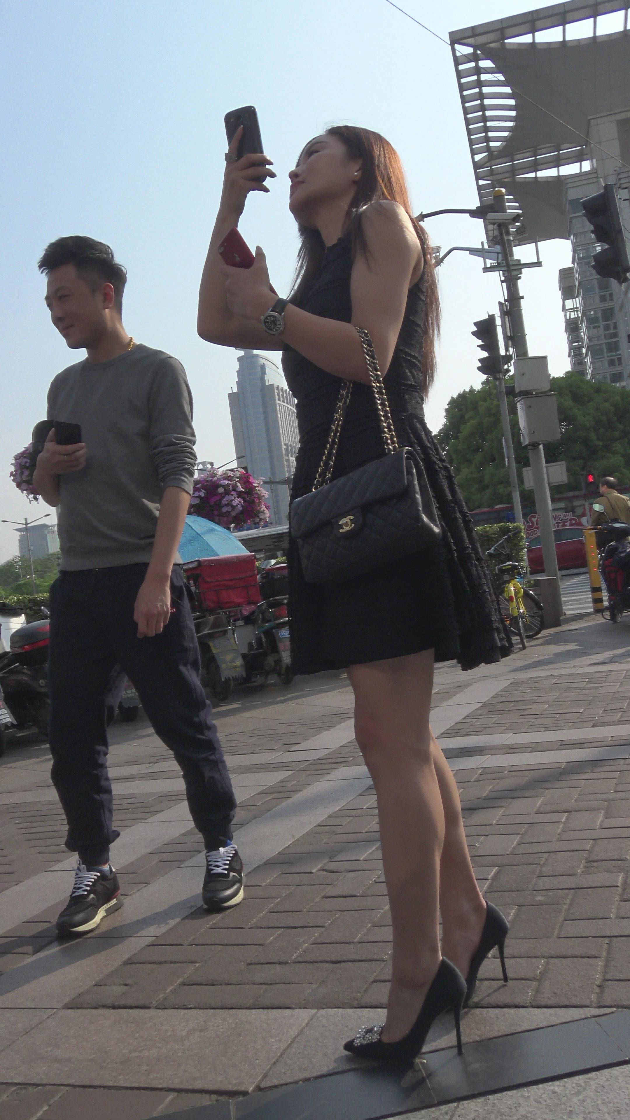 性感黑色连衣裙美女拿着新款苹果手机玩拍照 编号7906