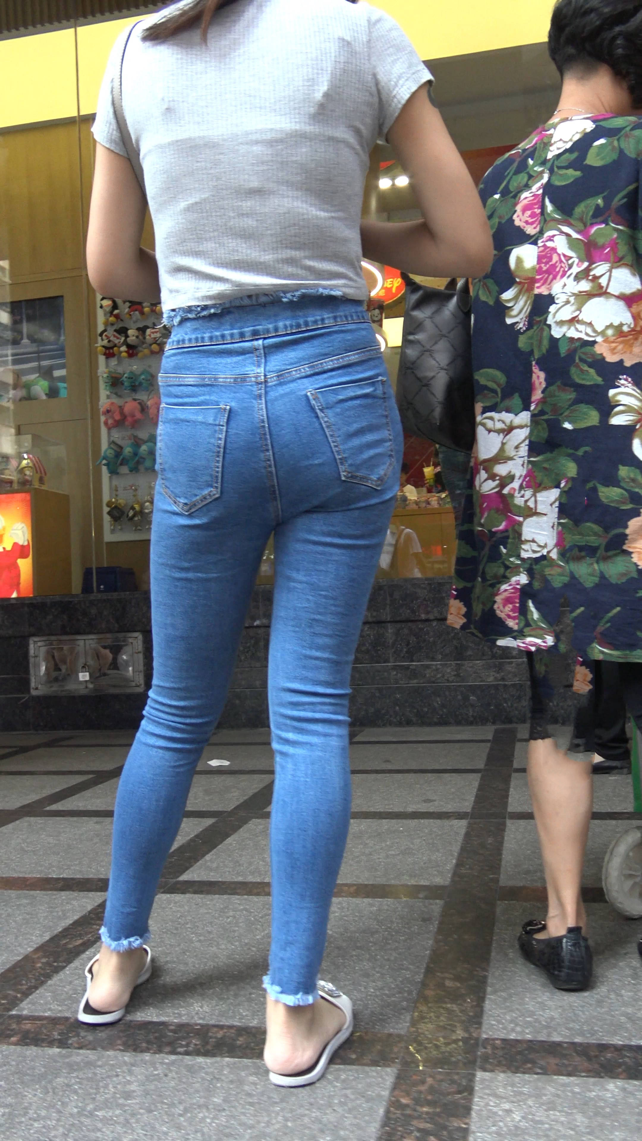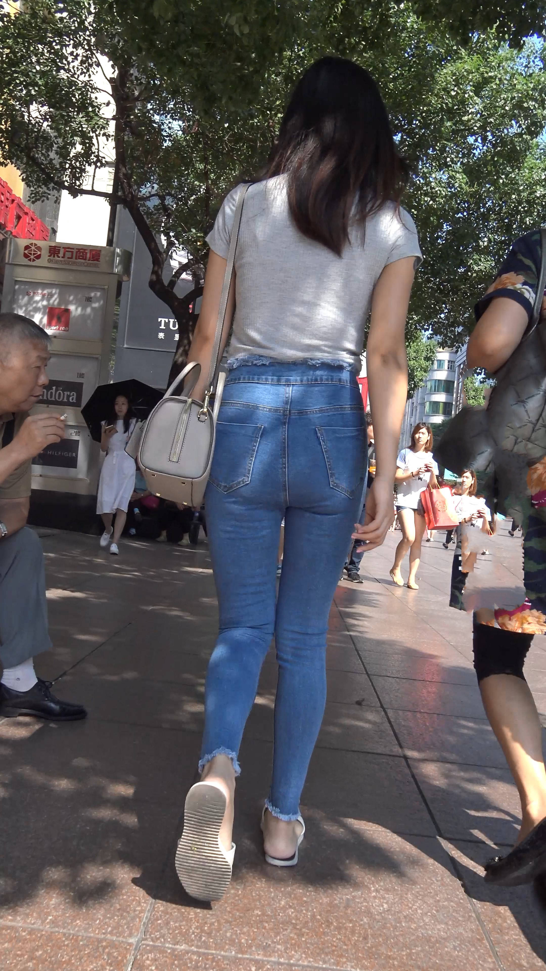 4k-街拍紧身蓝色牛仔裤丰满美女 编号7943