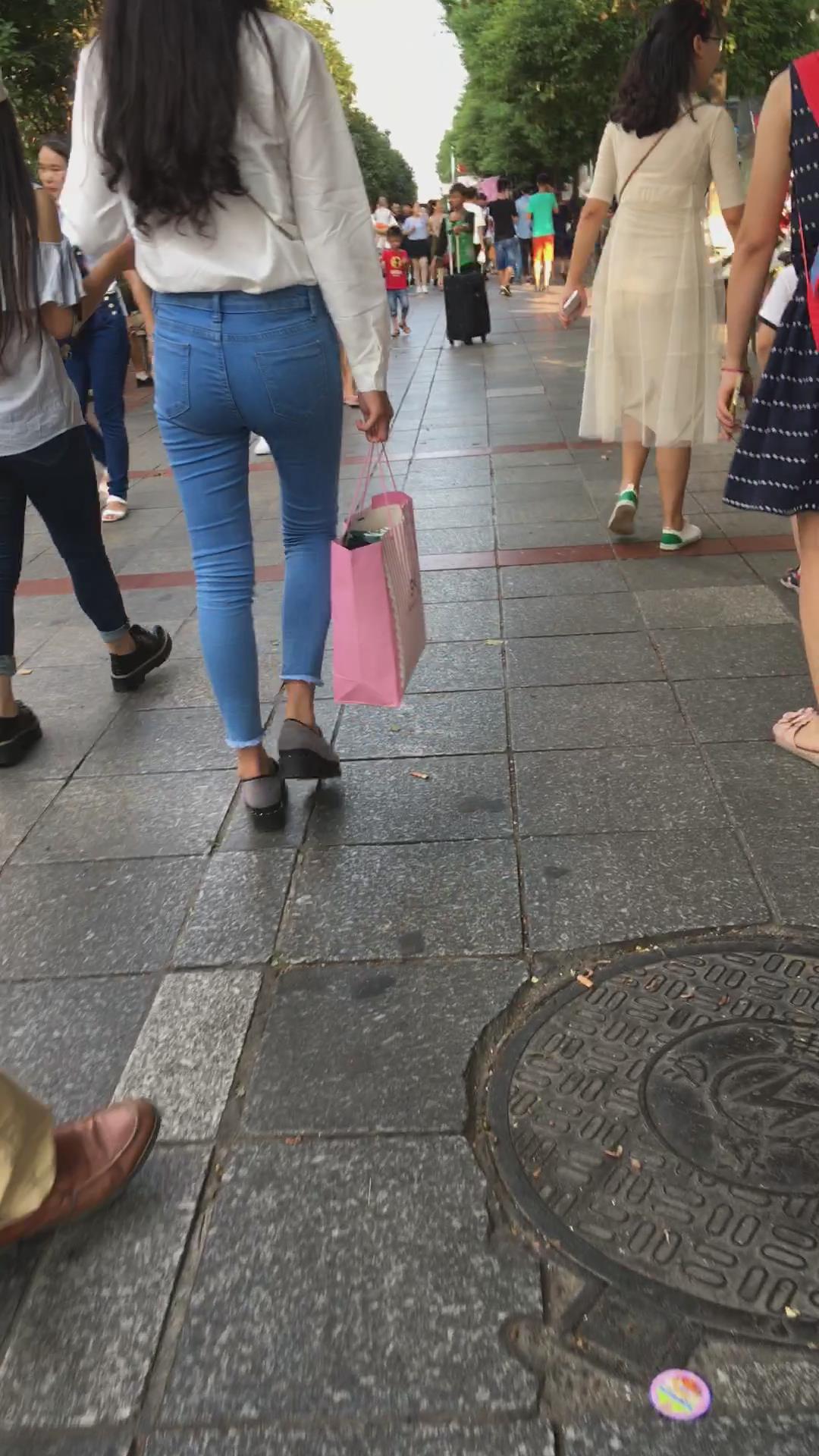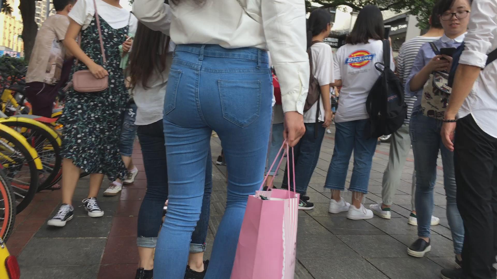 街拍绝世美臀紧身蓝色牛仔裤小清纯美女 编号6079