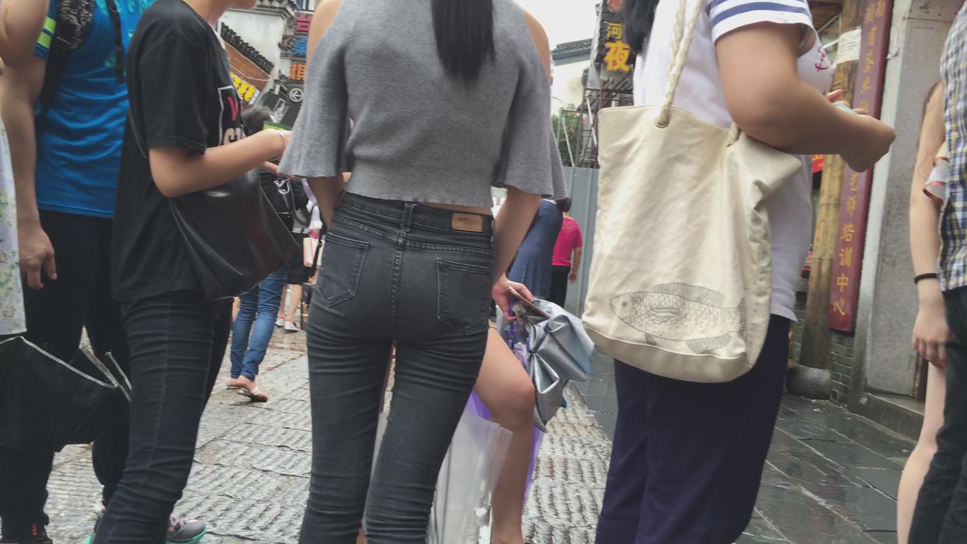 极品紧绷灰色牛仔裤苹果臀性感气质美女 编号6089