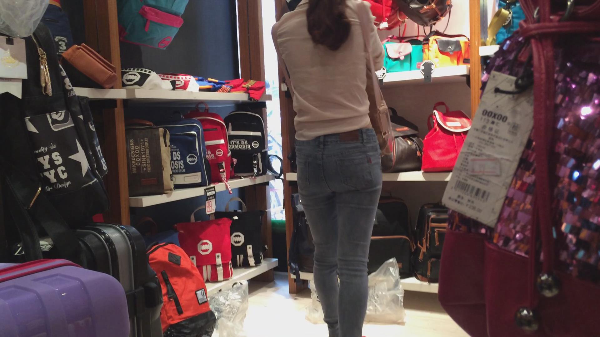 极品翘臀紧身蓝牛美女买包包 编号6094