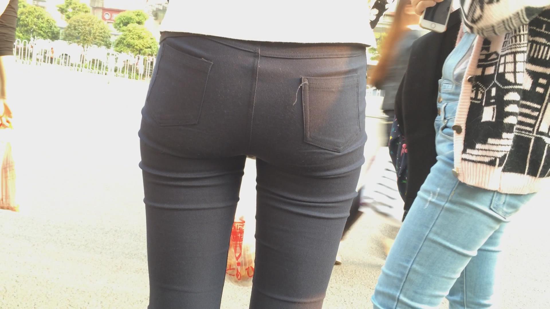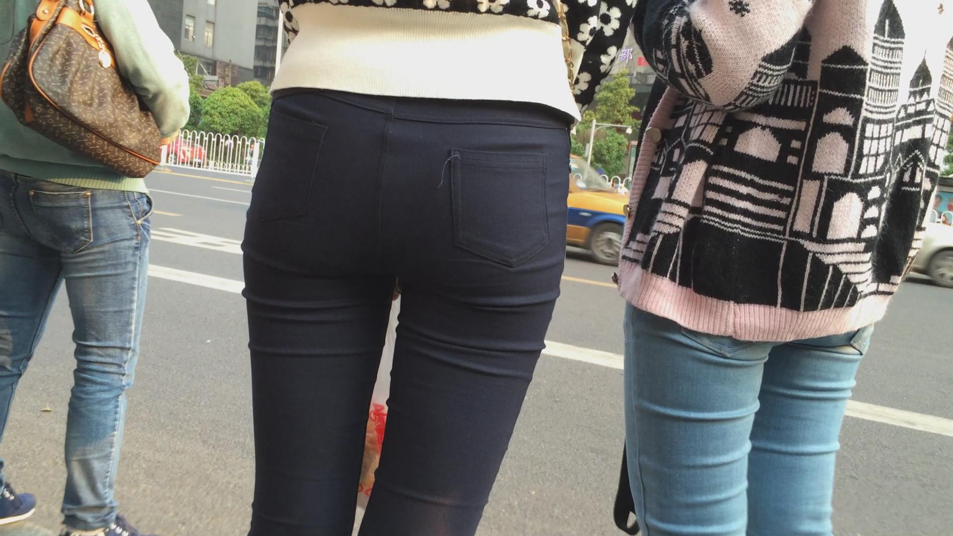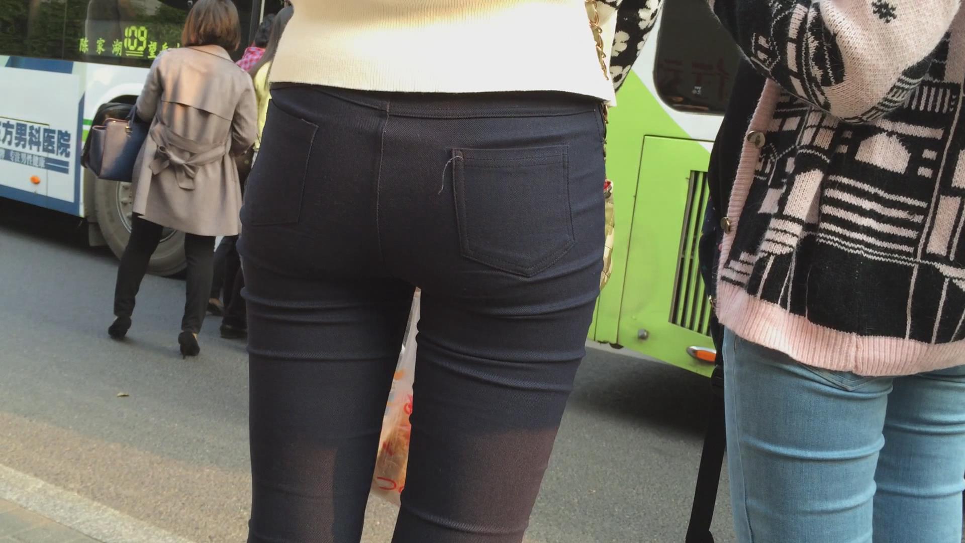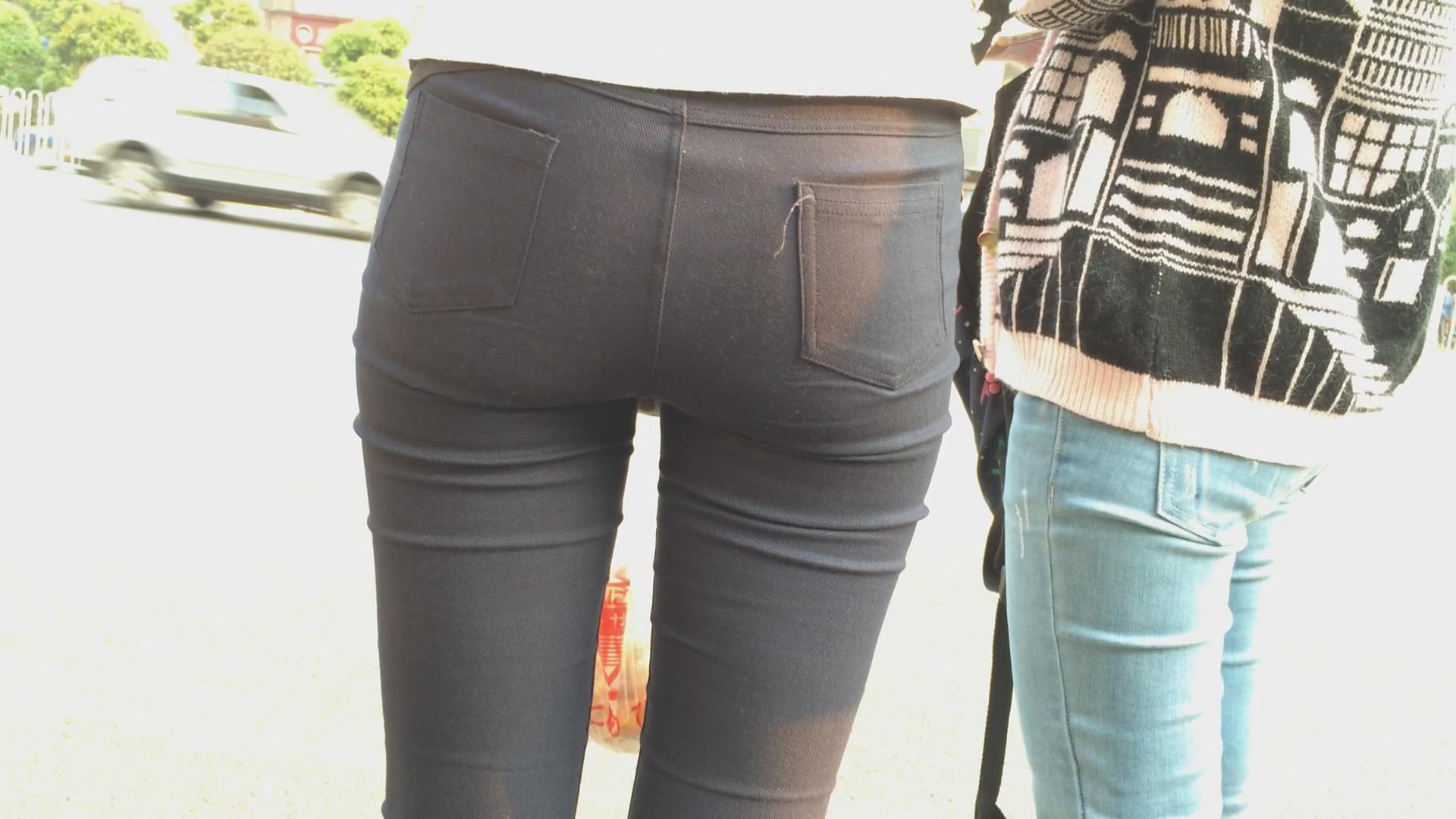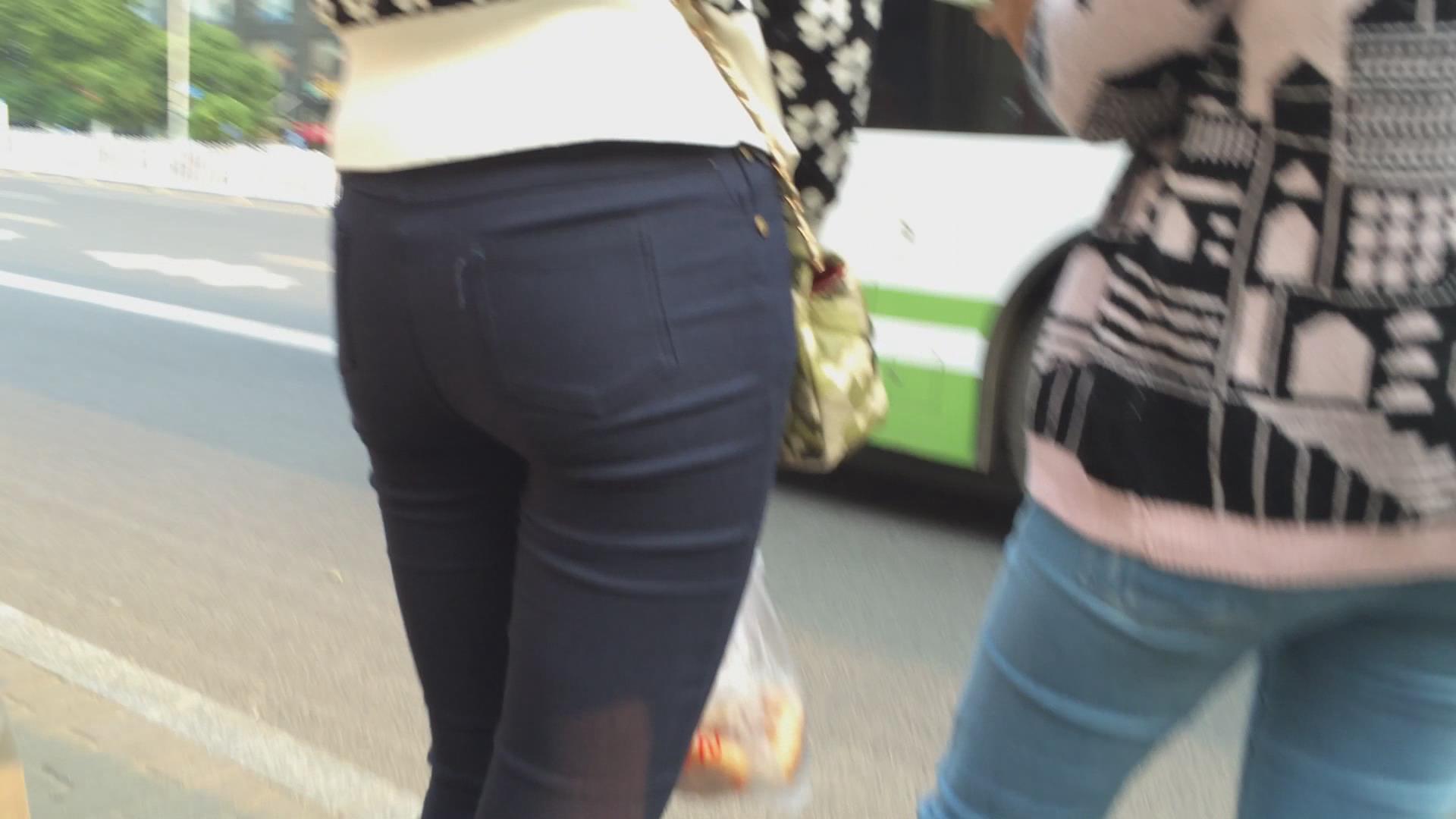 紧身黑裤美臀女孩在等公交 编号6095