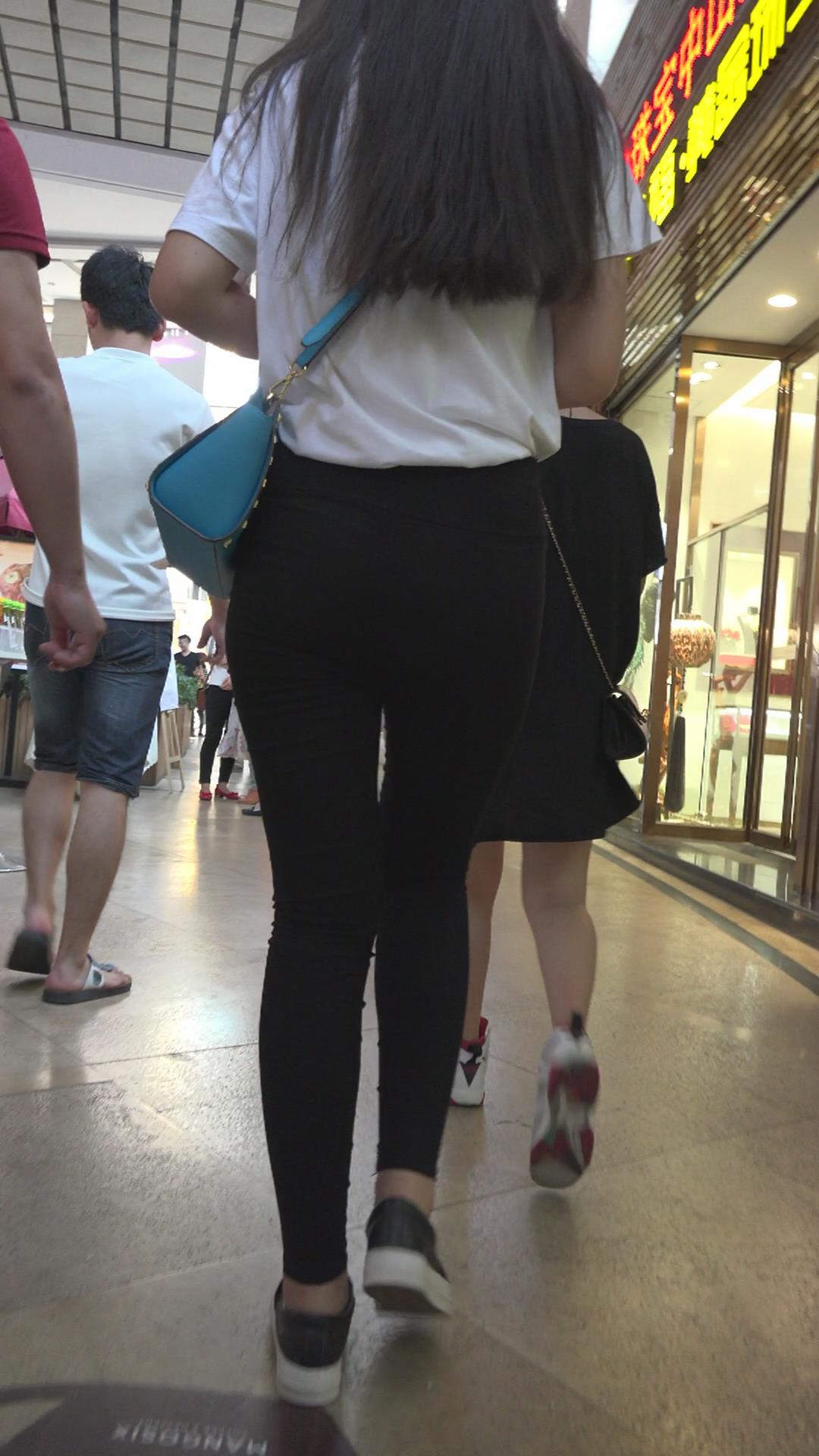 街拍紧身黑裤蜜桃臀美女 编号6098