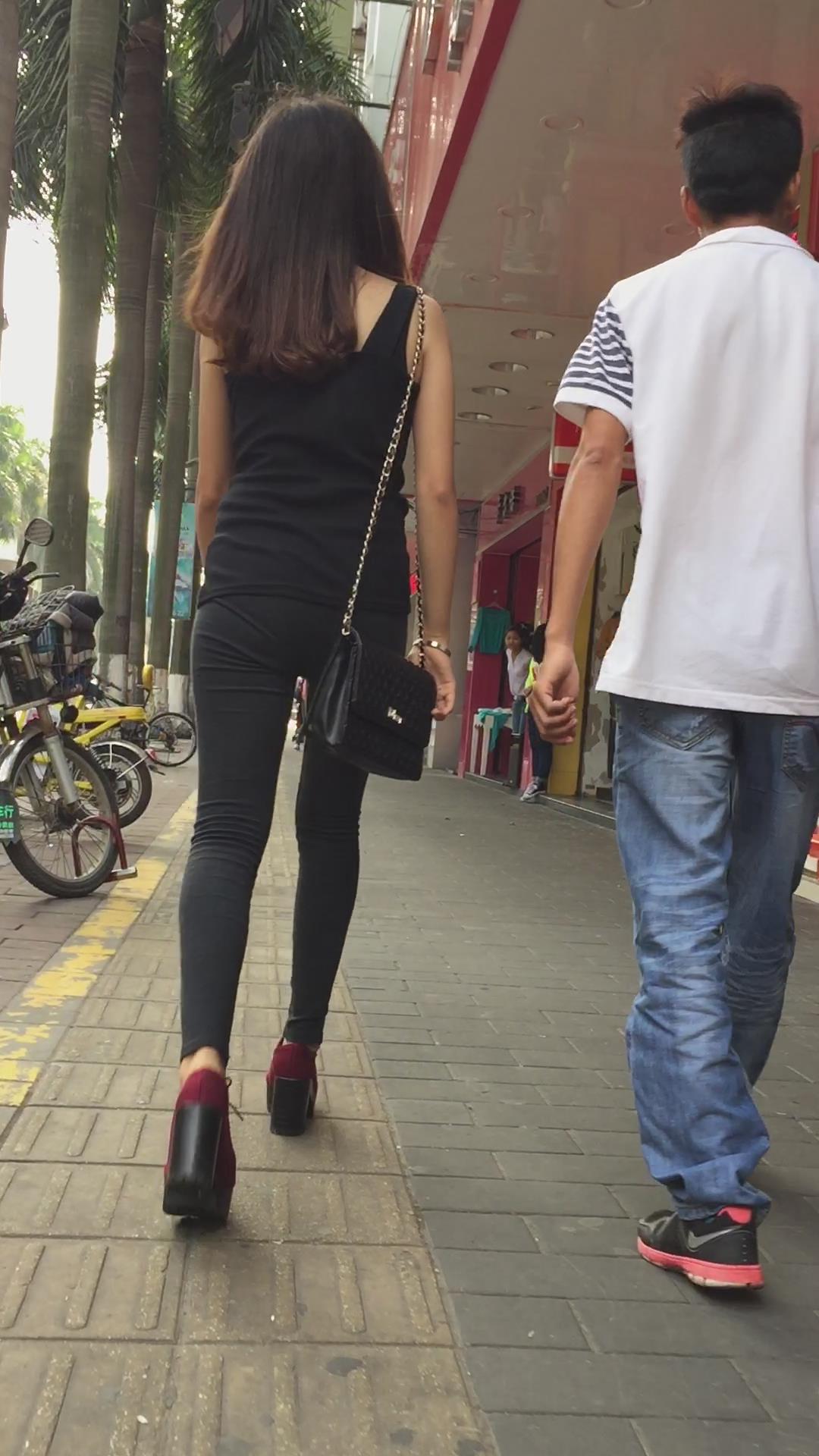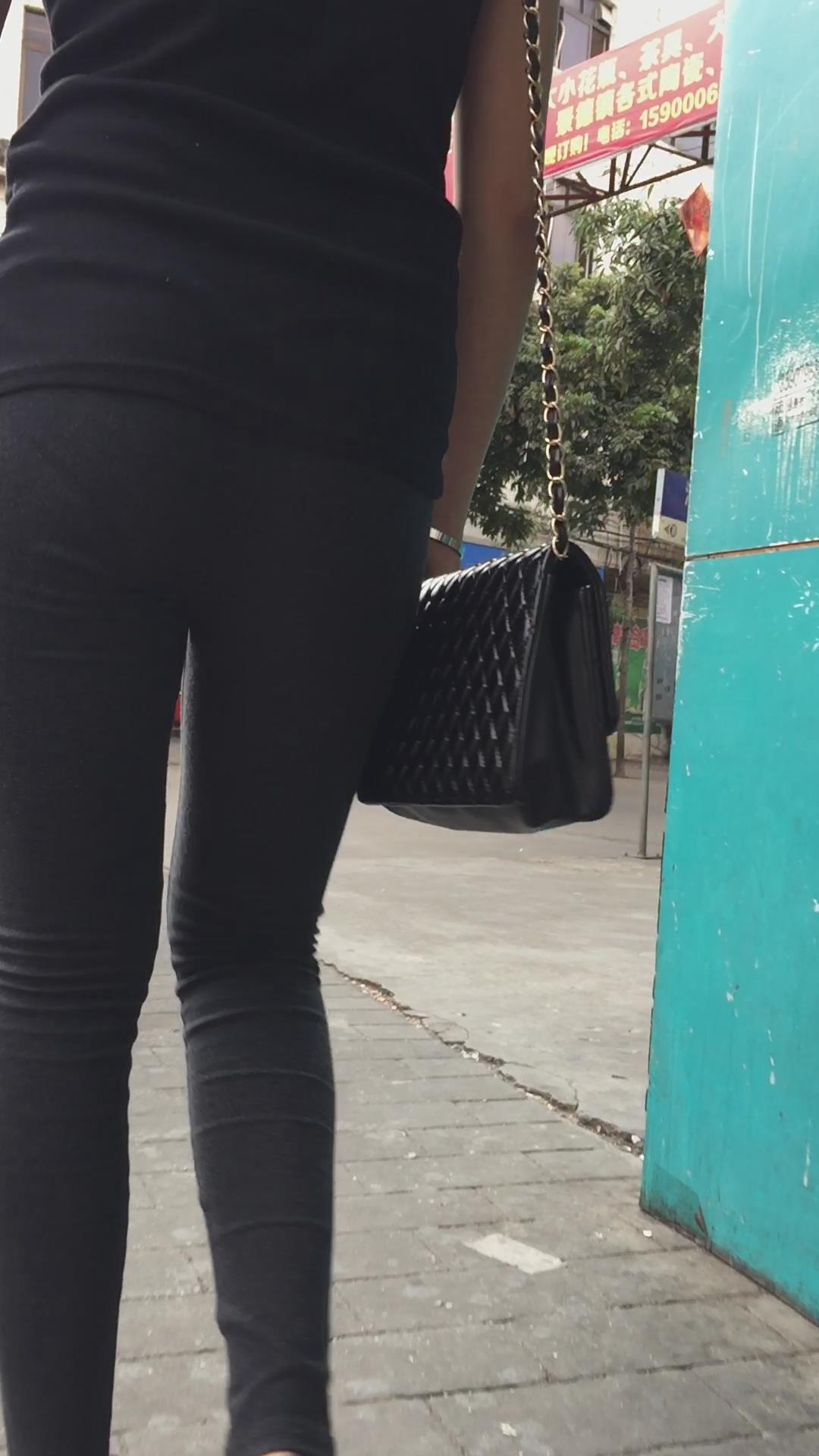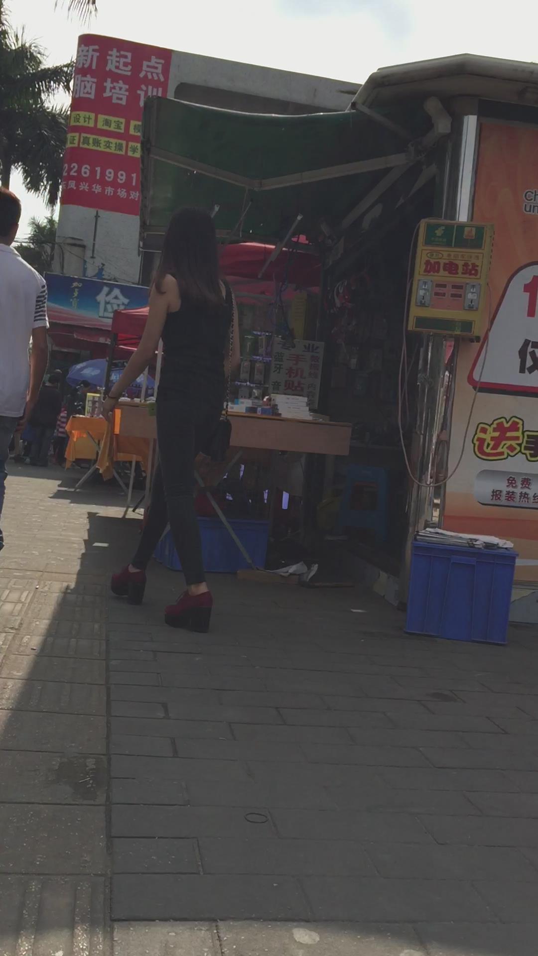 好身材紧身黑裤圆臀坡高跟鞋女孩 编号6100