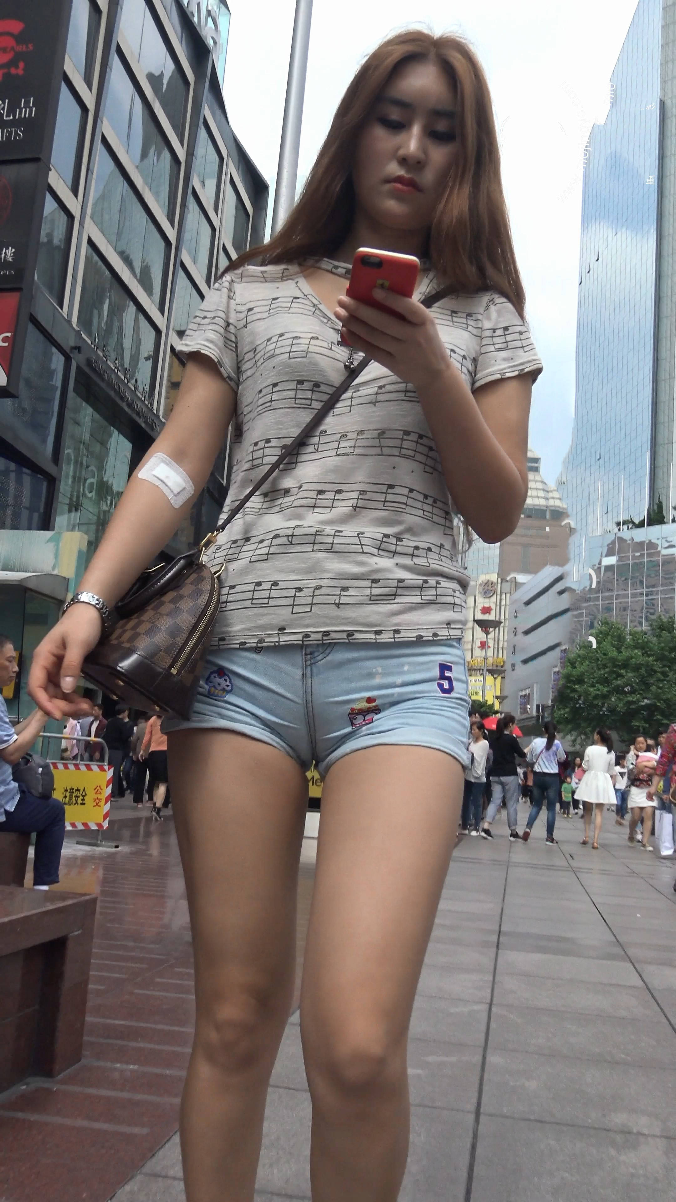 4k-笑容灿烂的丰满热裤光腿运动鞋美眉,三角区饱满 编号7946