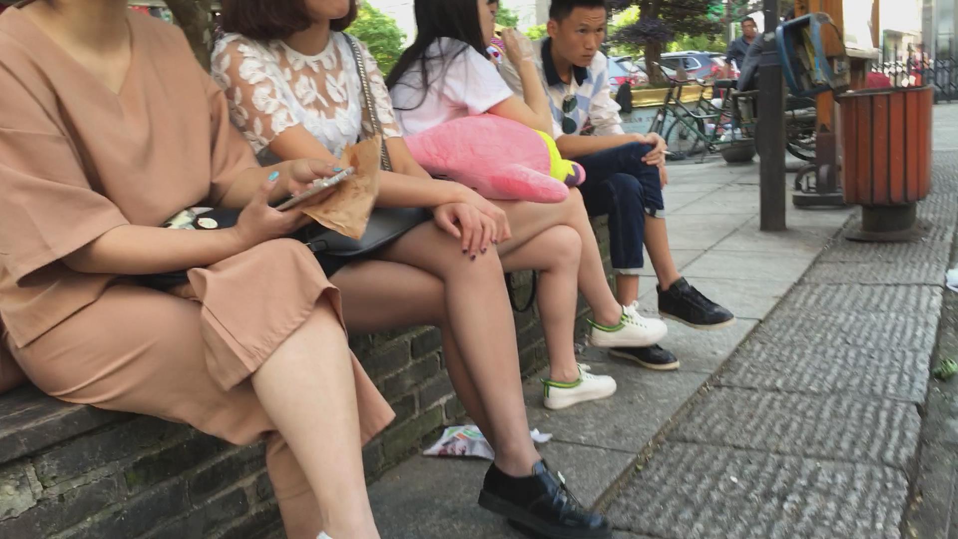 广场边花坛坐着跟闺蜜吃东西聊天的妹子 编号5172
