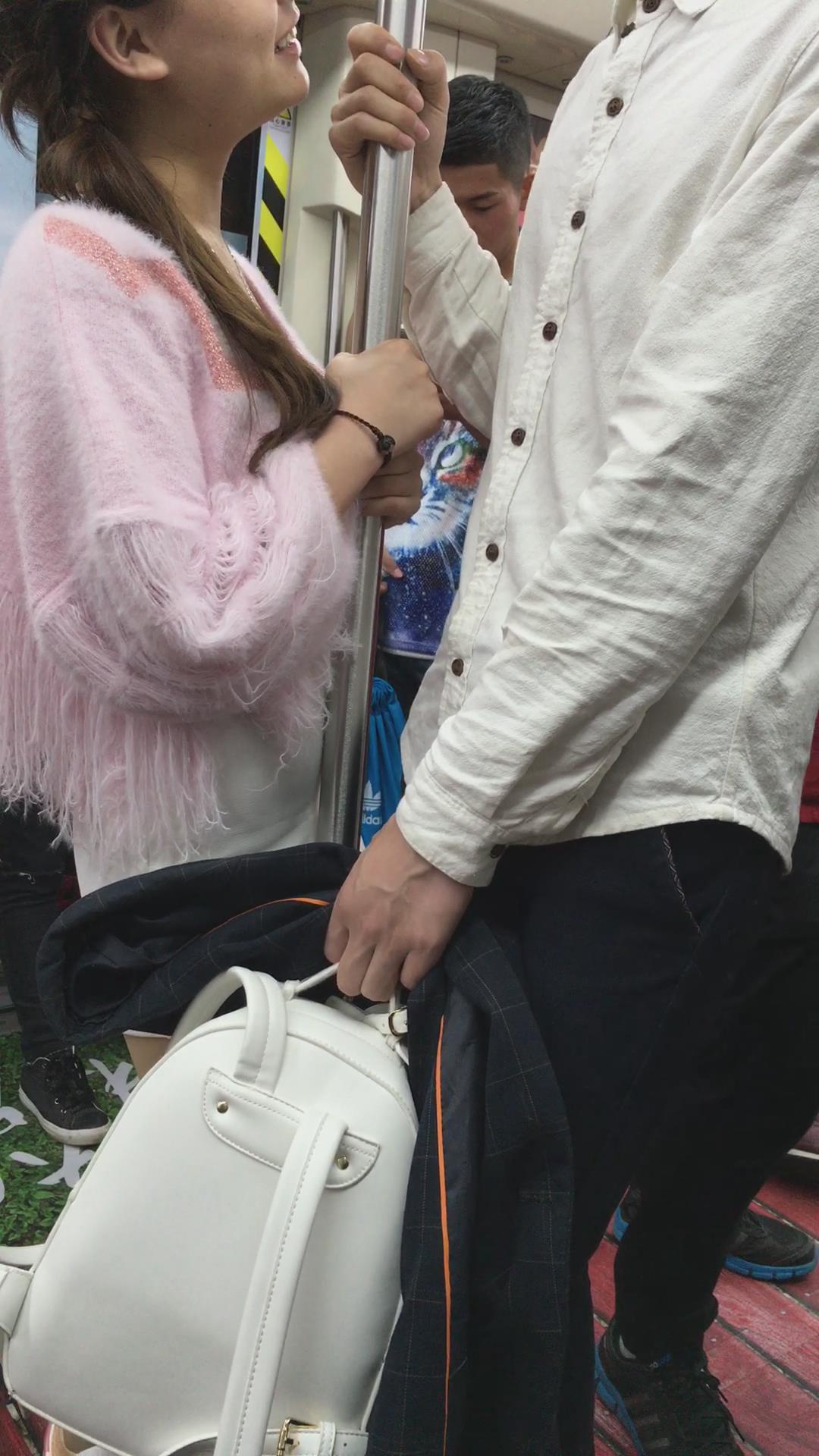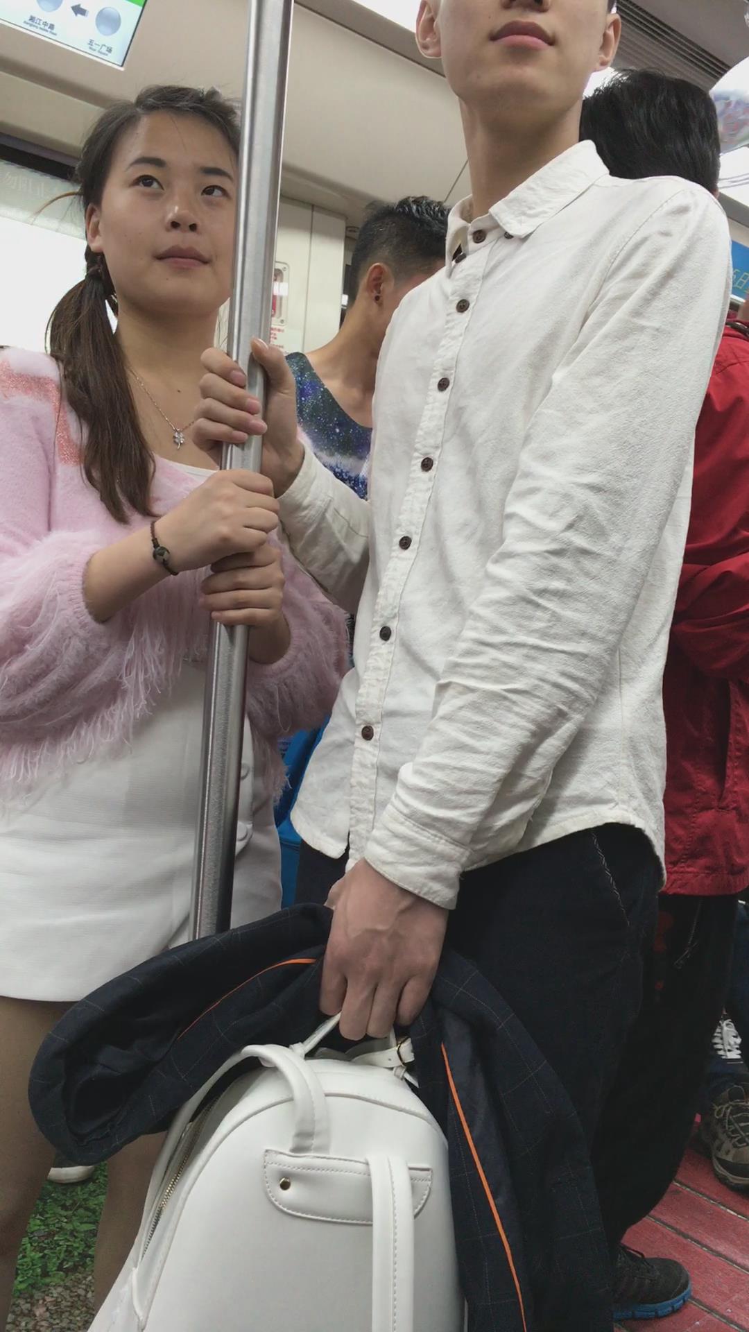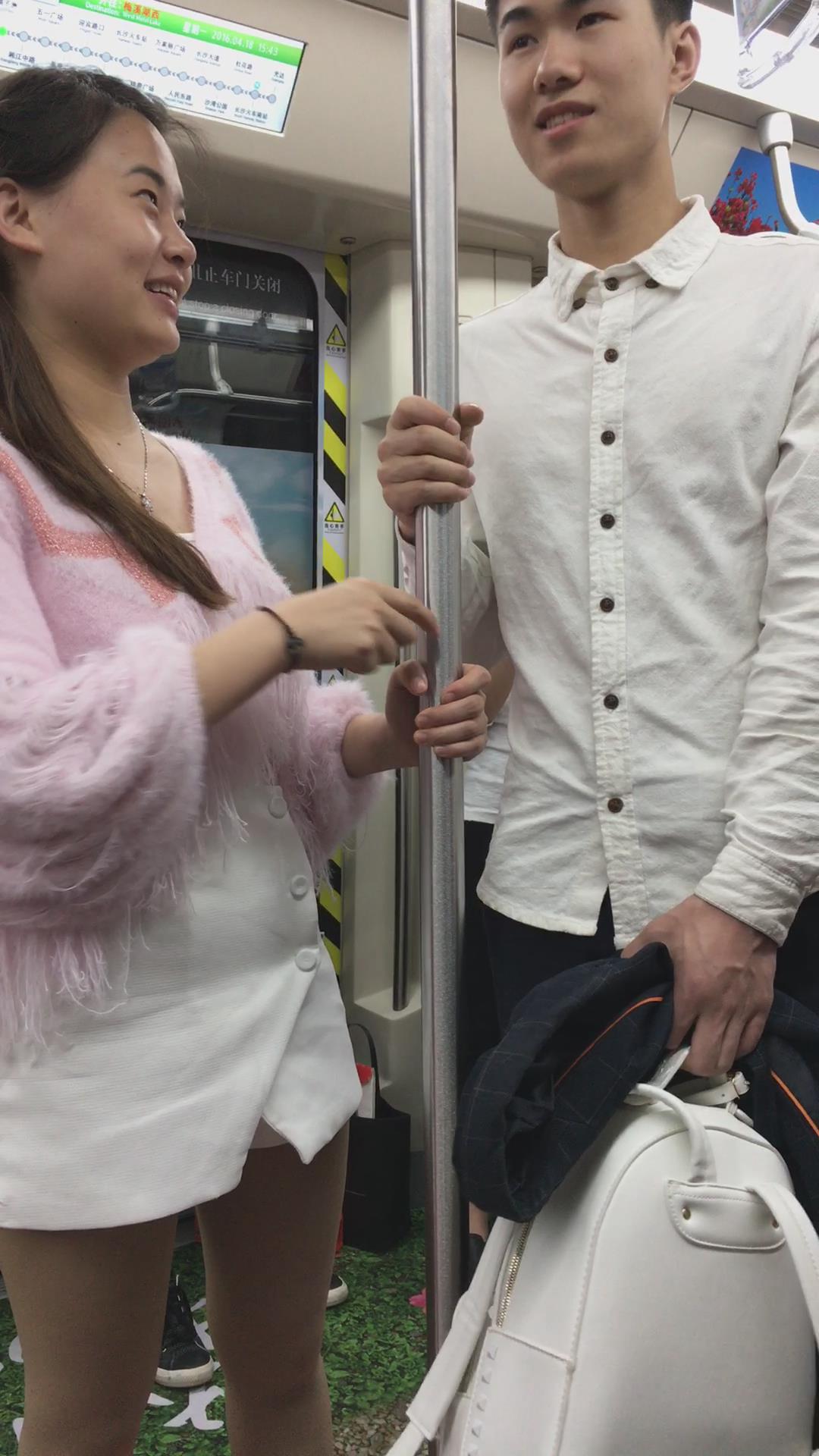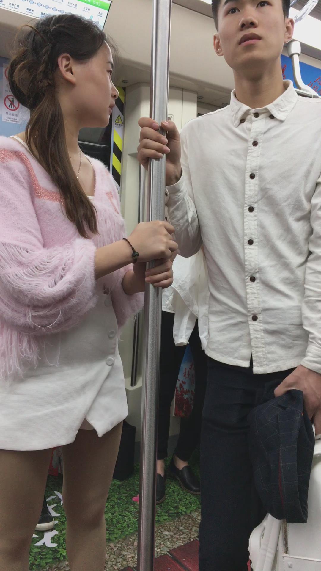 粉色系少女跟她的小男友搭地铁,便宜了这小子 编号5173