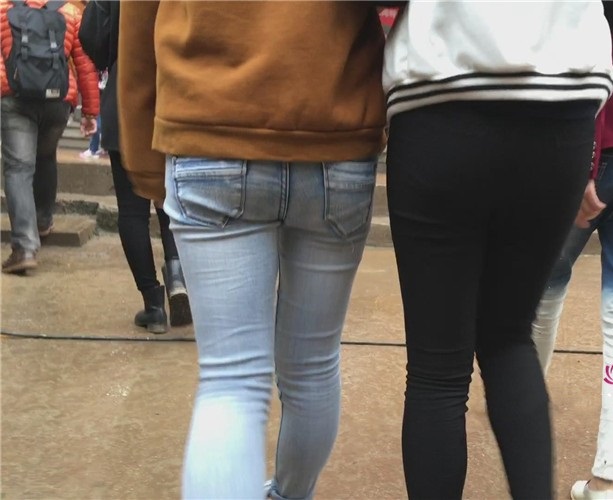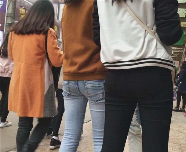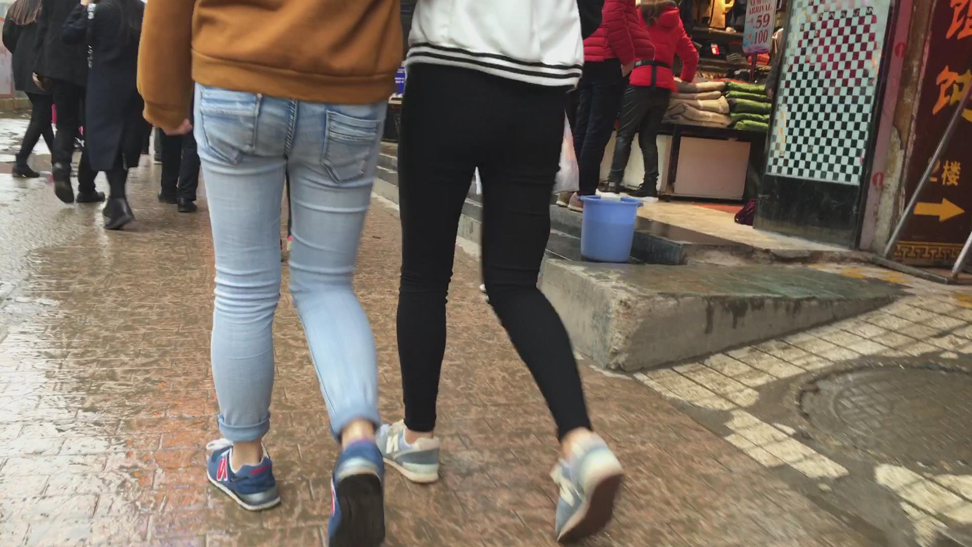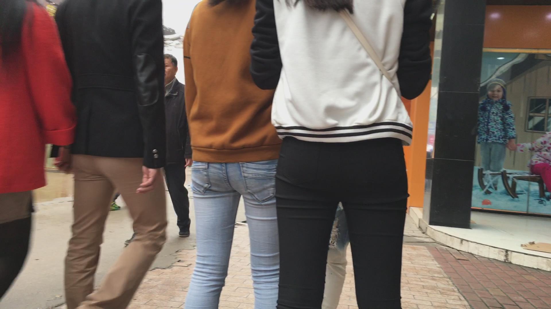 紧身圆臀姐妹花逛街,年纪不大臀很翘 编号6106