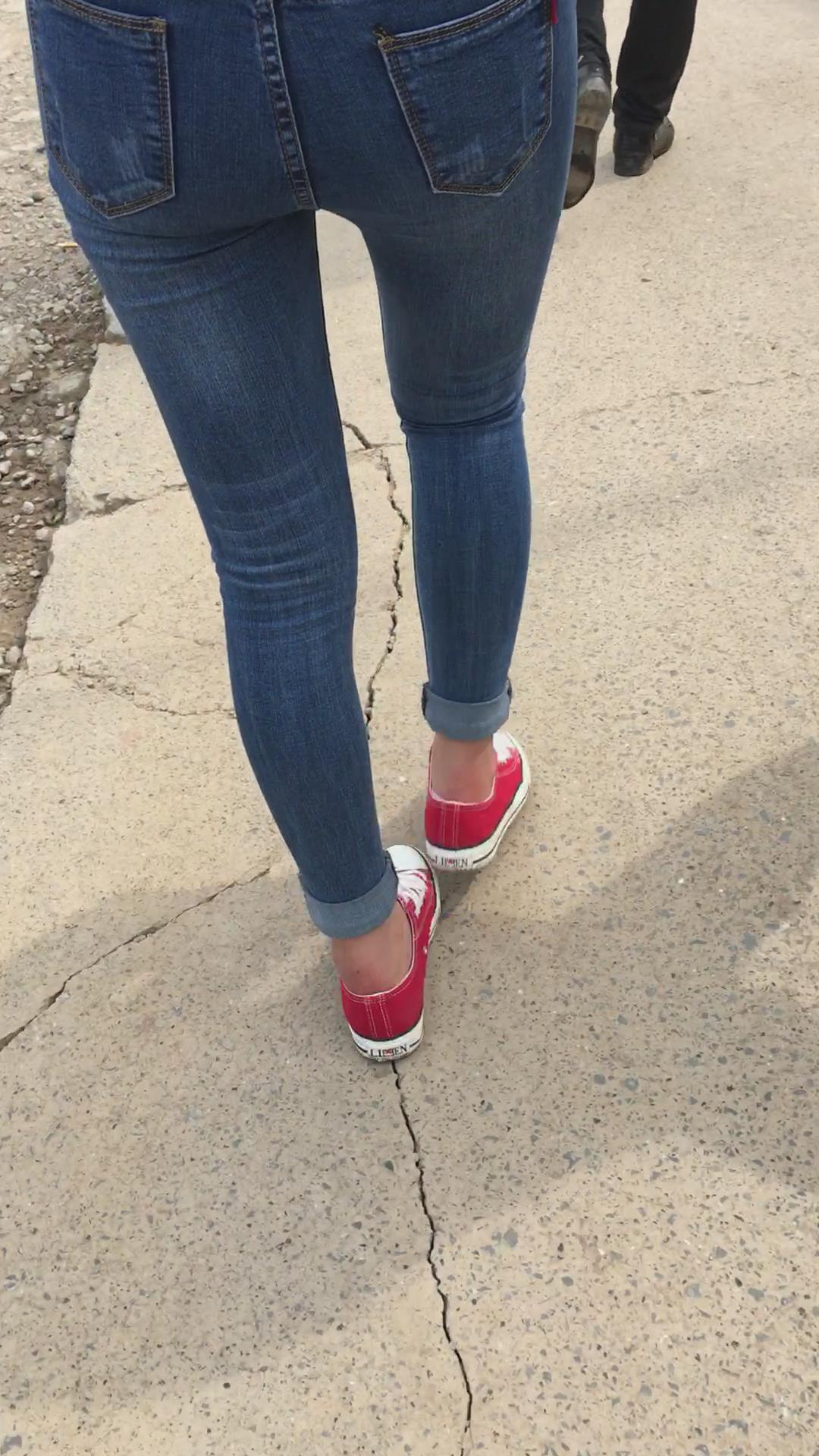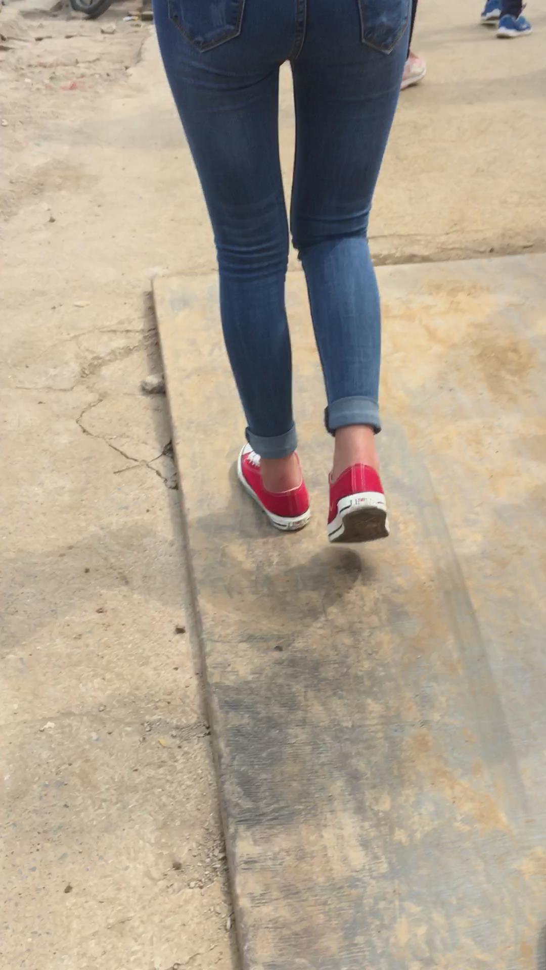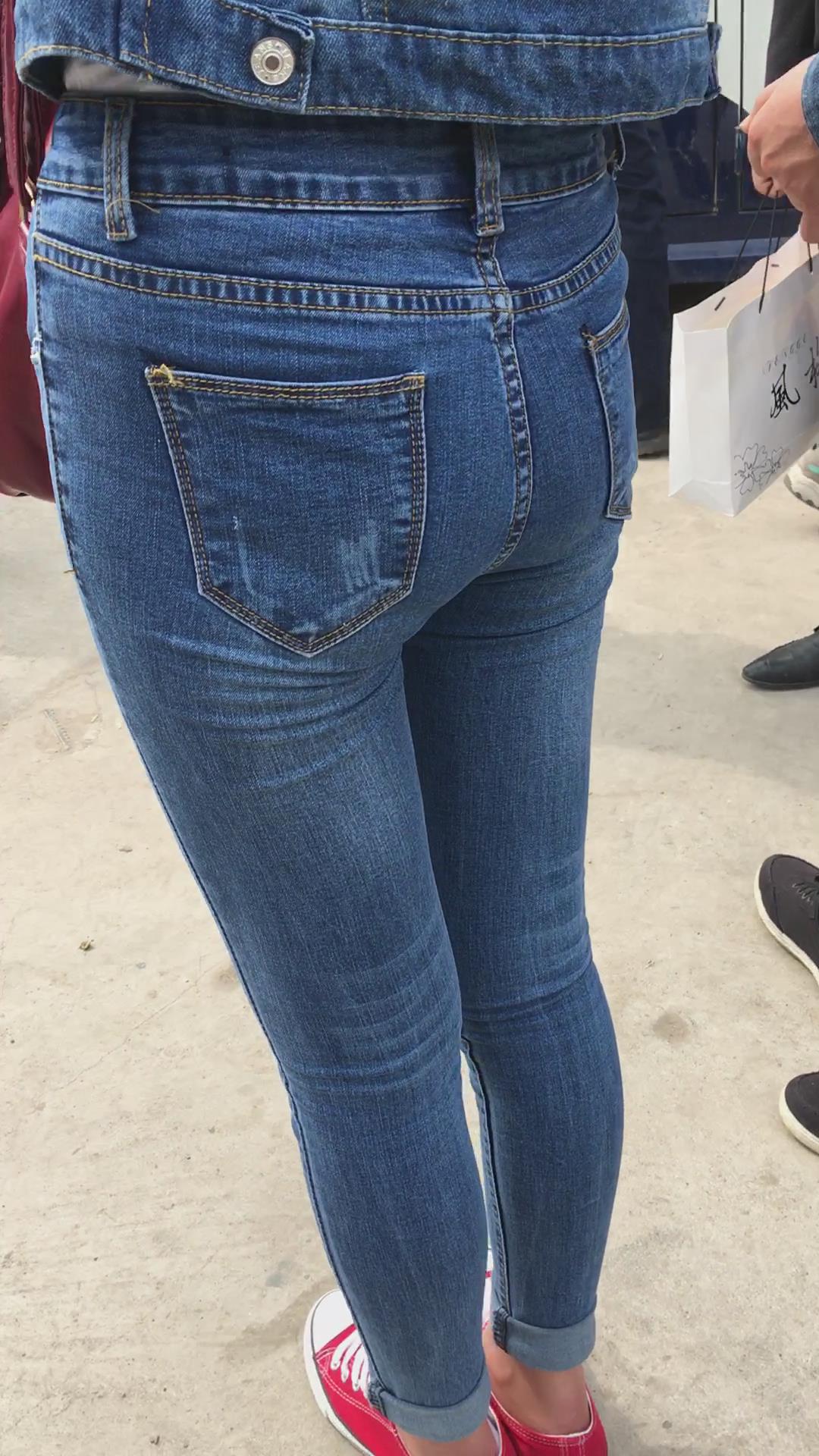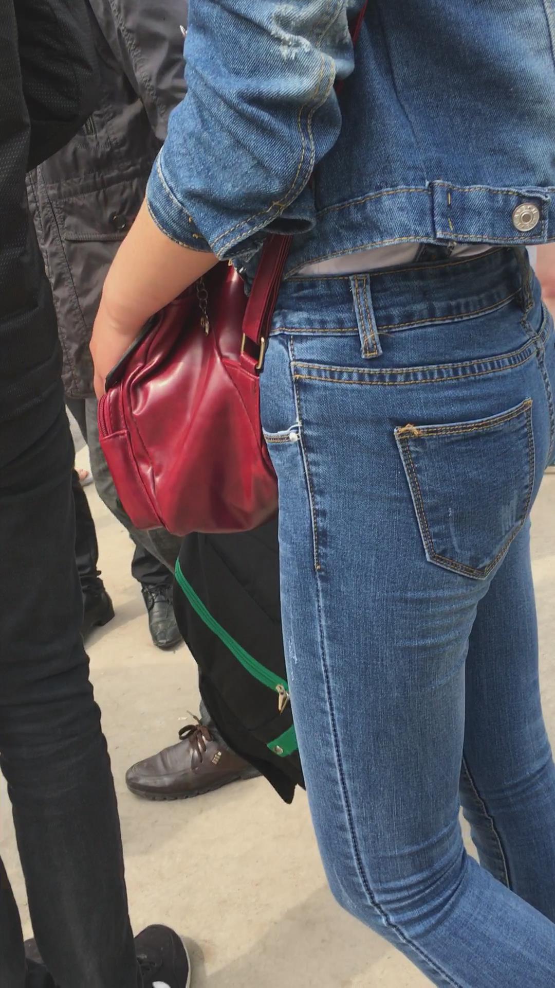街拍紧身牛仔裤牛仔外套妹子 编号5236