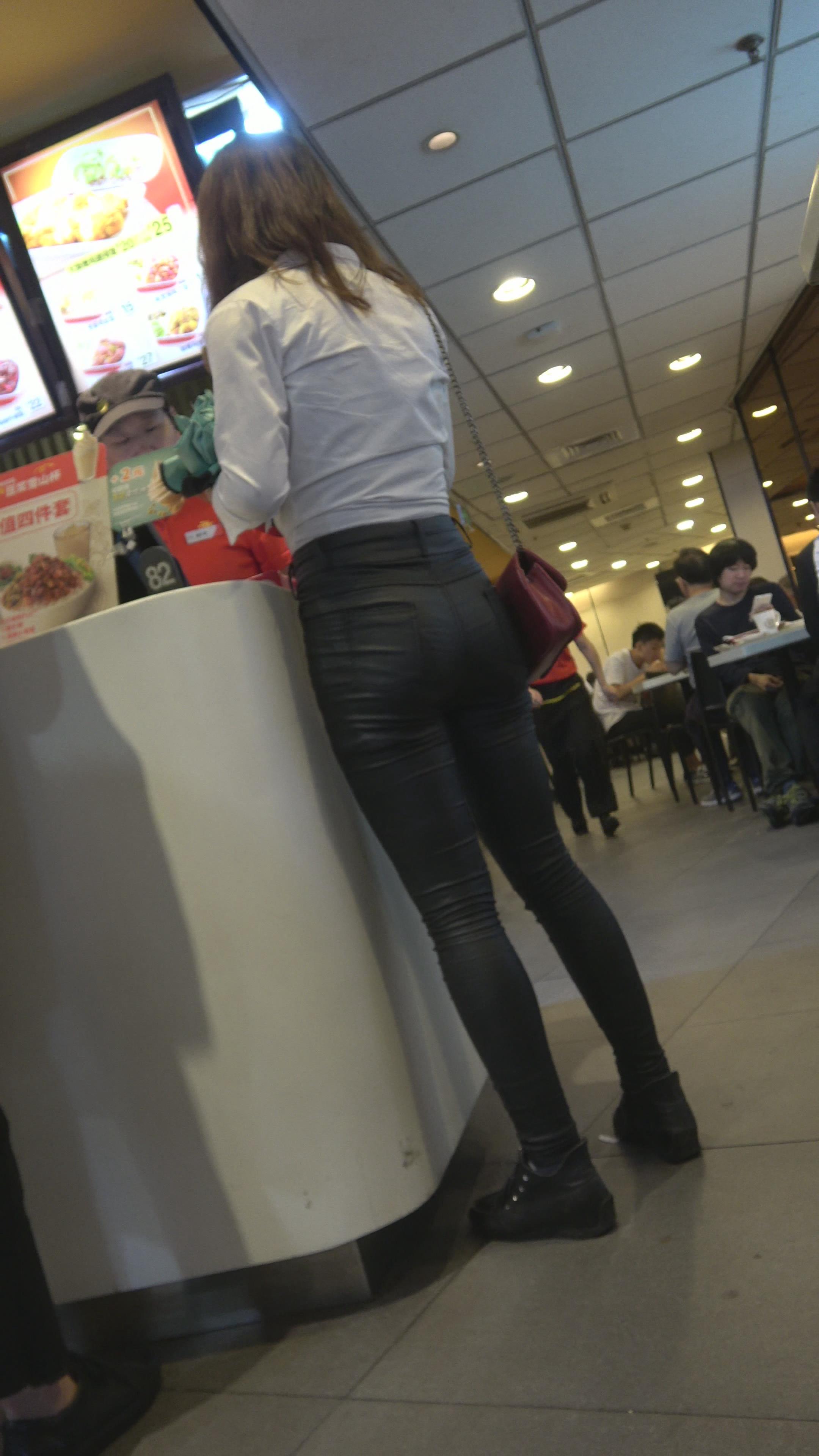 4K 黑色紧身皮裤性感美女 编号5238