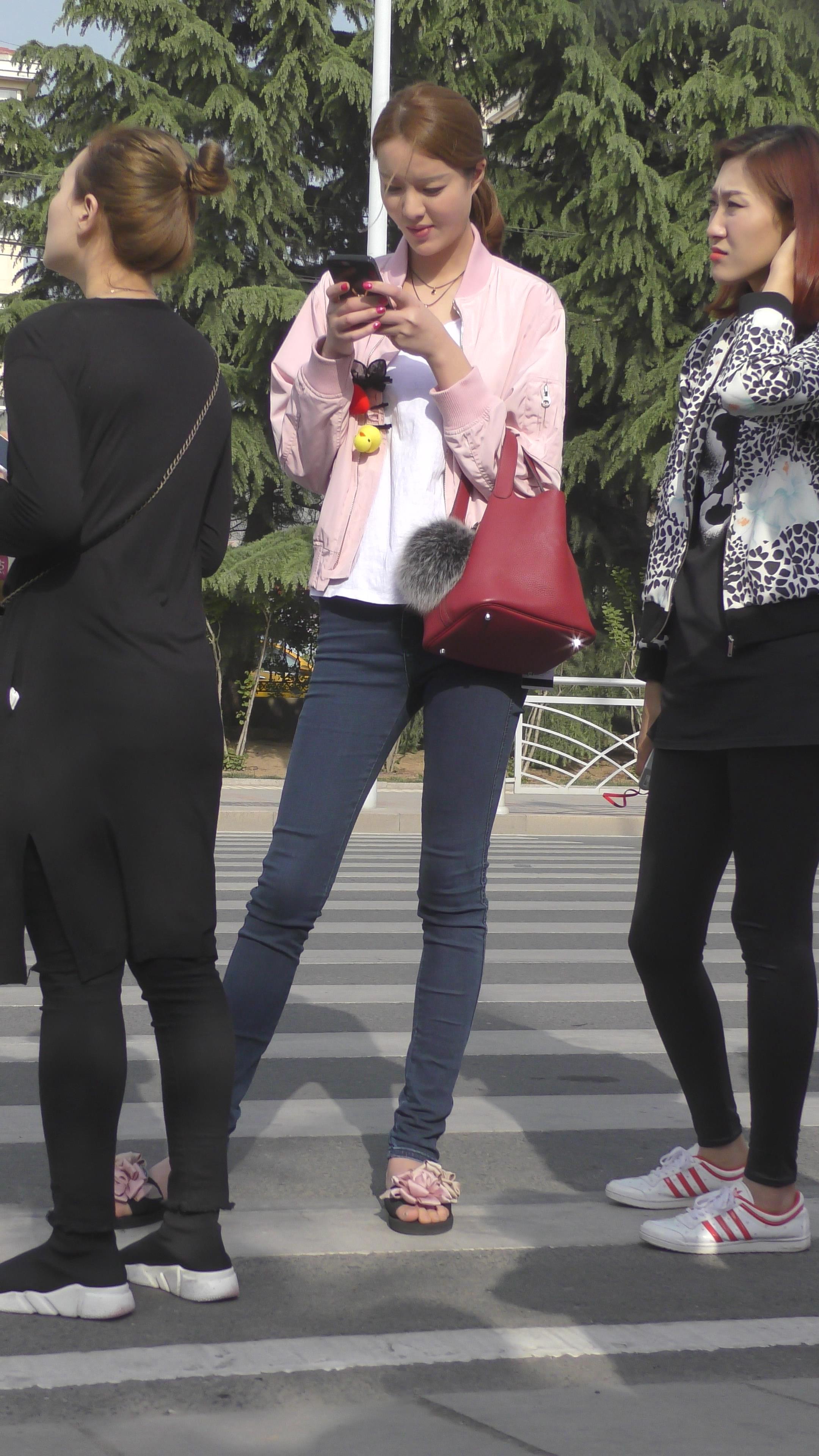 4K 等车的紧身牛仔苗条美女姐姐 编号5240