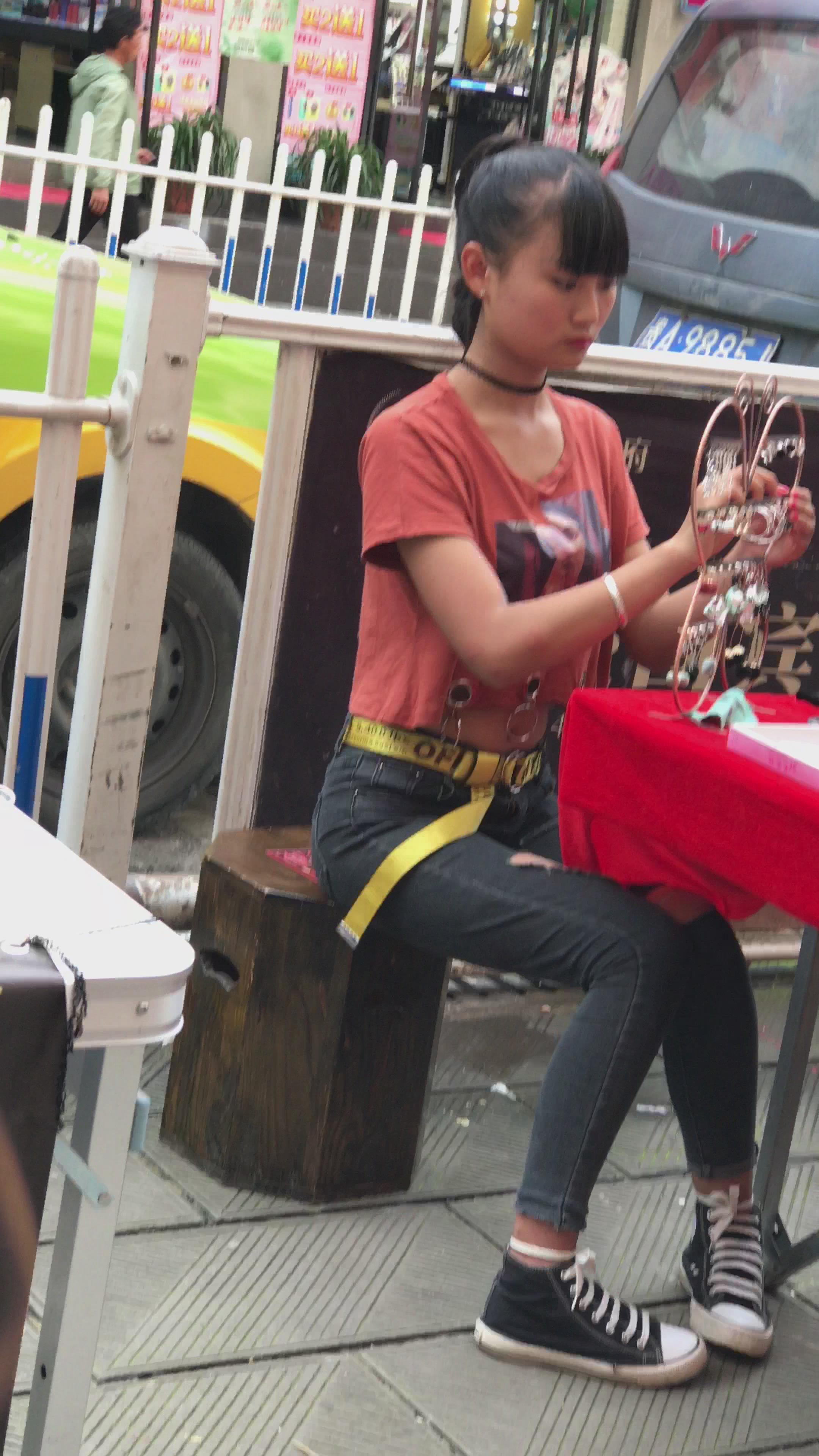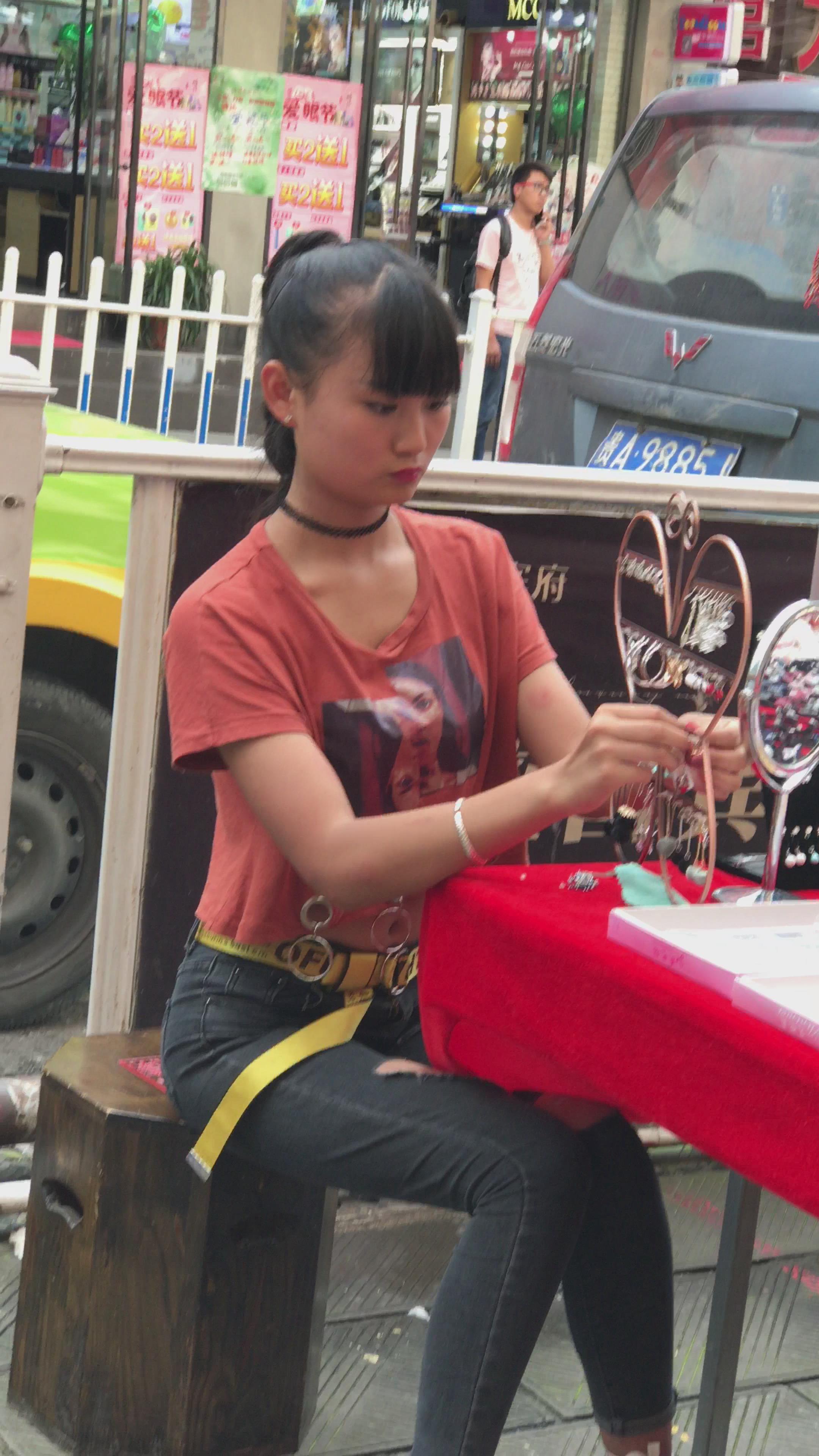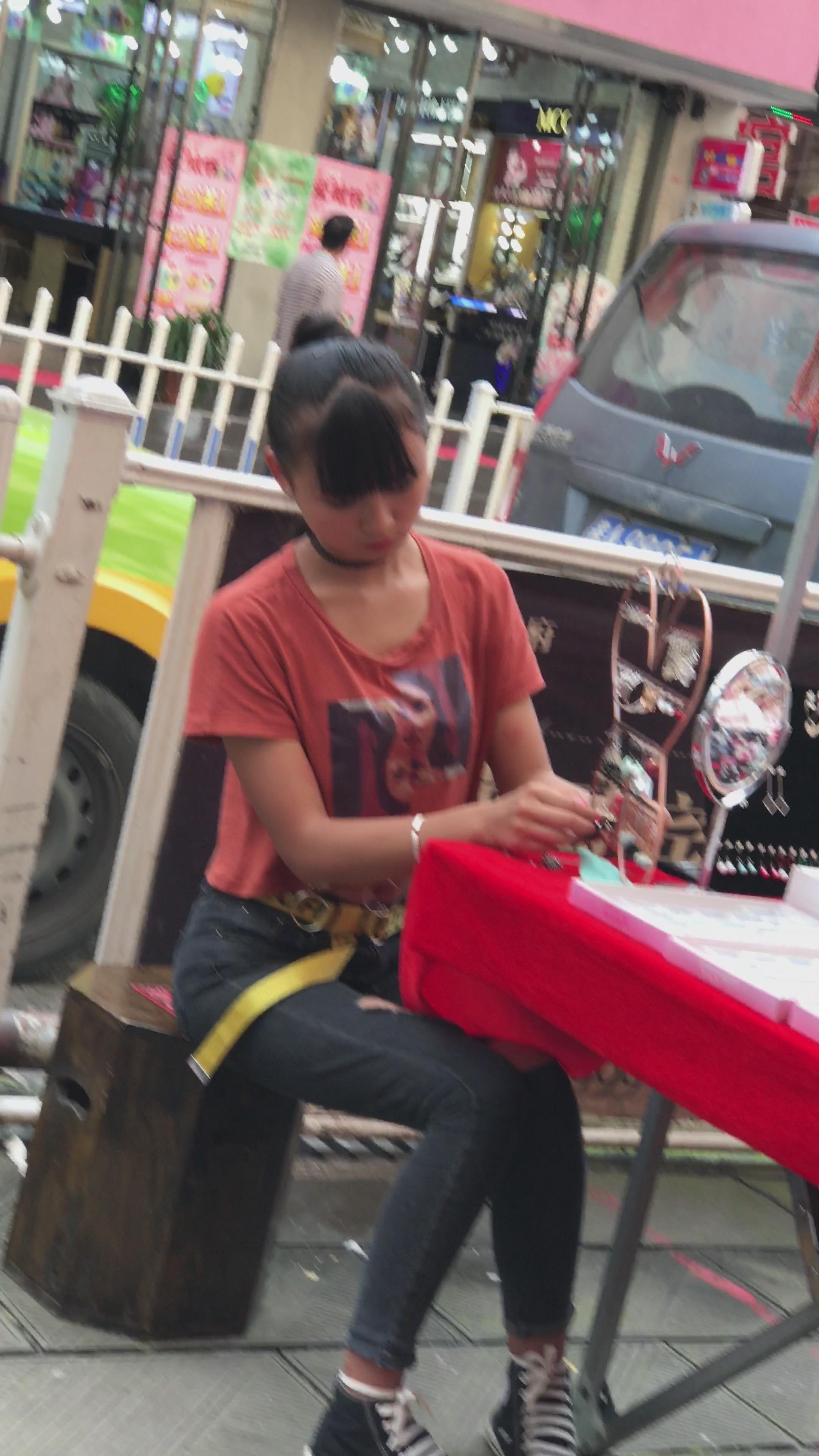 街拍黑色破洞牛仔小姐姐 编号5250