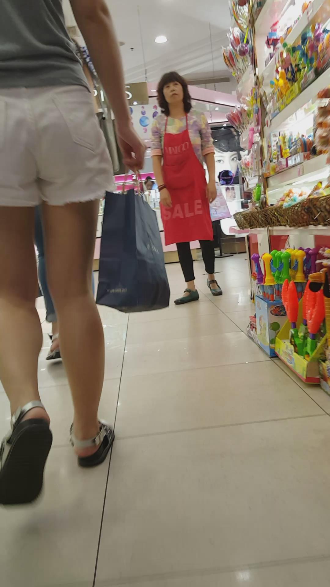 商场买买买的紧身蓝牛丰臀美眉 编号6110