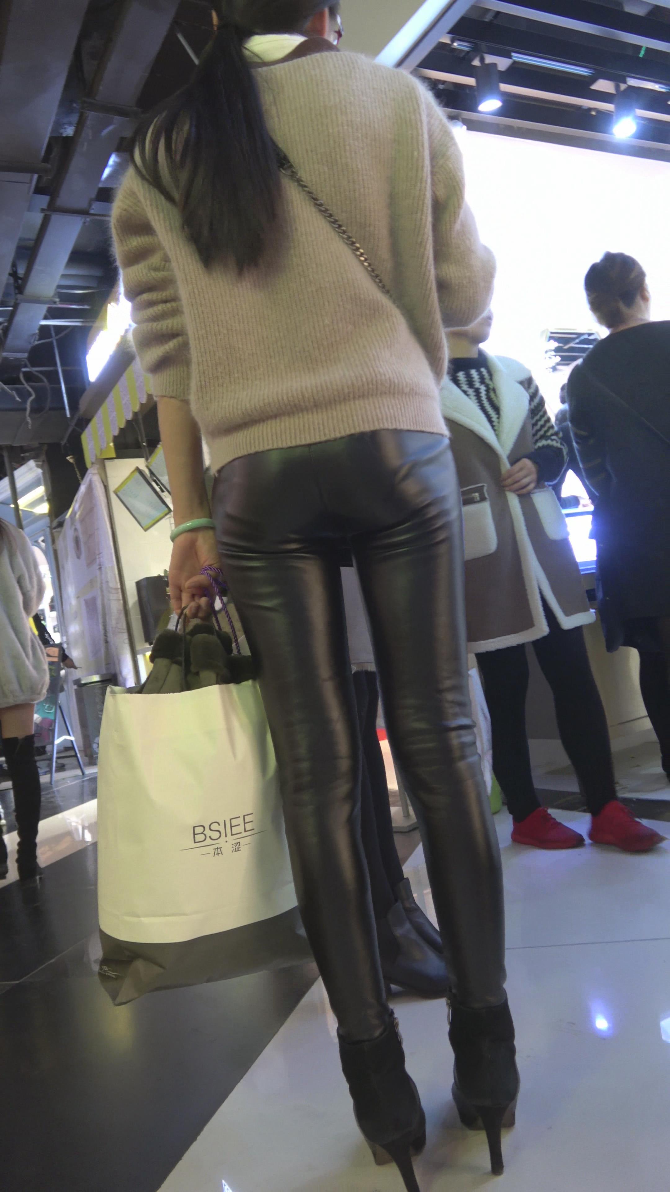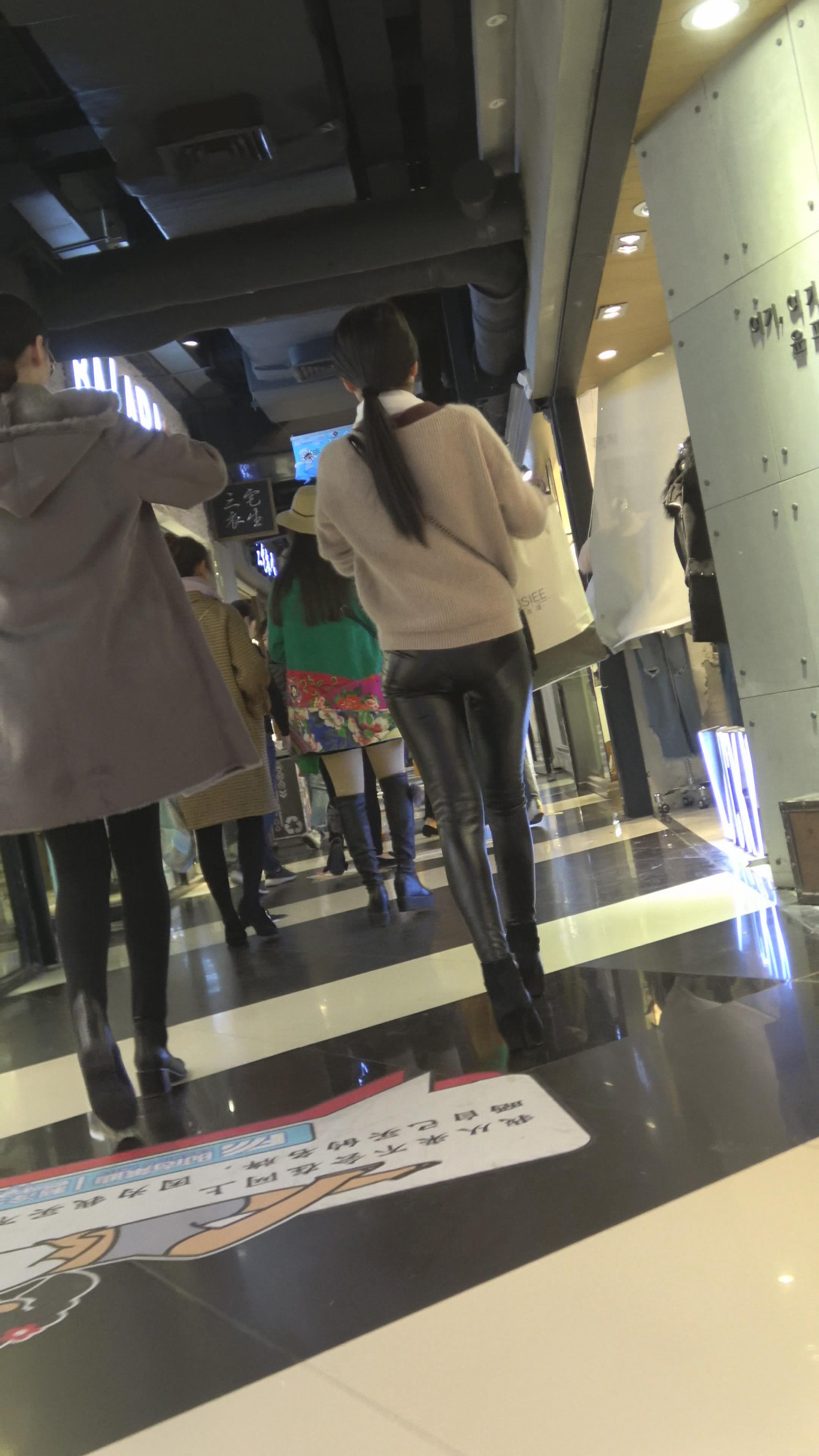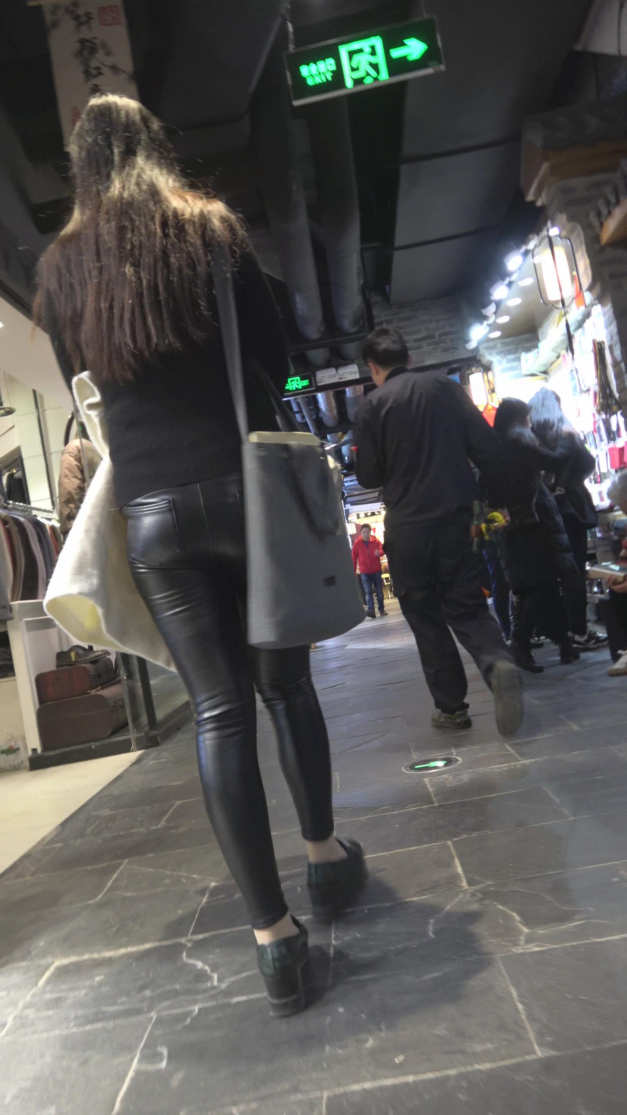4K - 逛商场的紧身皮裤性感美女 编号5269