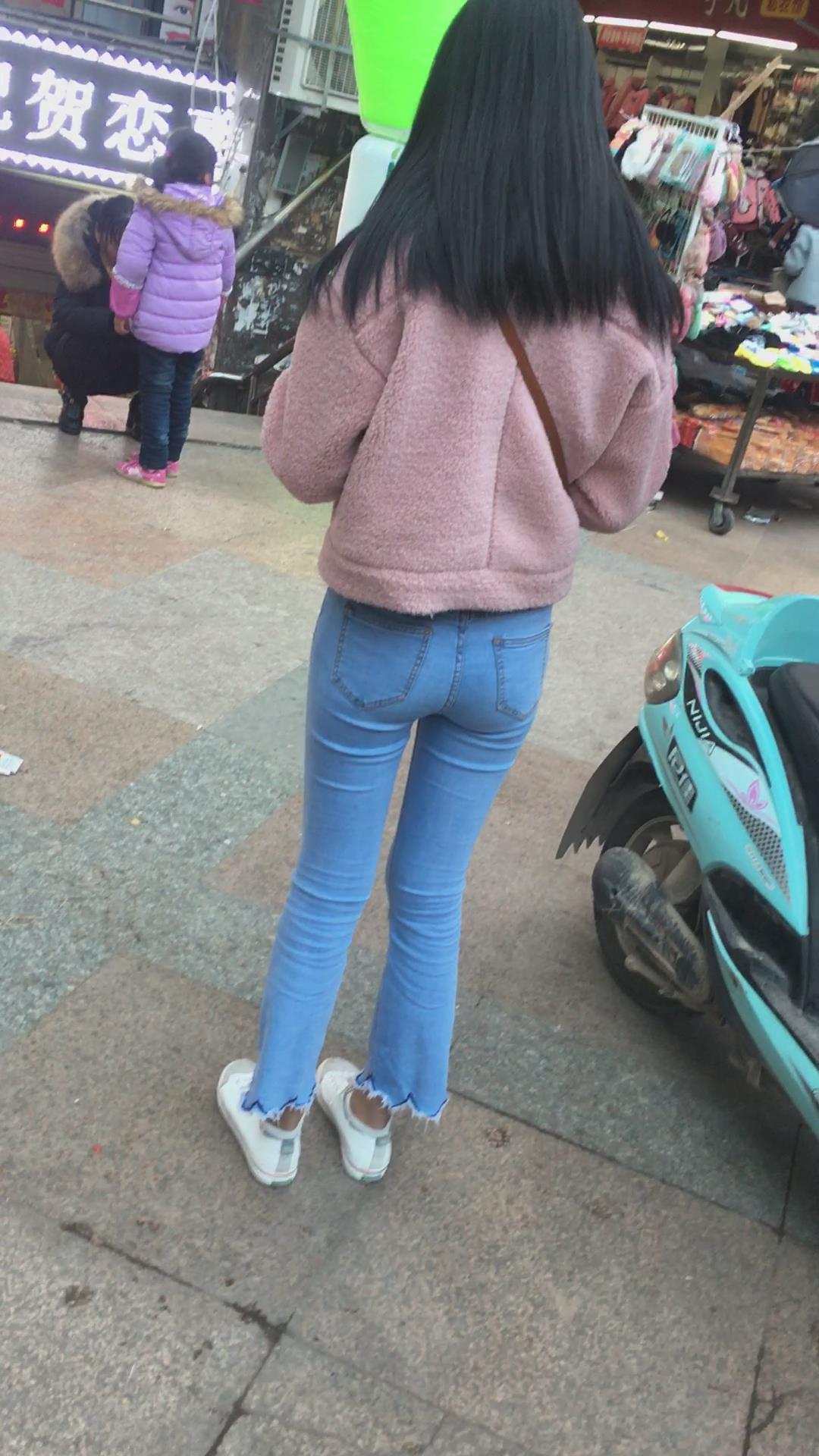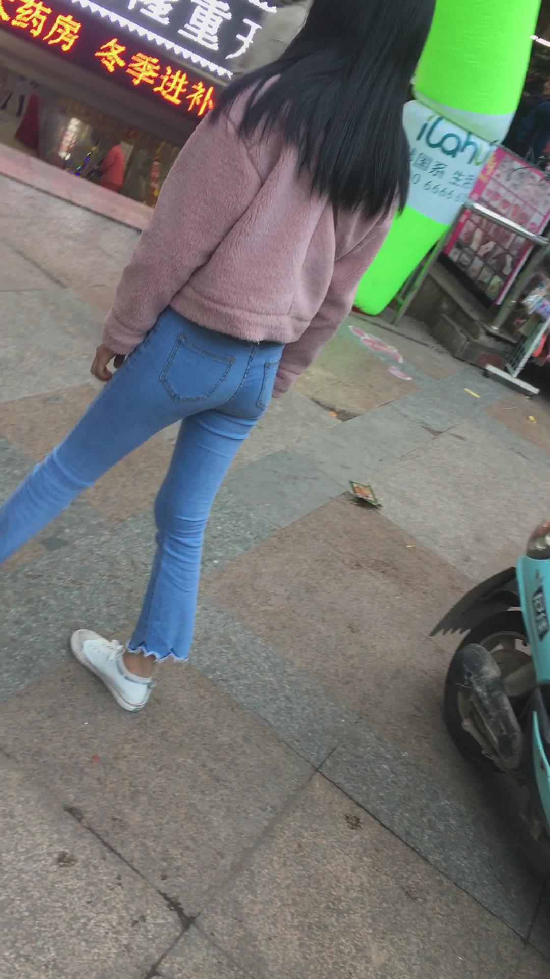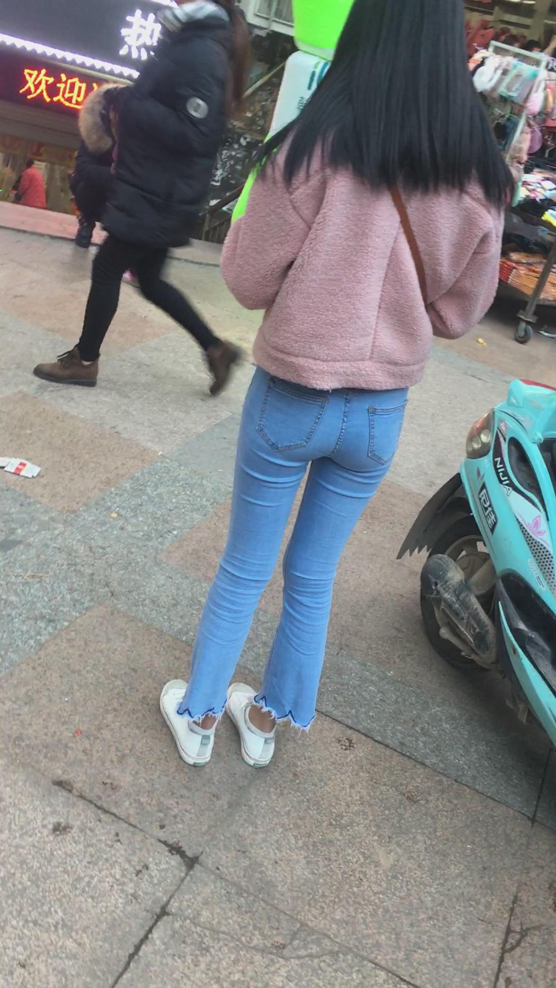超紧身牛仔裤圆臀街拍美眉 编号5287