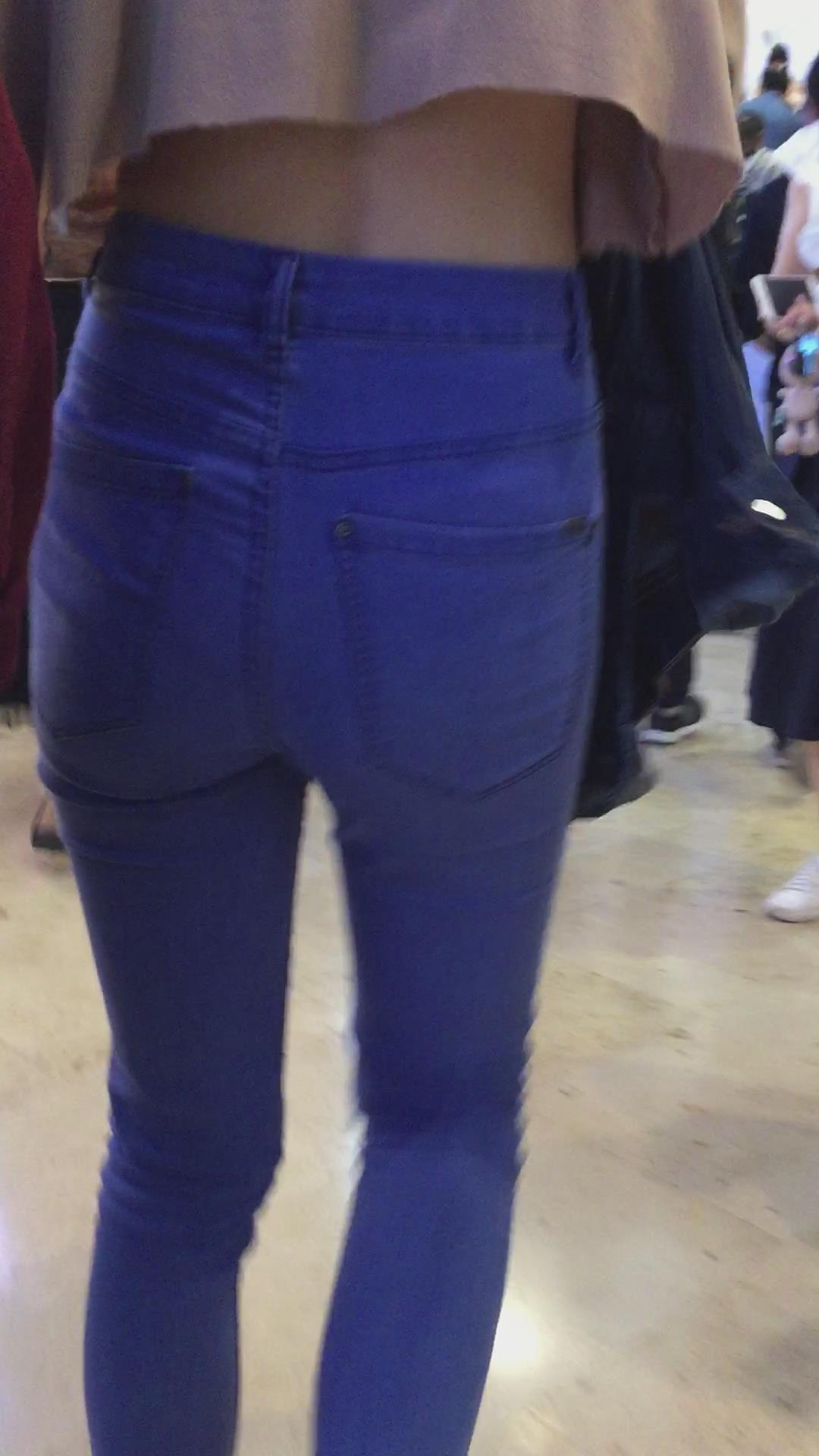 跟拍紧身蓝牛美眉、这小蛮腰真细 编号5298