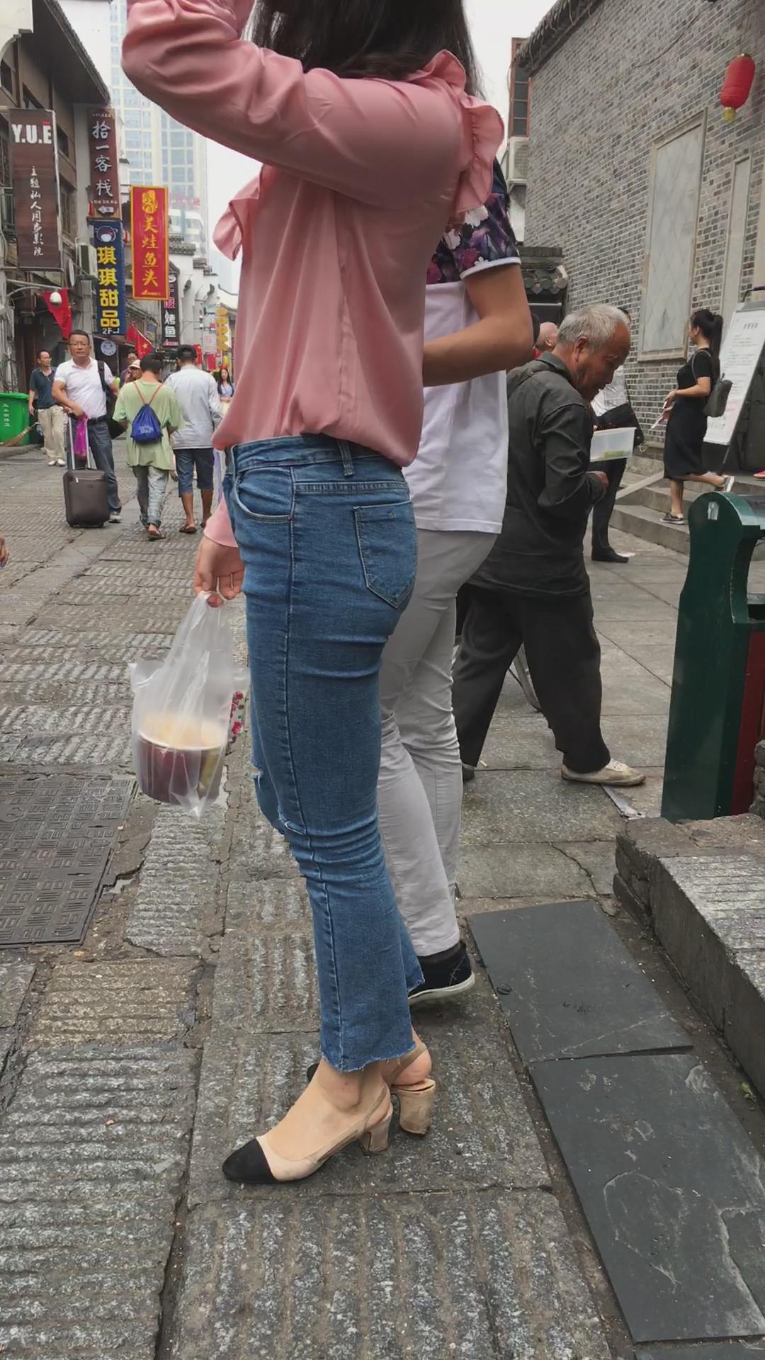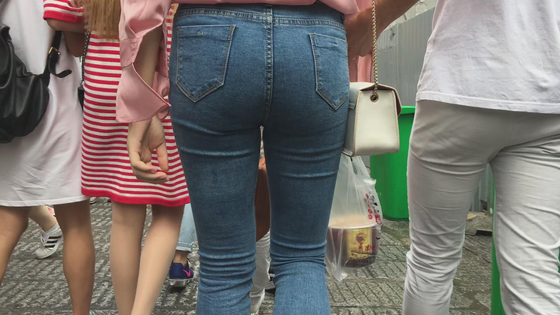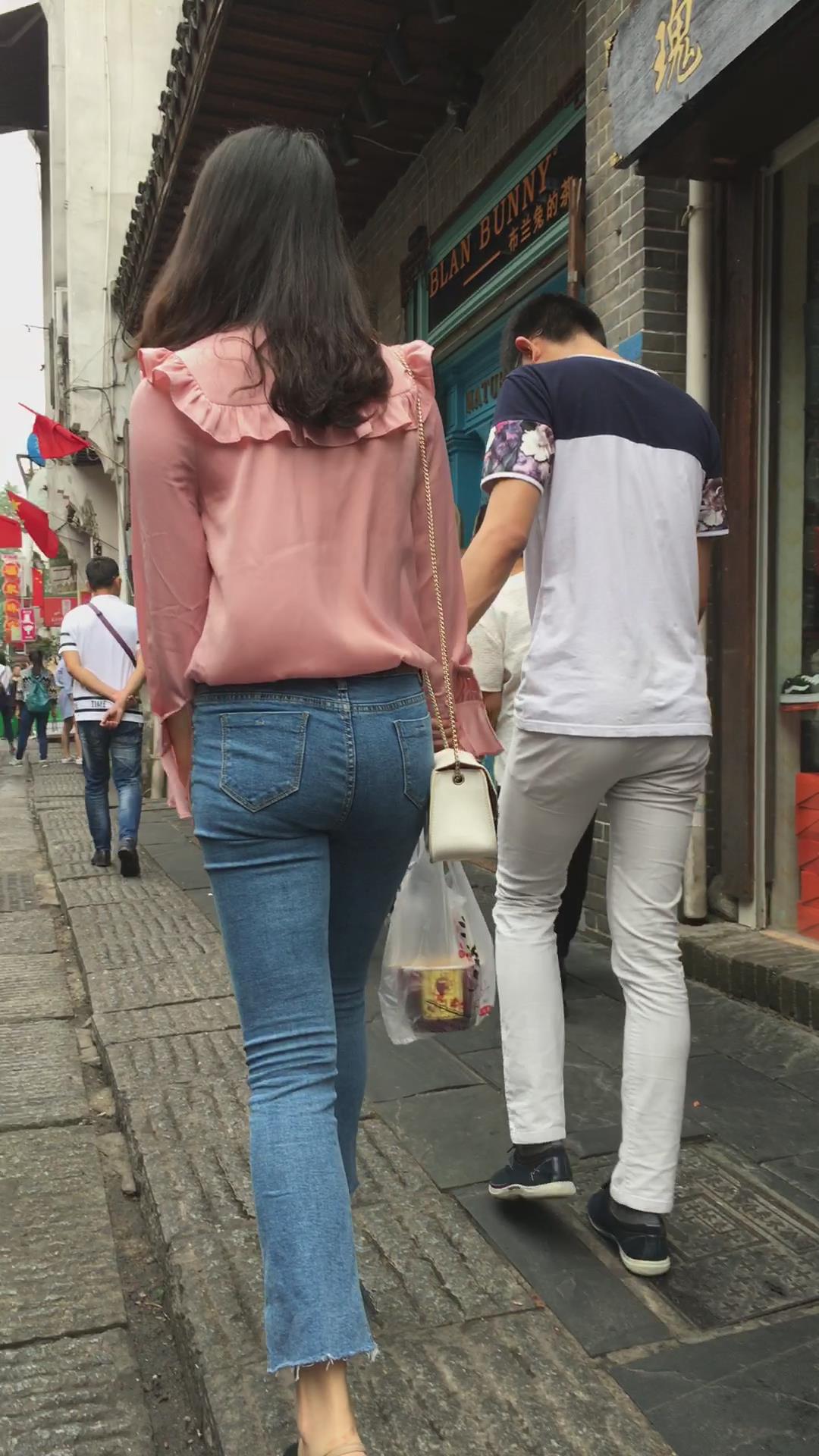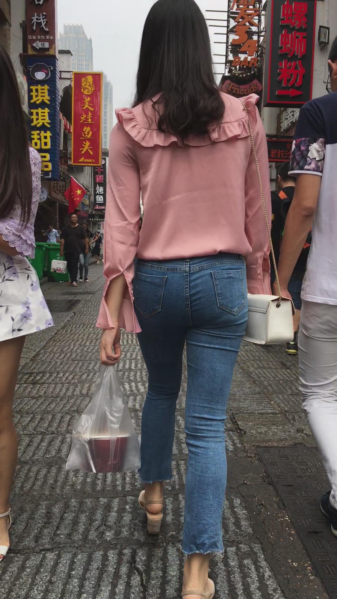 跟拍超棒身材紧身牛仔裤粉色衬衫美女姐姐 编号5300