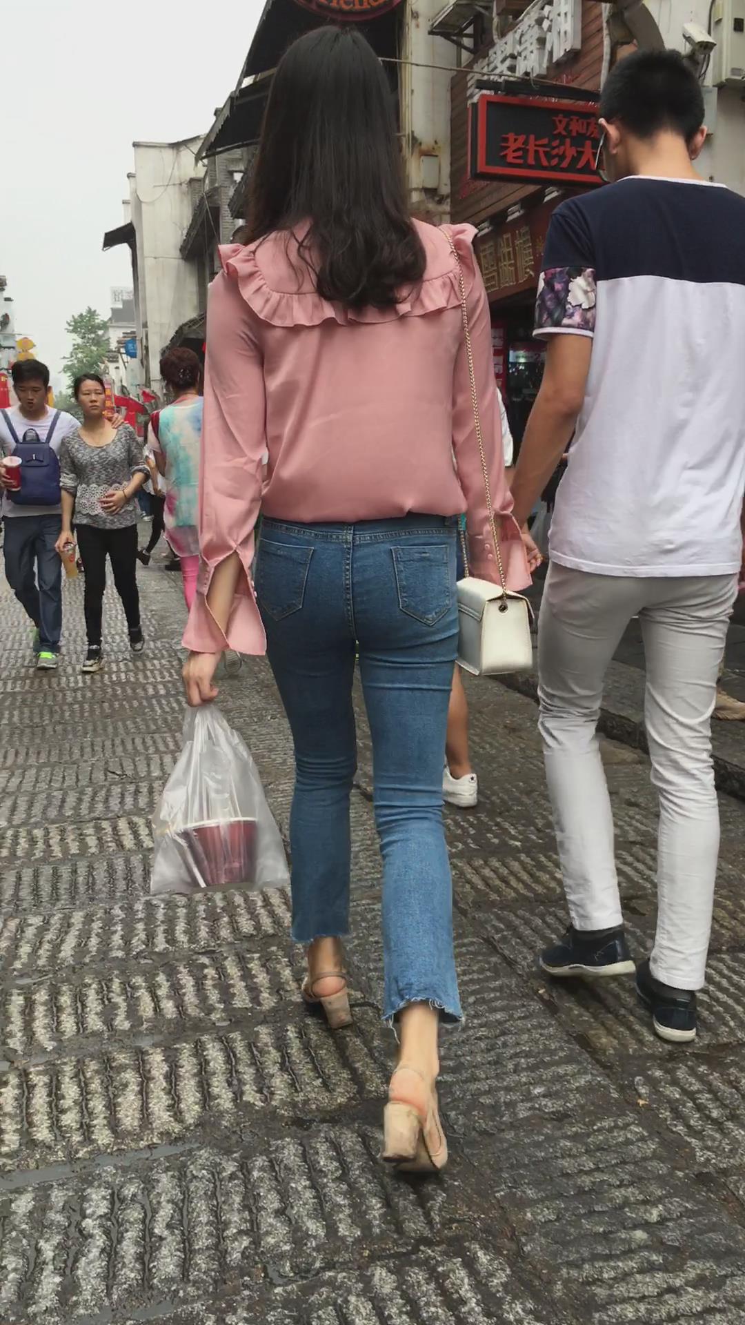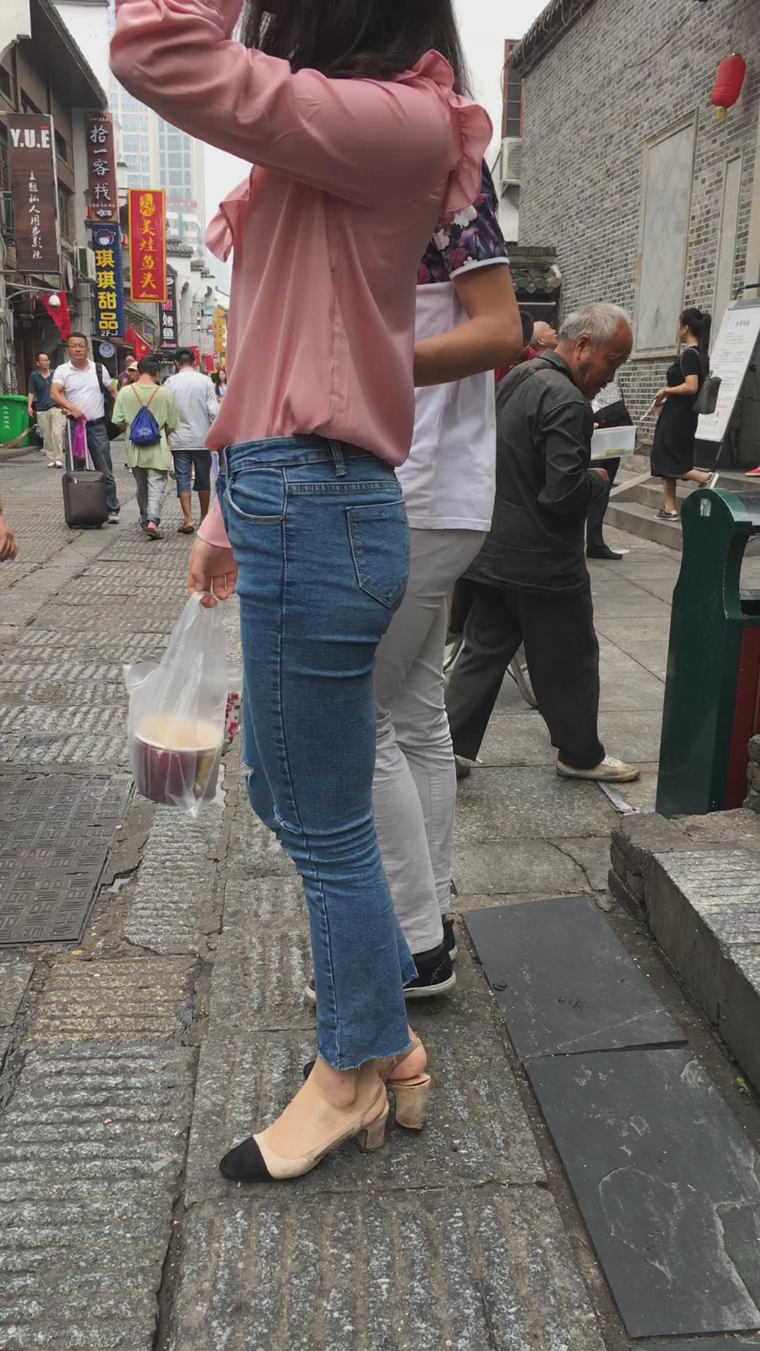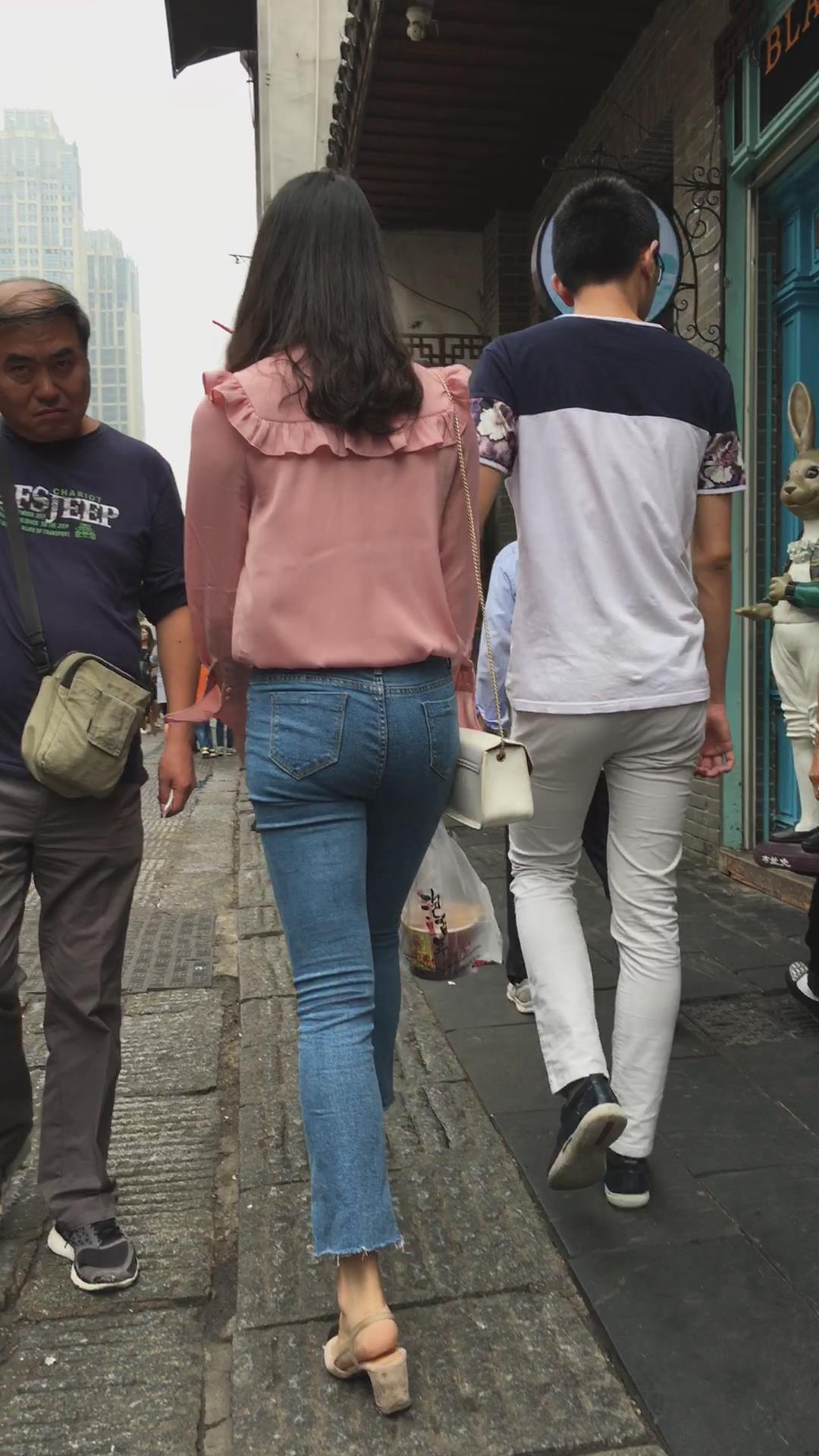 极品身材粉色衬衫紧身蓝牛街拍小姐姐 编号5327