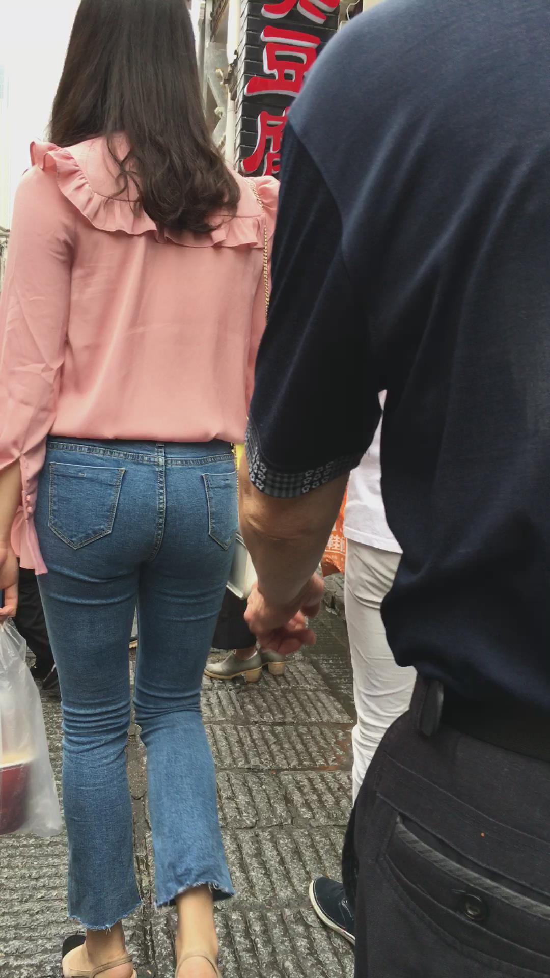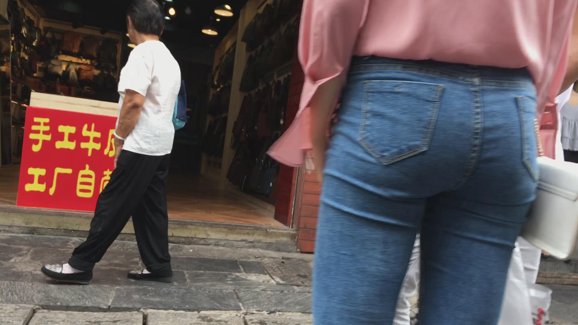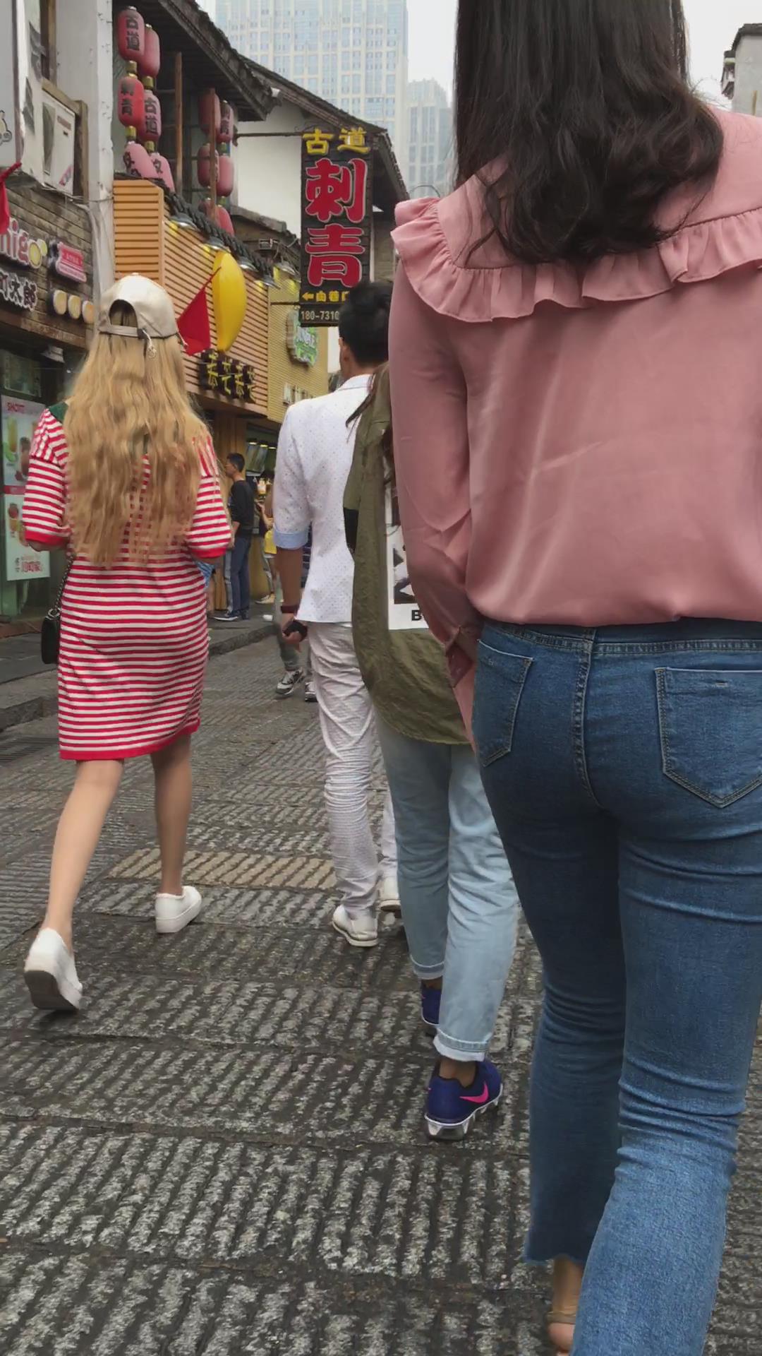 极品身材粉色衬衫紧身蓝牛街拍小姐姐 编号5327