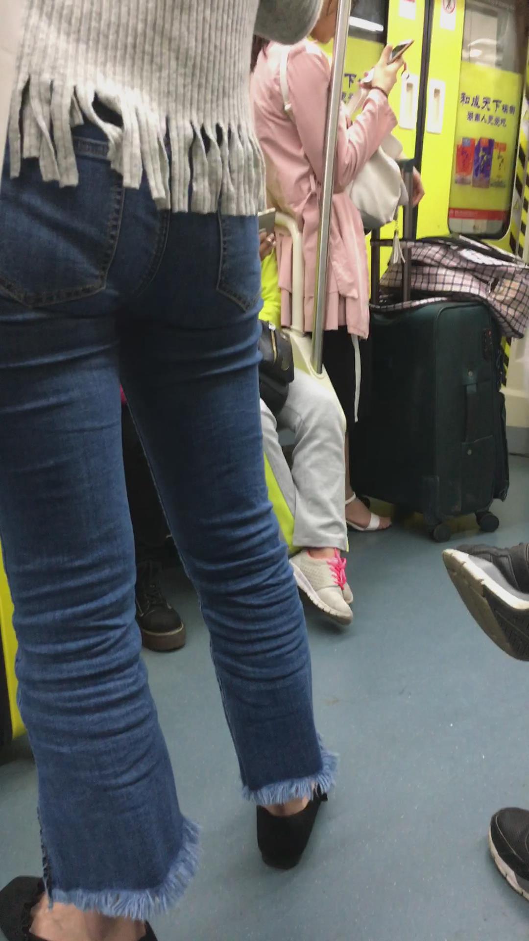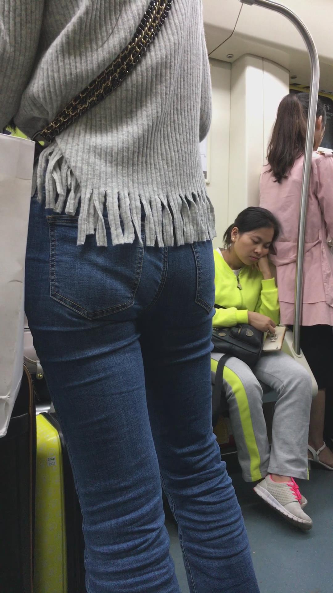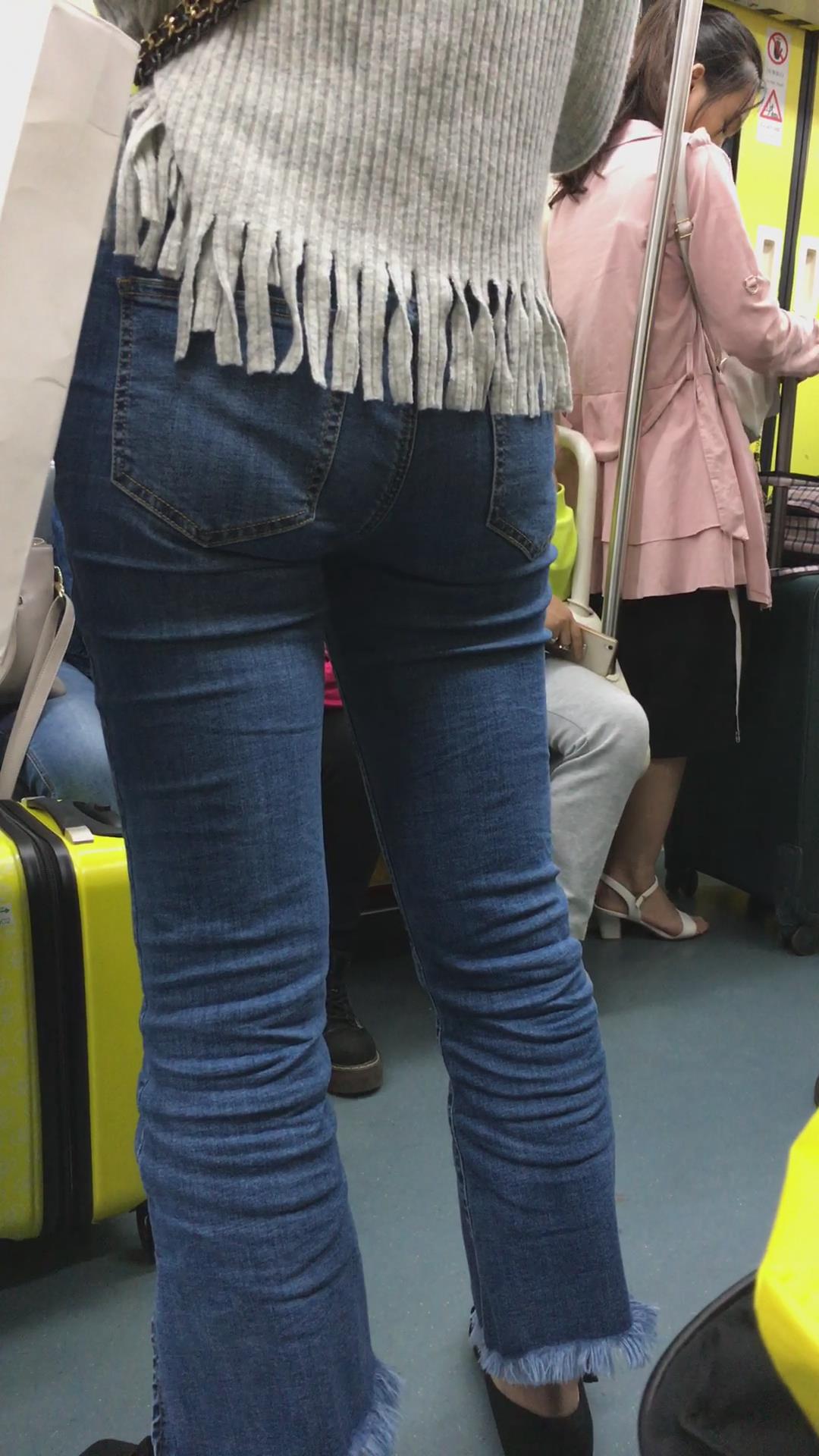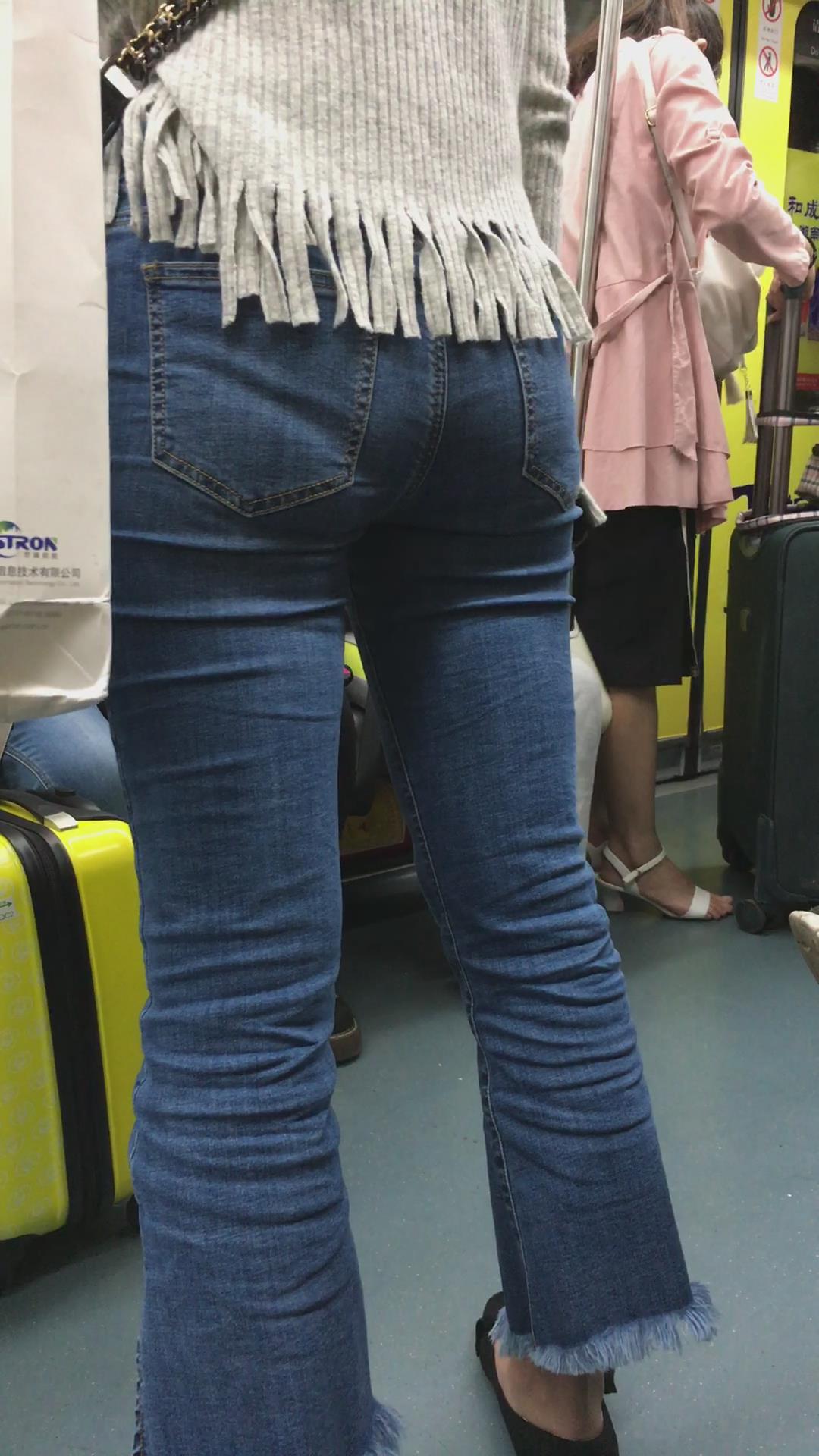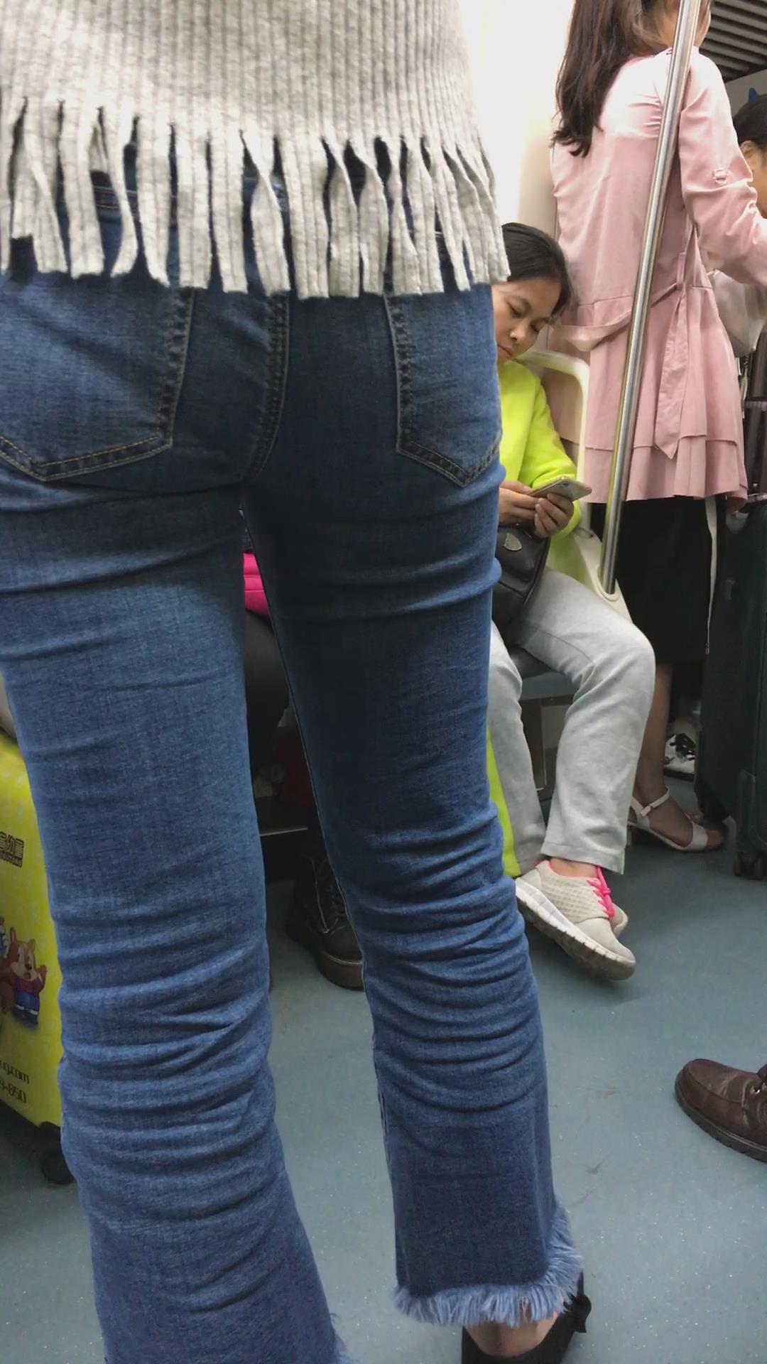 地铁上拍摄紧身蓝牛美女 编号5329