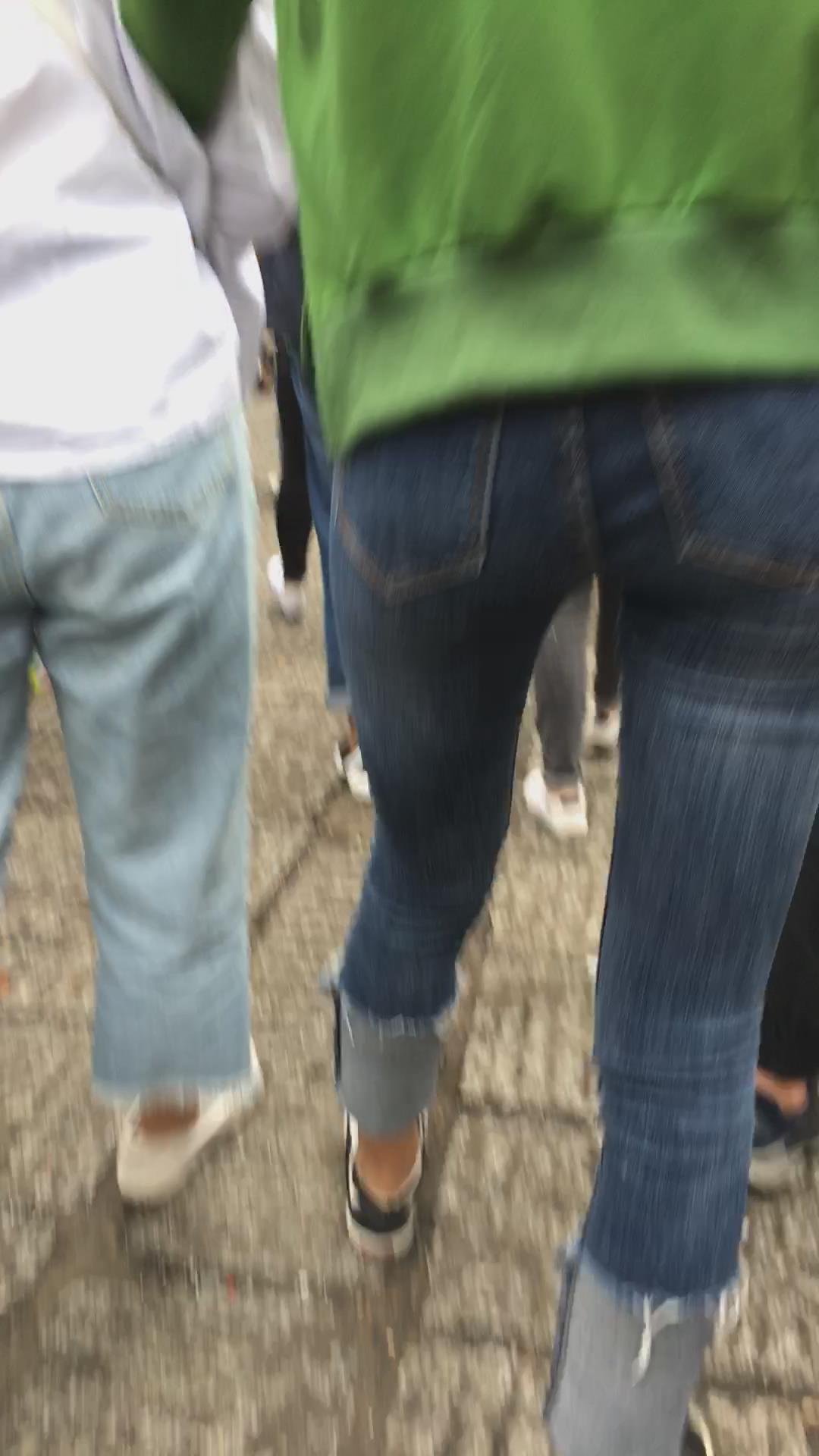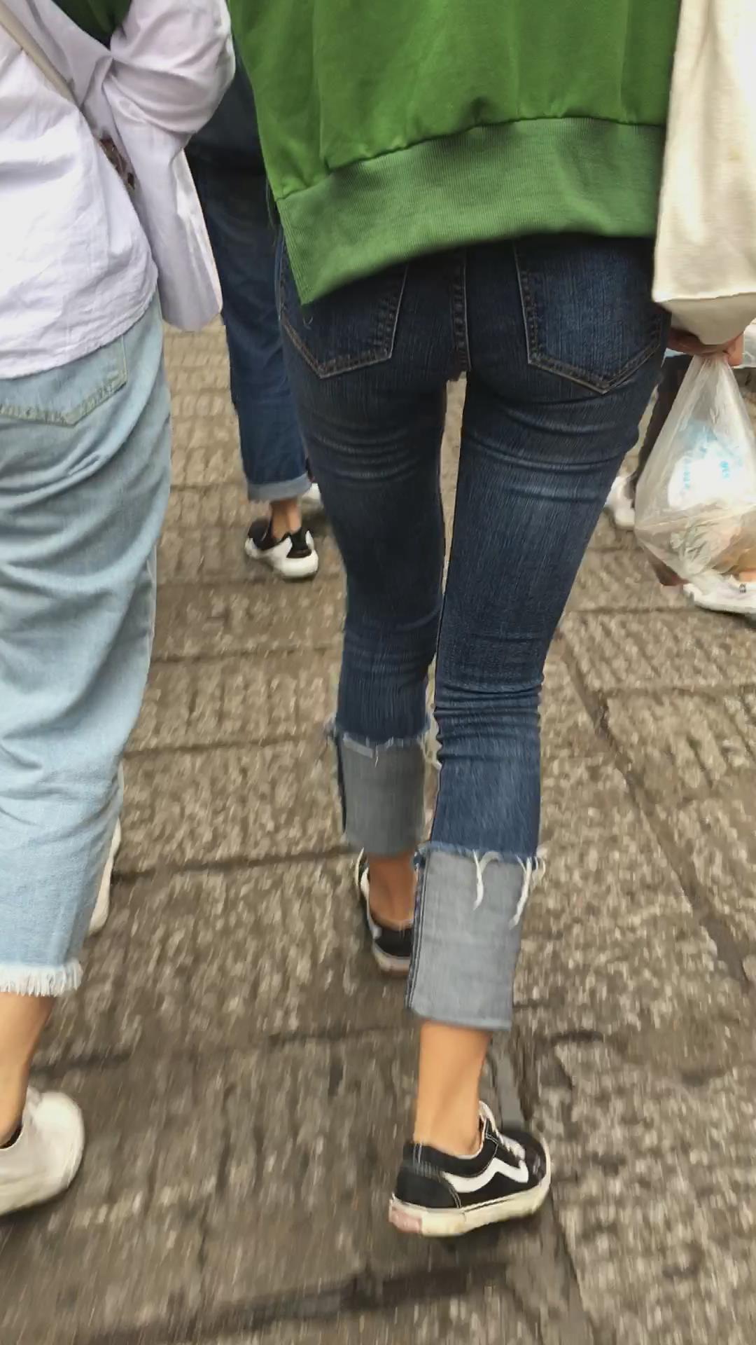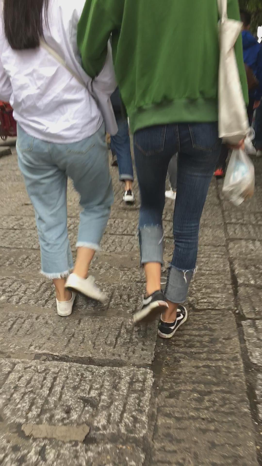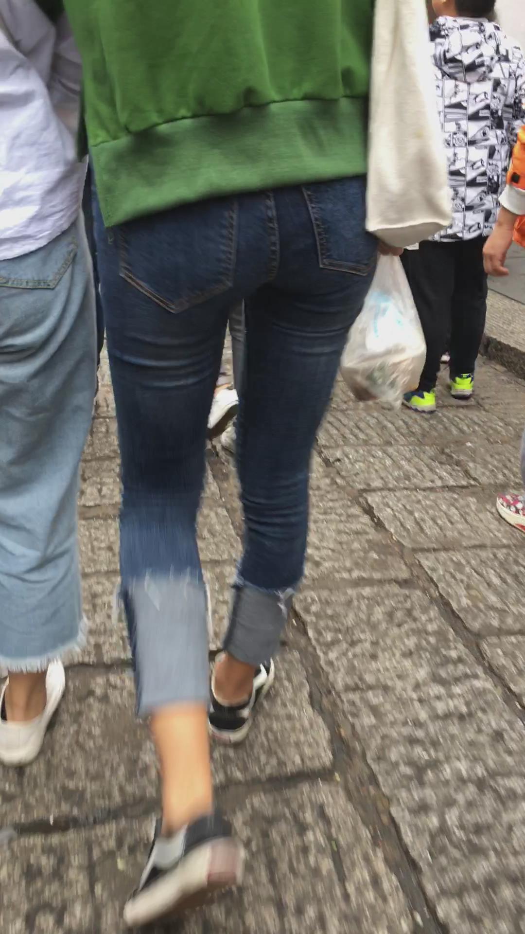 蓝色牛仔裤街拍小妹 编号5336