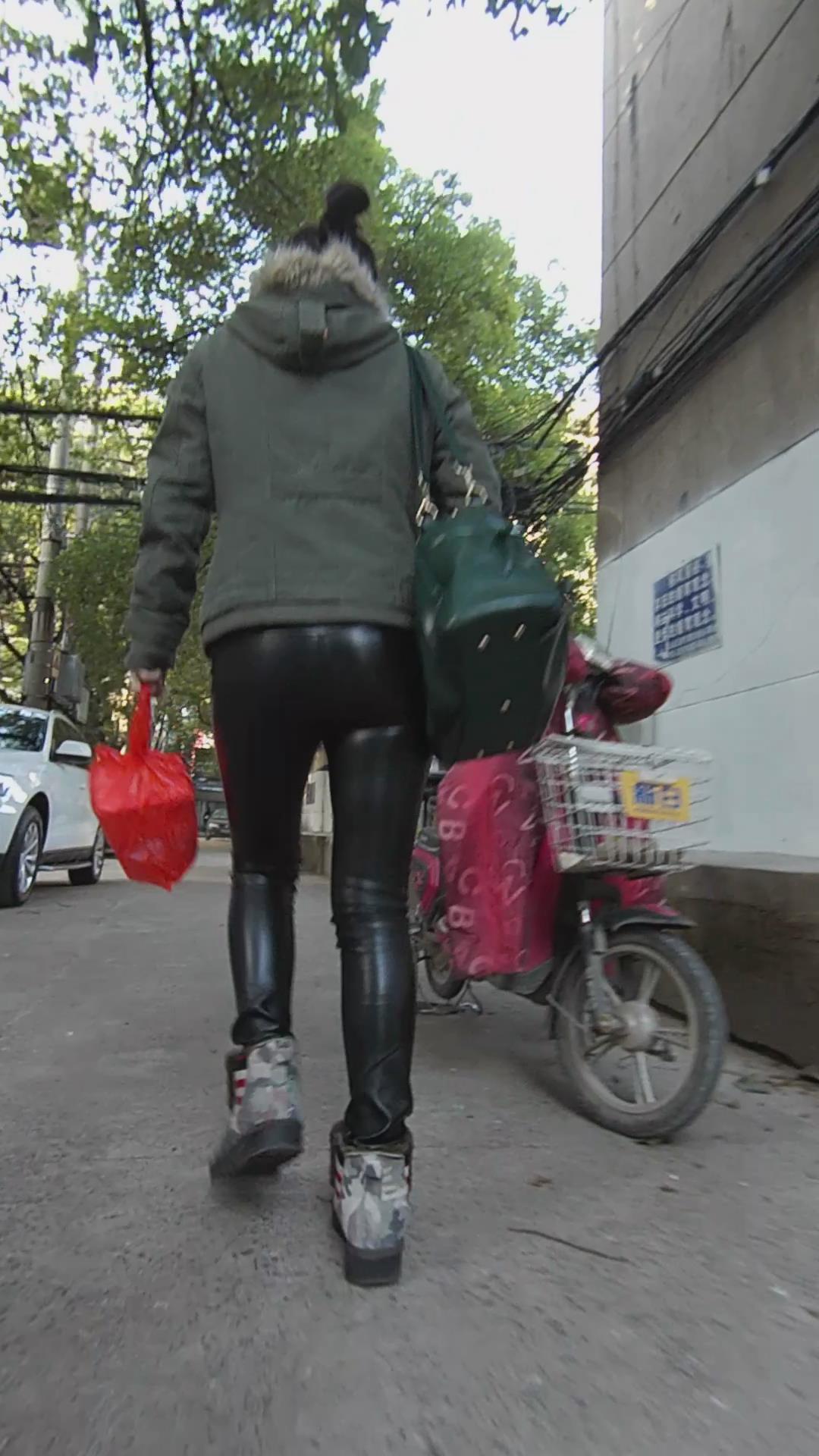 街拍黑色紧身皮裤美眉 编号5342