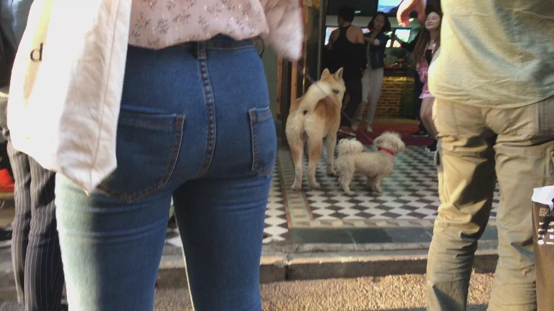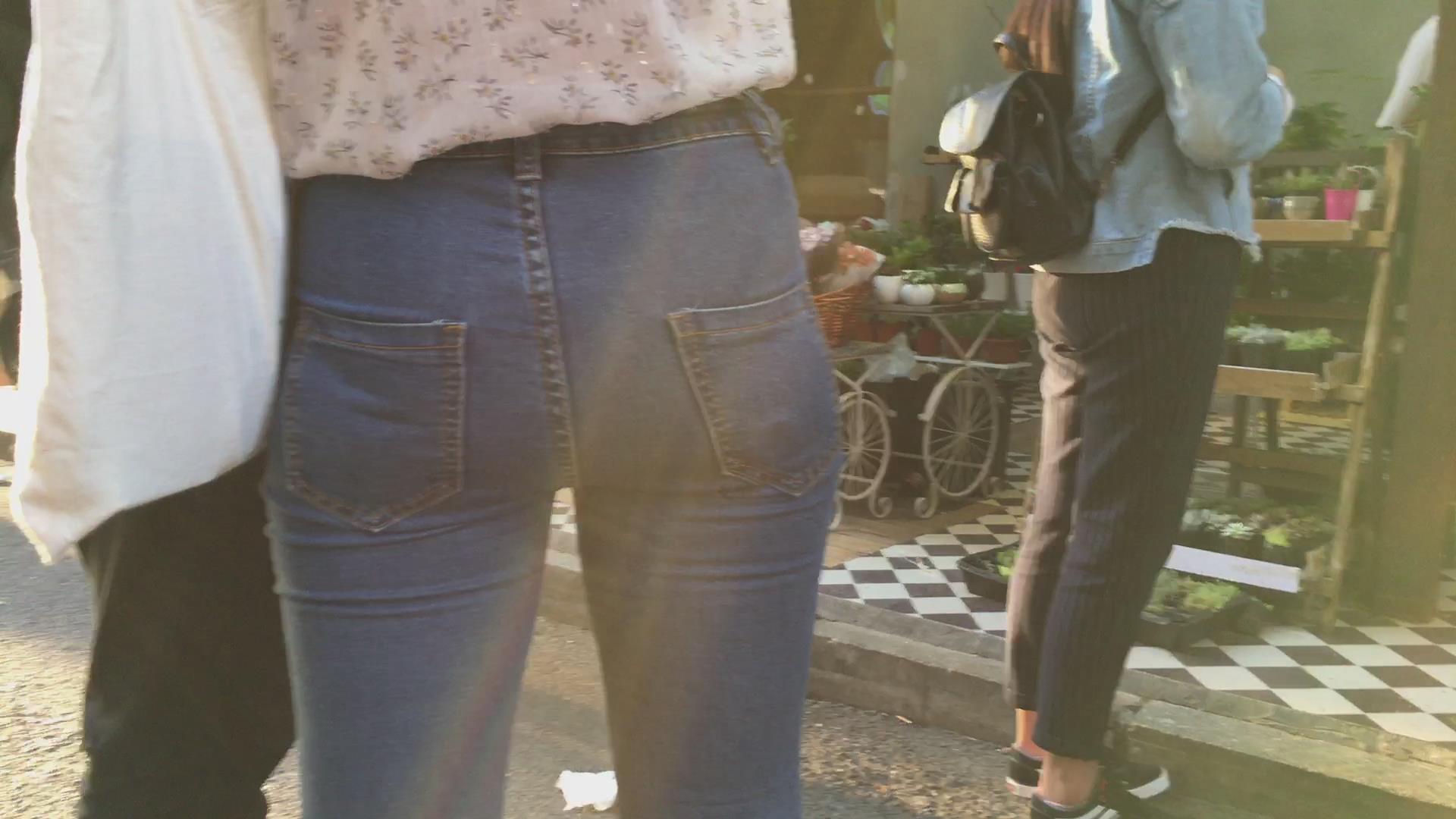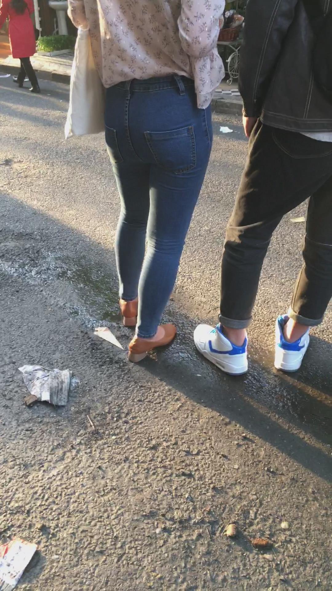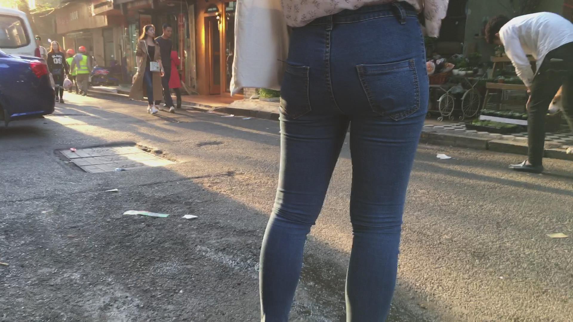 超级紧绷的蓝色牛仔裤美臀美女 编号5360