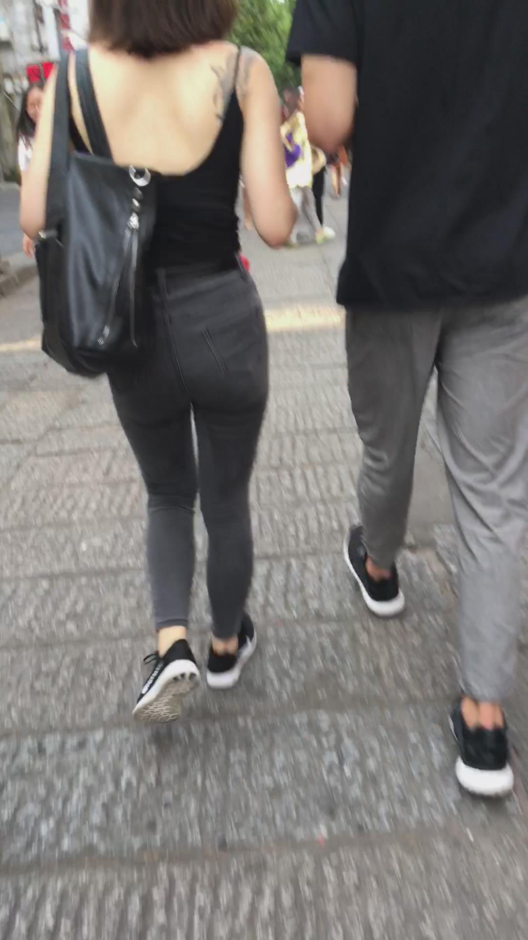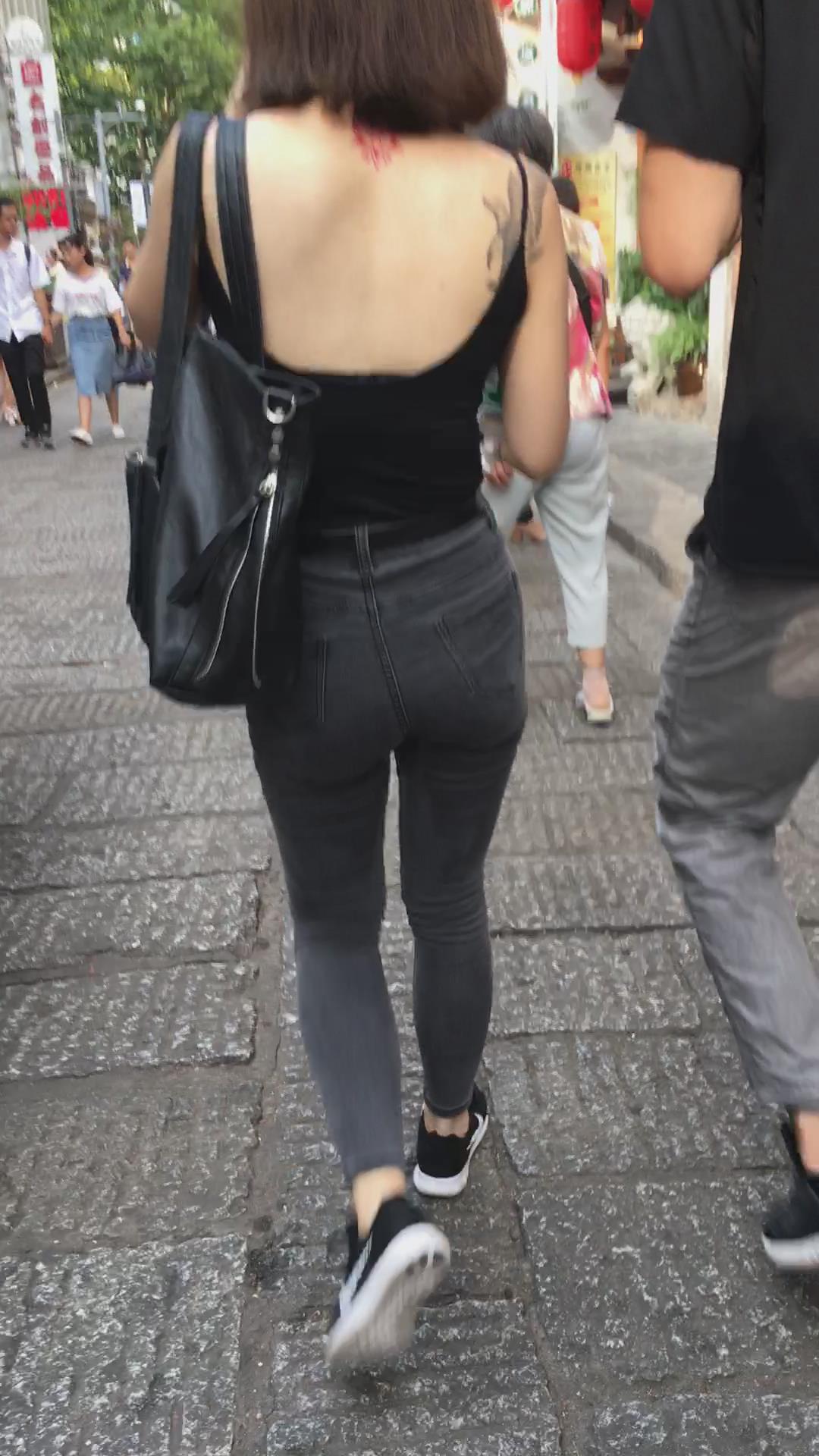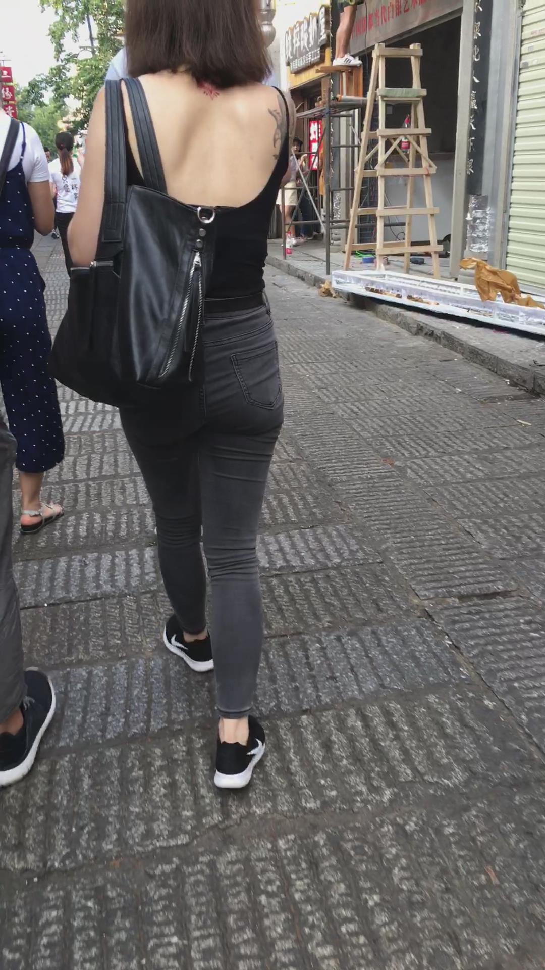 街拍性感美背紧身牛仔裤纹身美女 编号5368