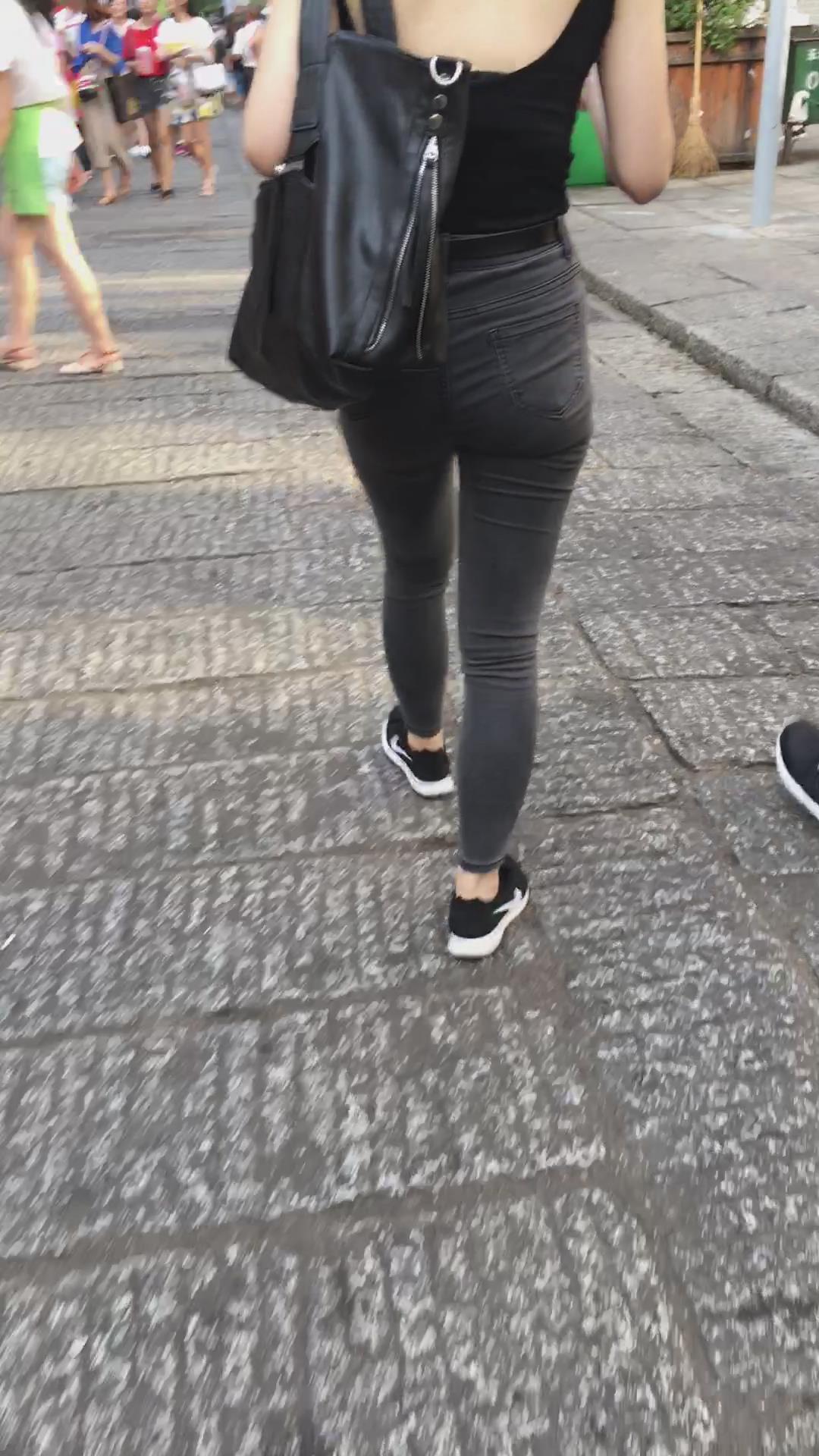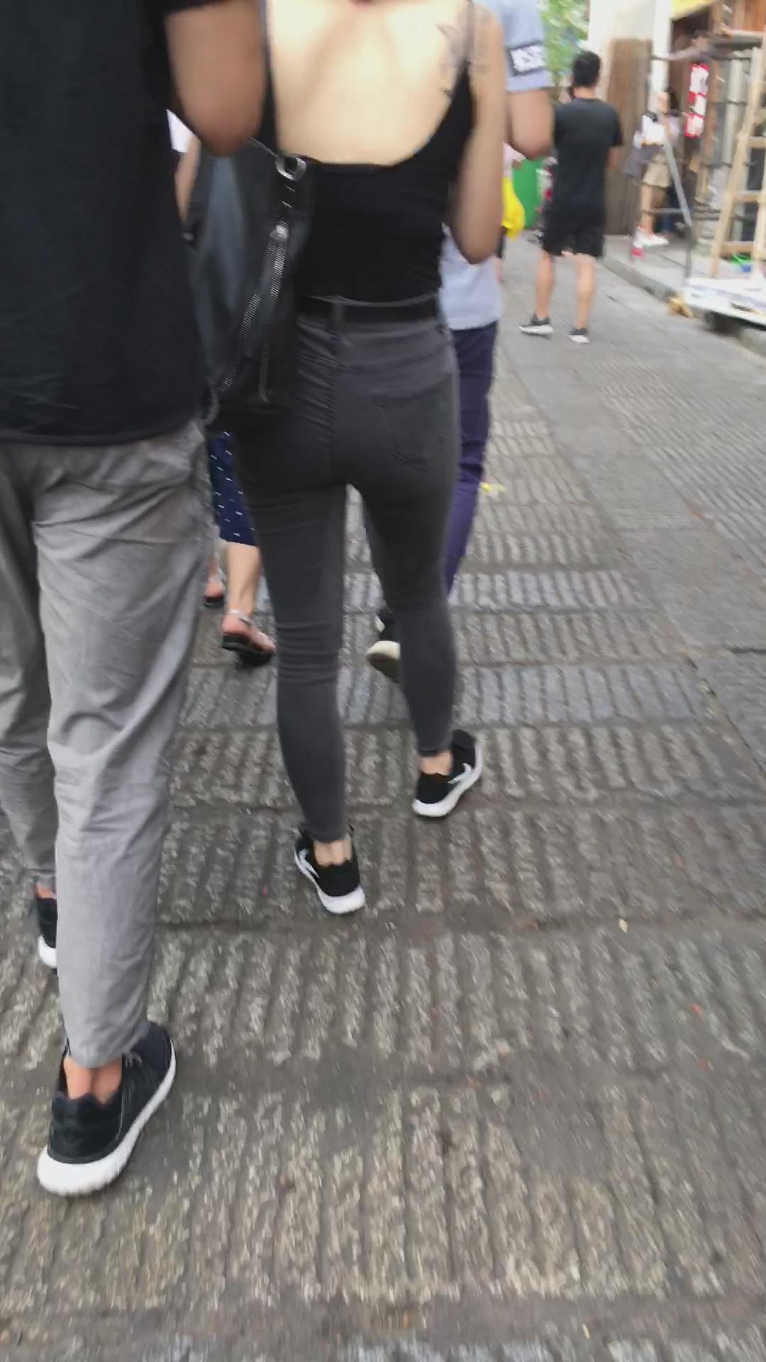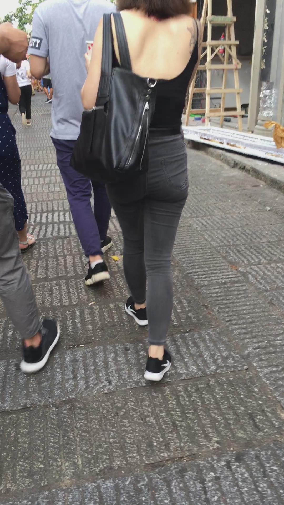 街拍性感美背紧身牛仔裤纹身美女 编号5368