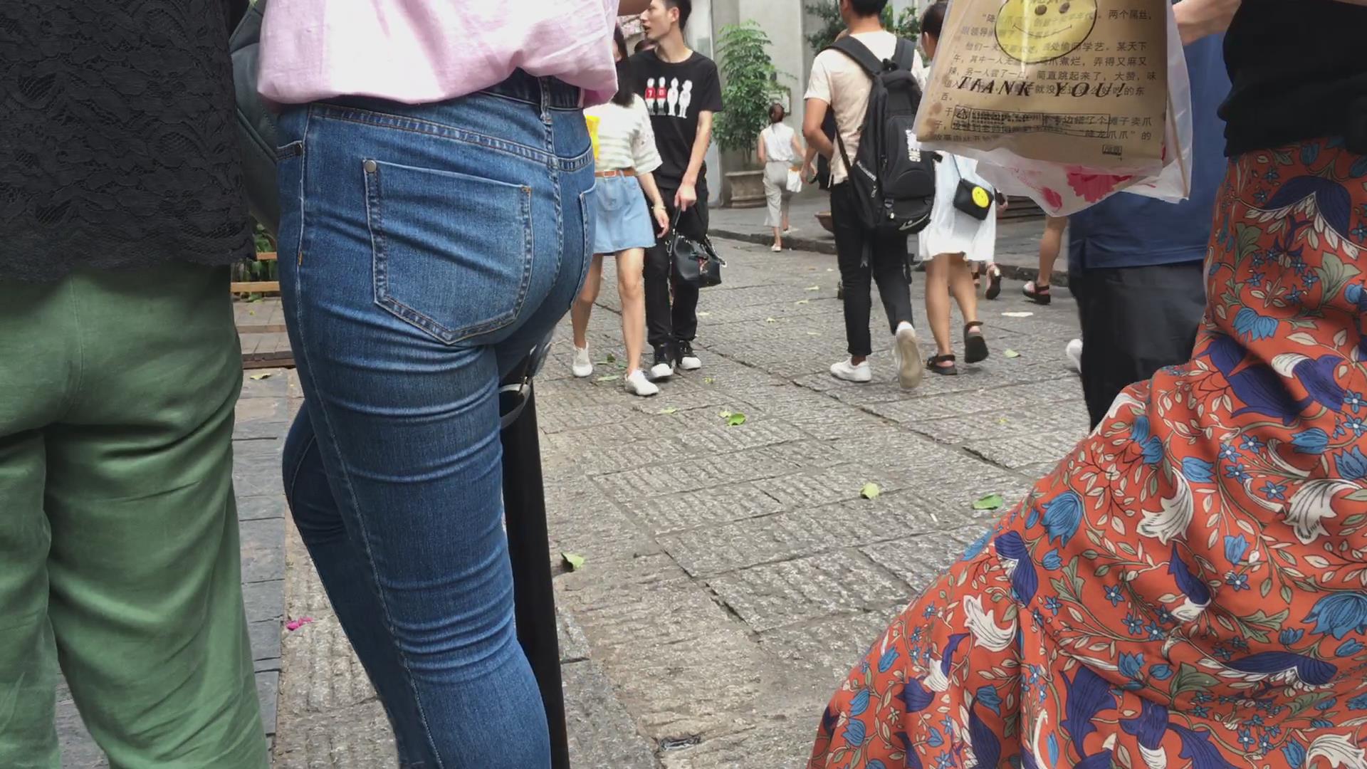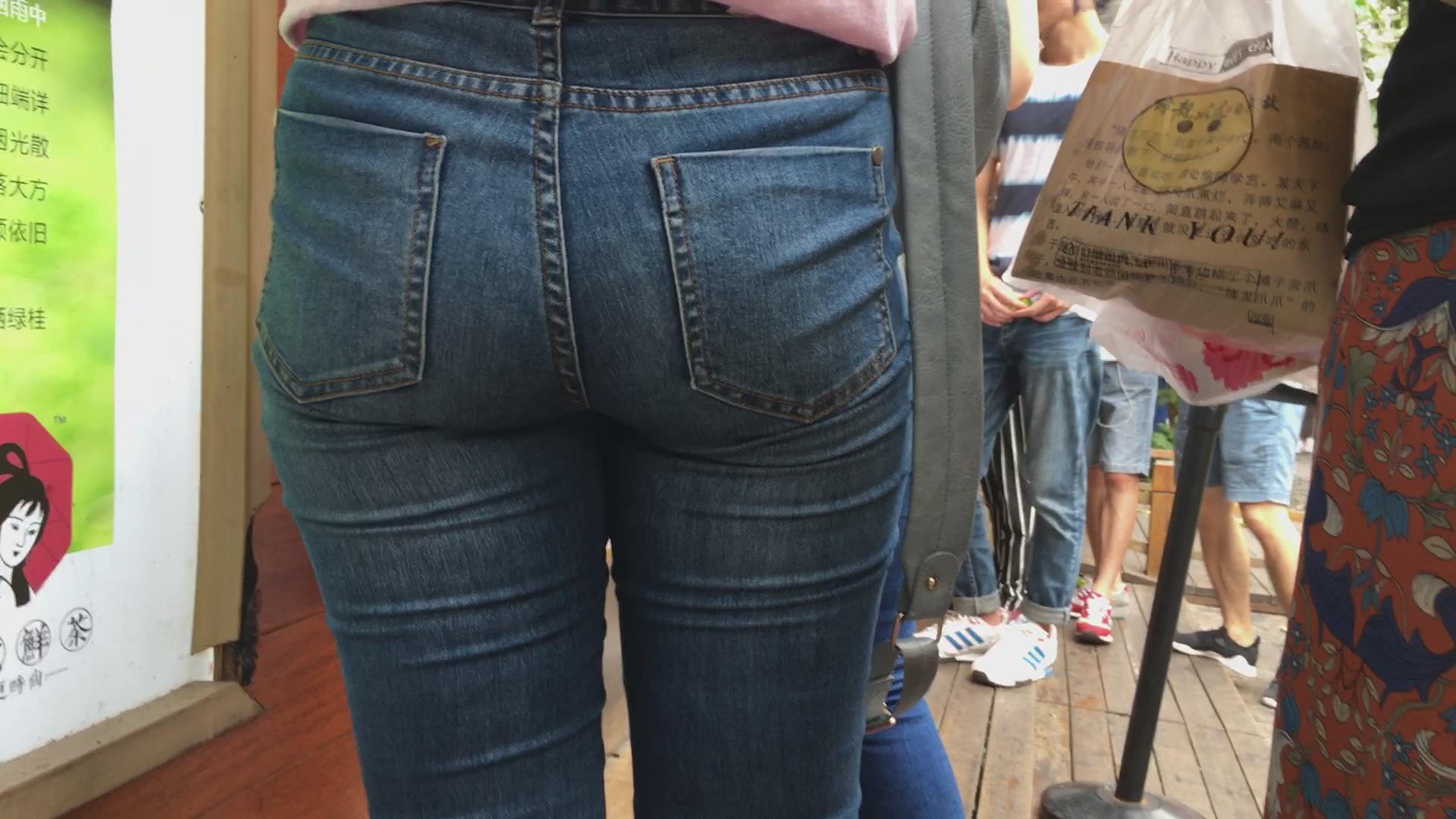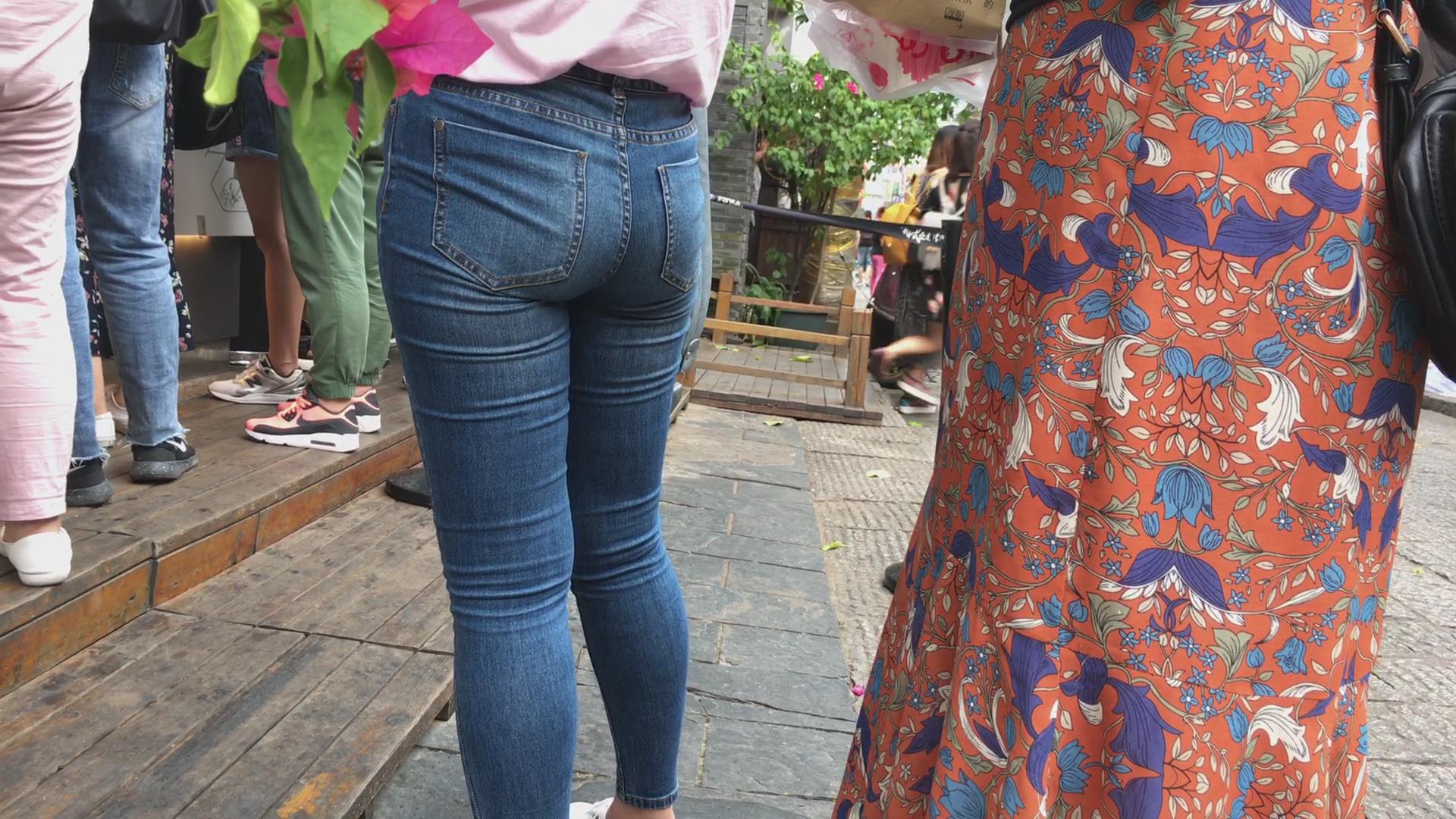 街拍紧致肉臀蓝色牛仔裤美女 编号5370