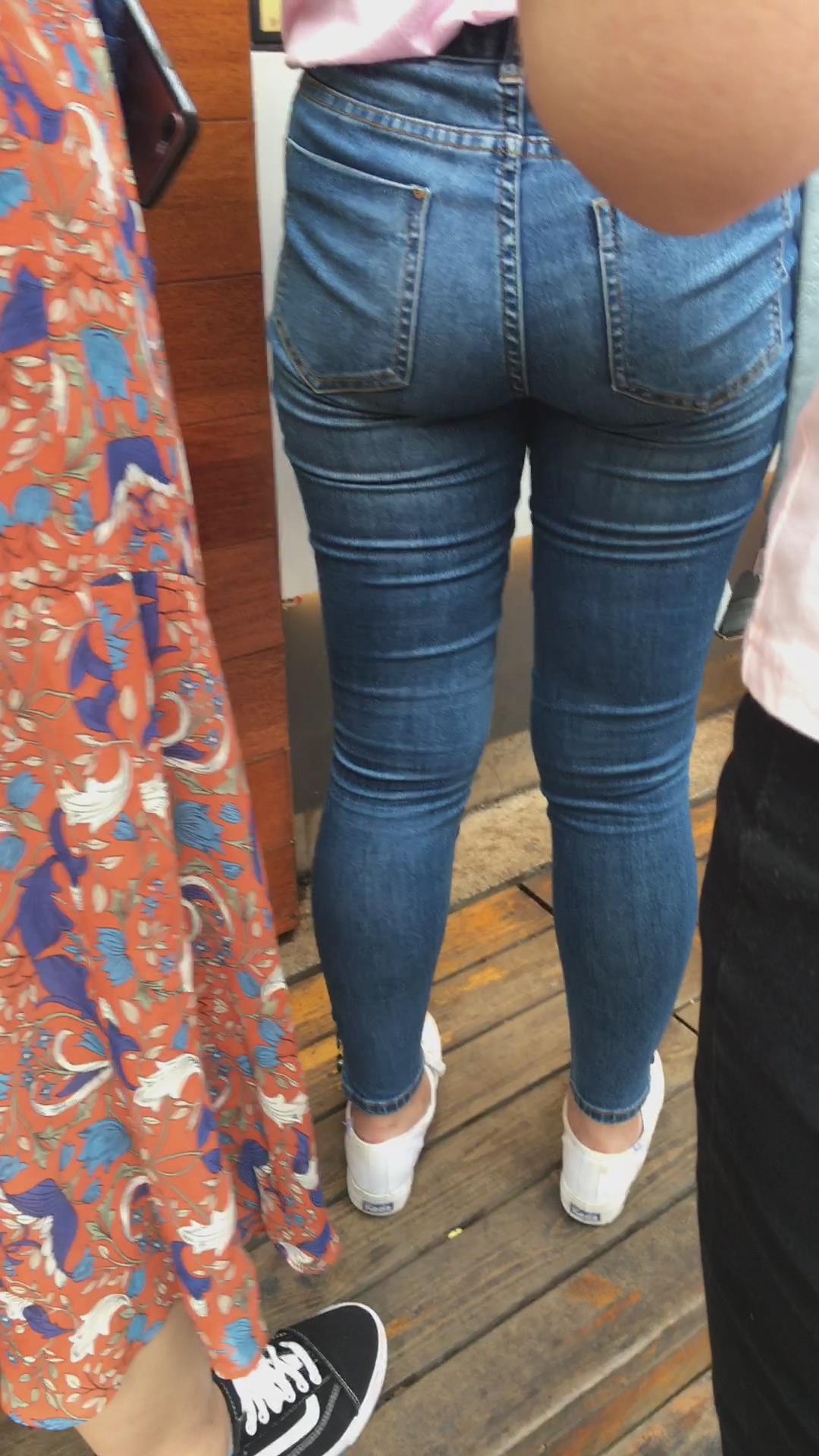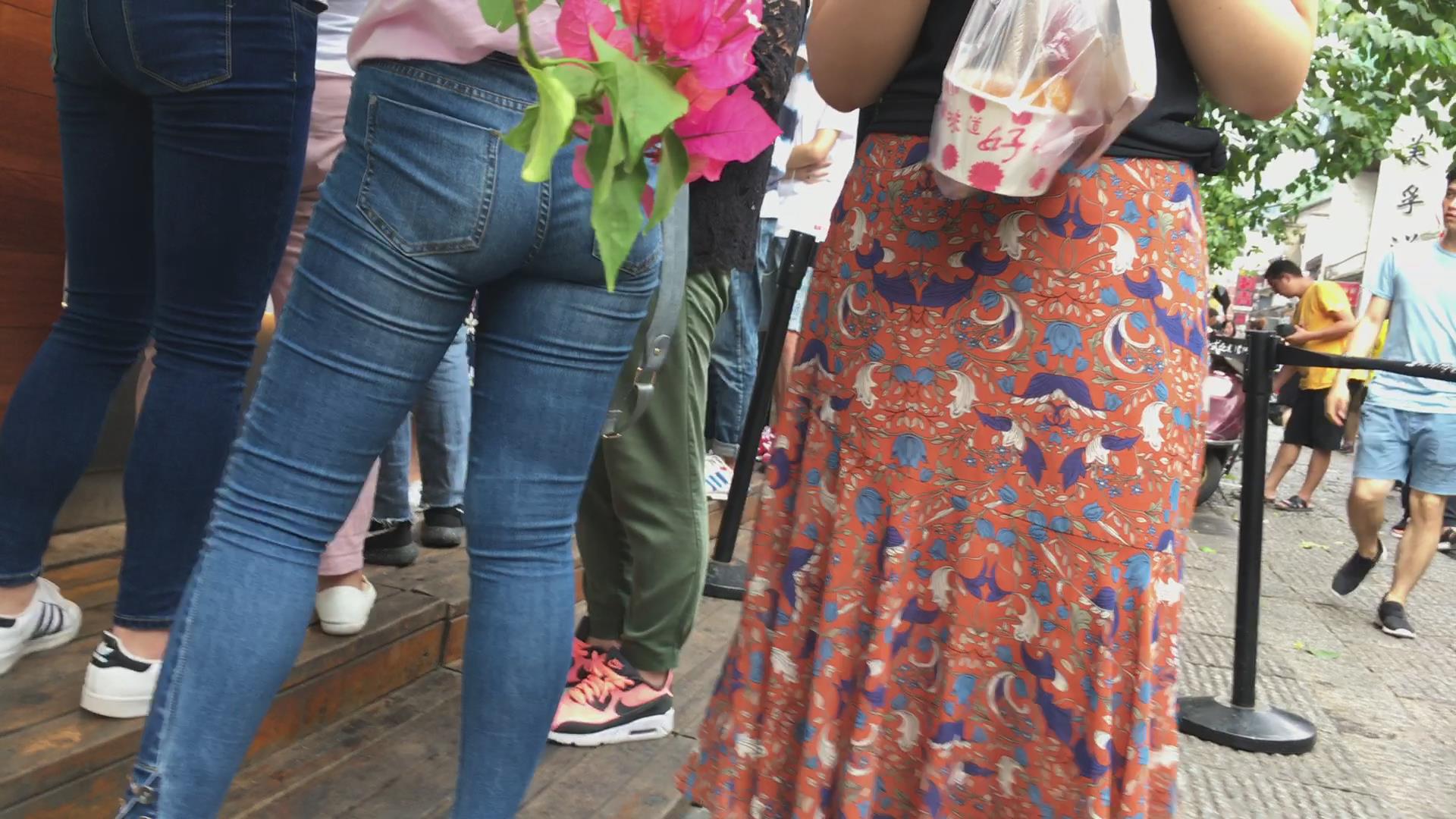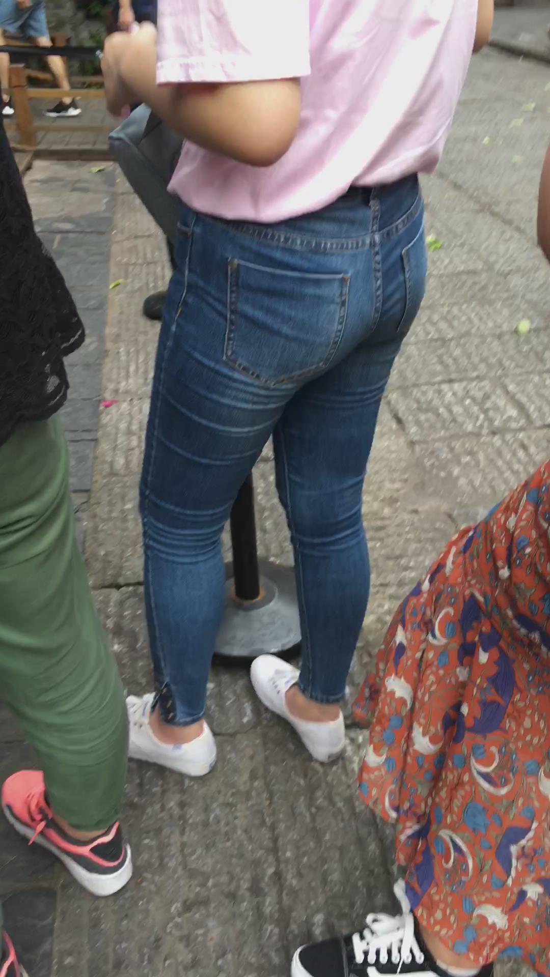 街拍紧致肉臀蓝色牛仔裤美女 编号5370