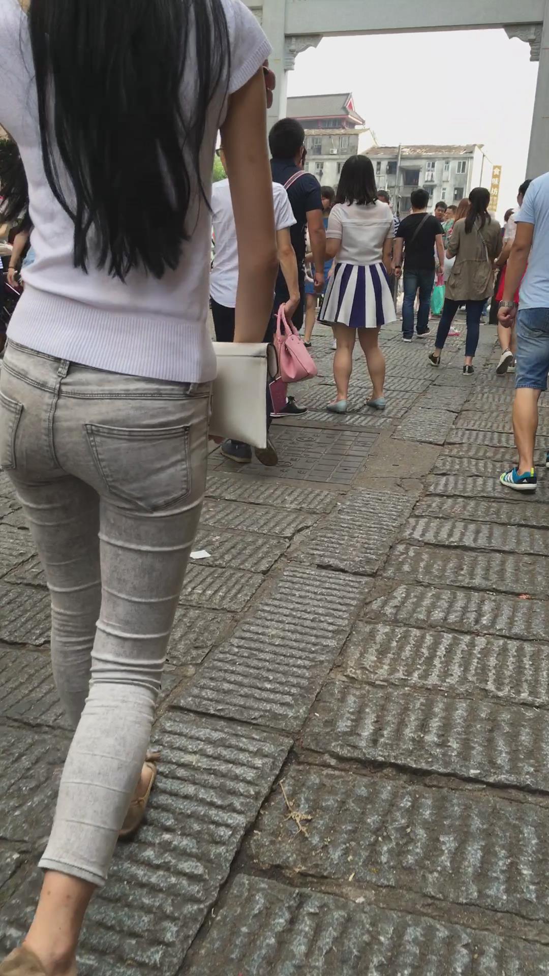 修身灰色牛仔裤细腿苗条青春美女 编号6120