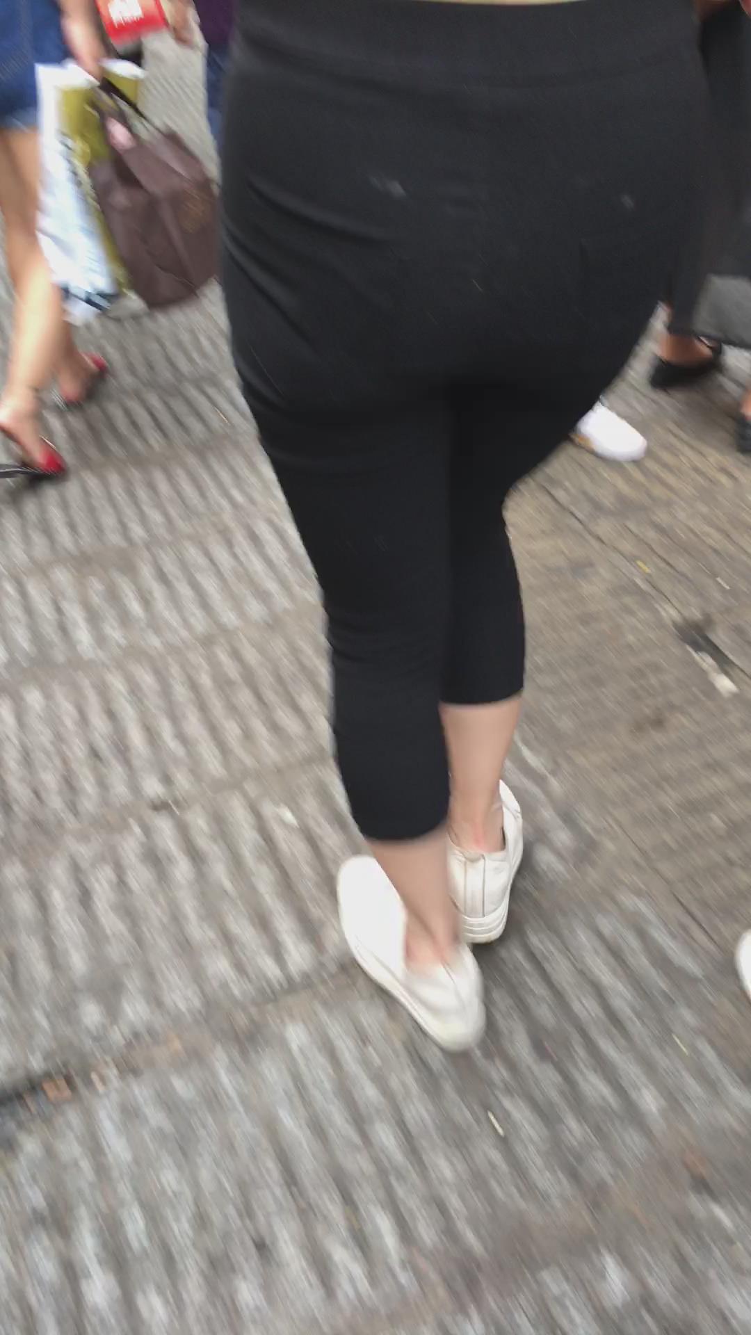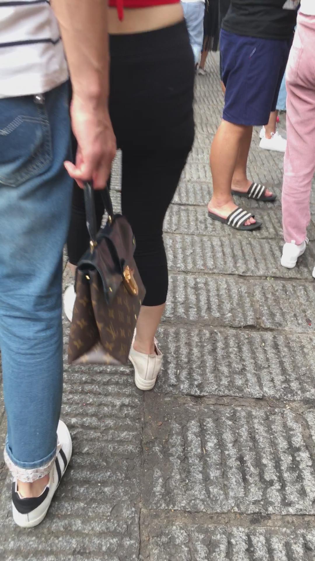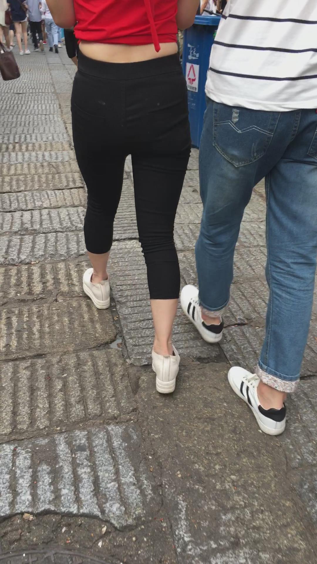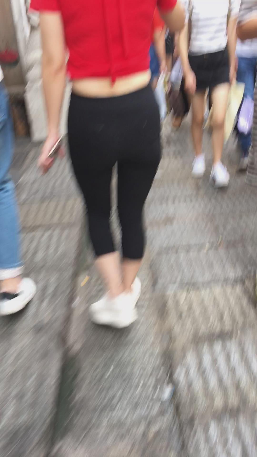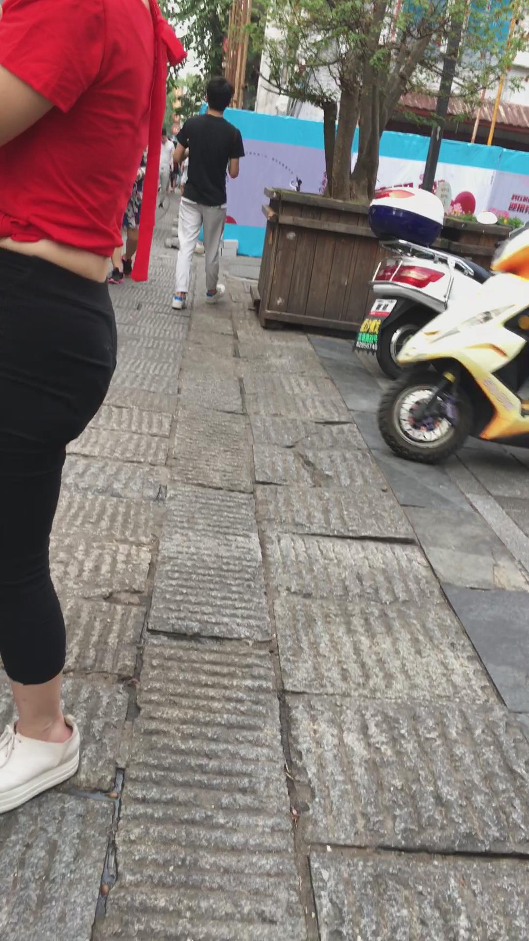 街拍红衣丰臀大屁屁紧身裤美女 编号5375