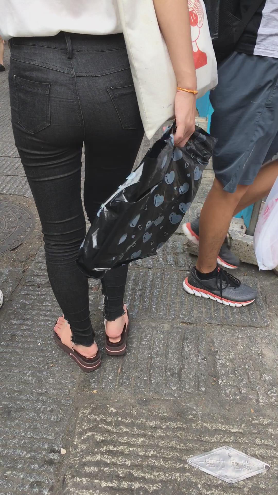 街拍极品紧身裤美臀青春少女 编号5376