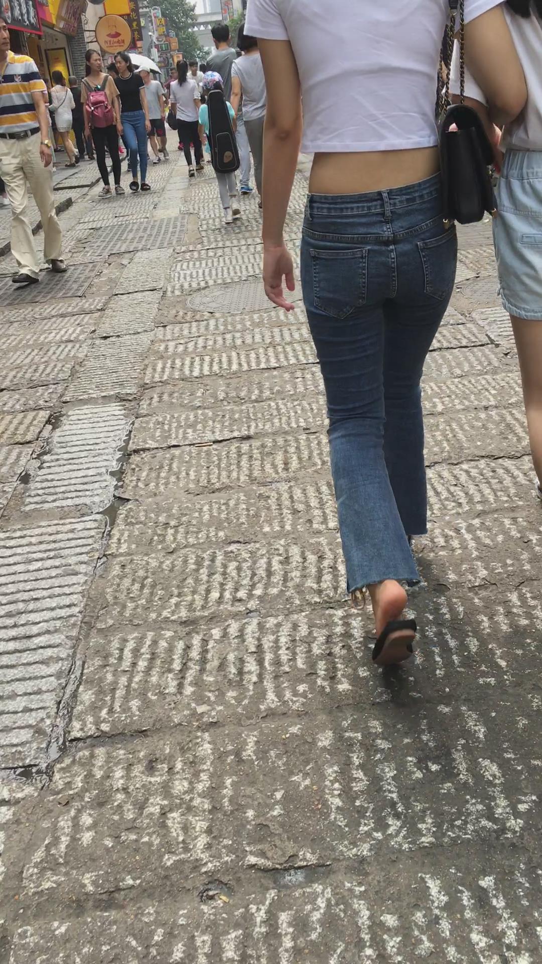 街拍露出小蛮腰的紧牛超大号bra美女 编号5380