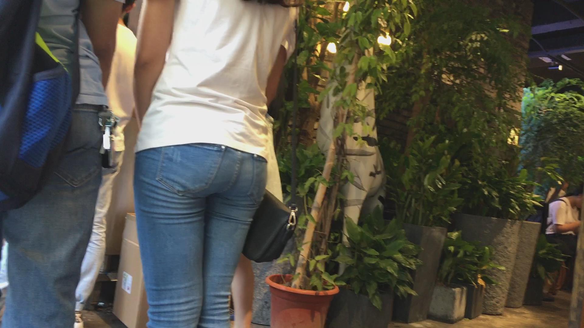街拍极品圆润苹果臀紧身蓝牛美女 编号5384