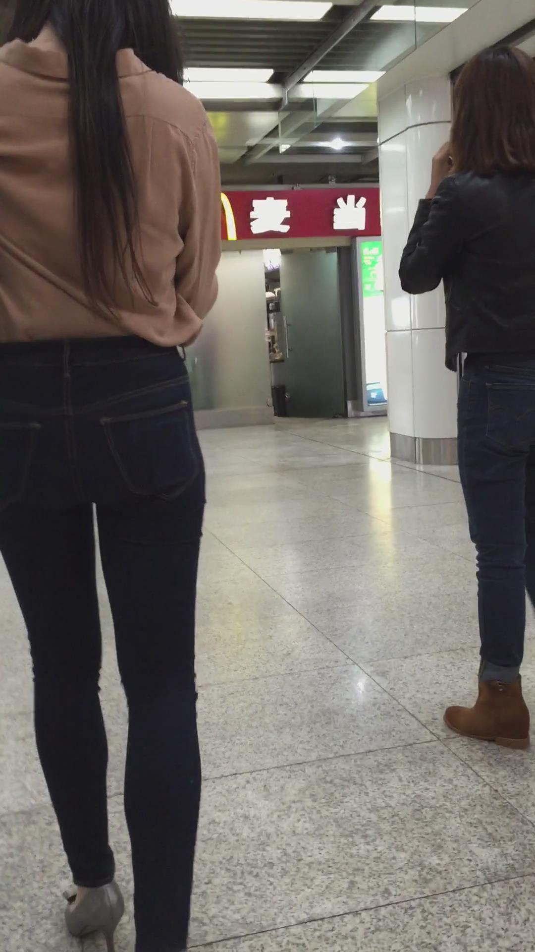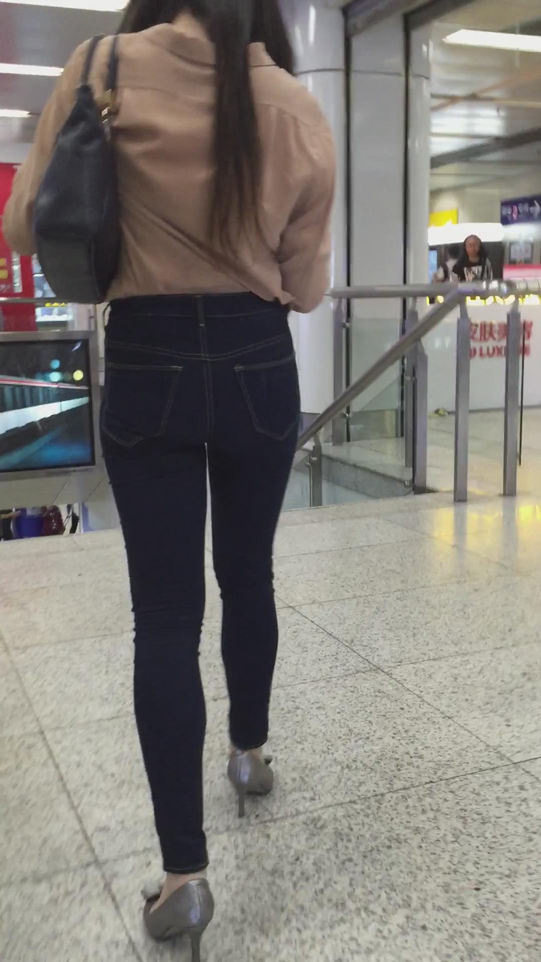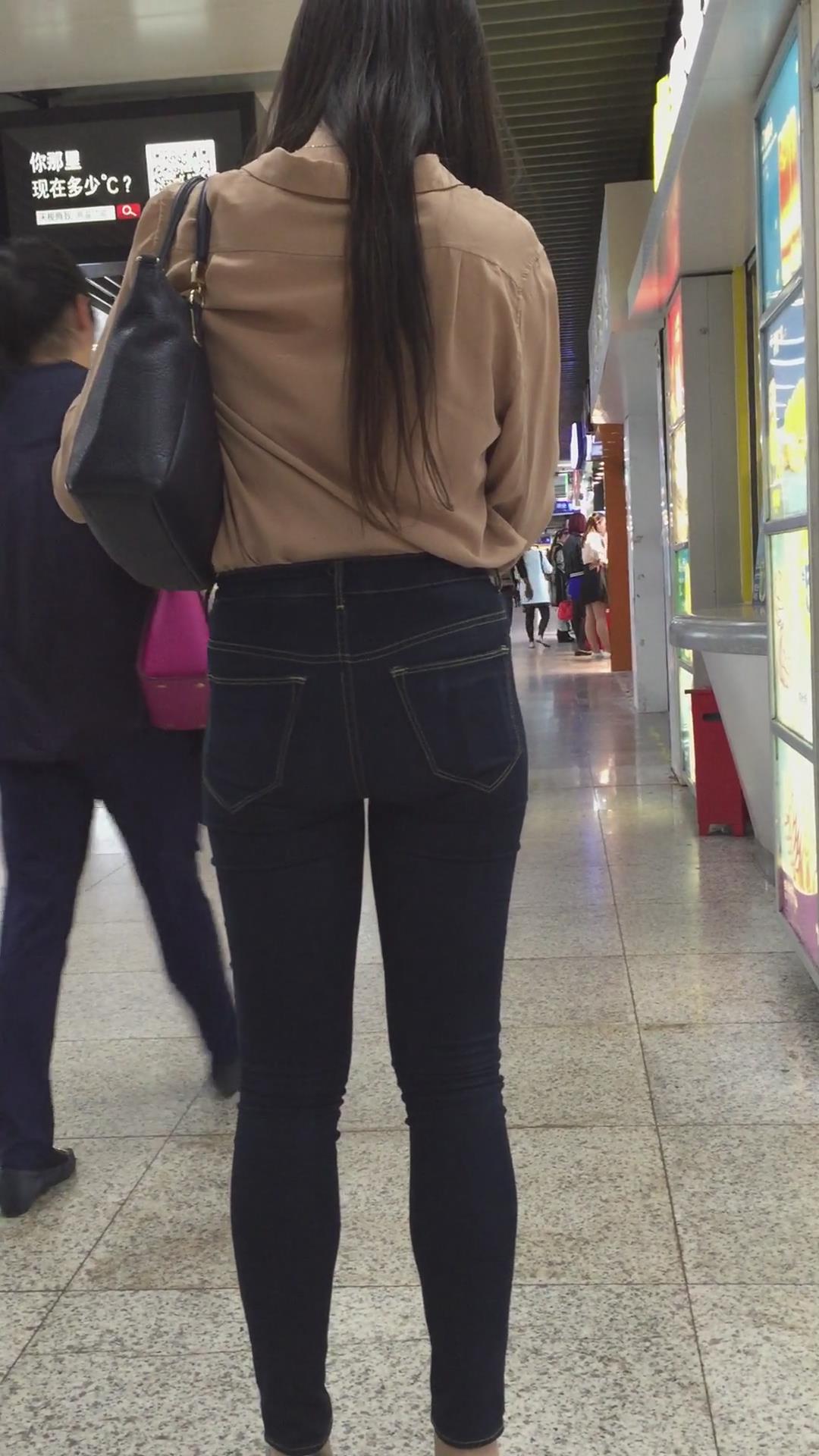 跟拍刚下地铁的紧身牛仔裤美女 编号5388