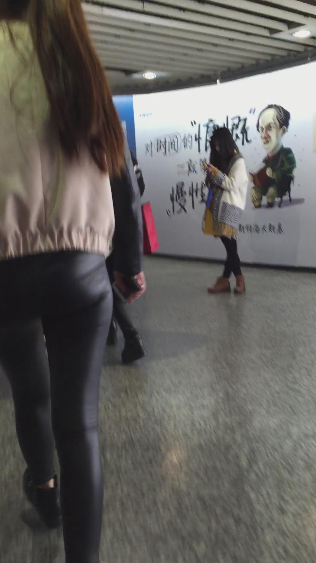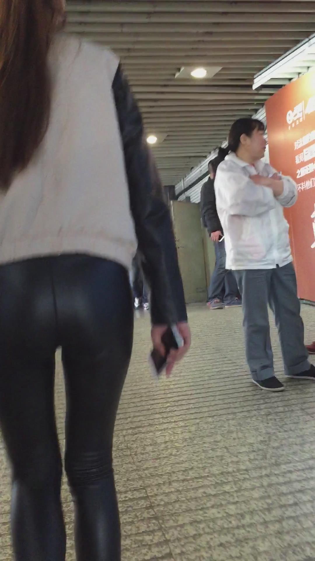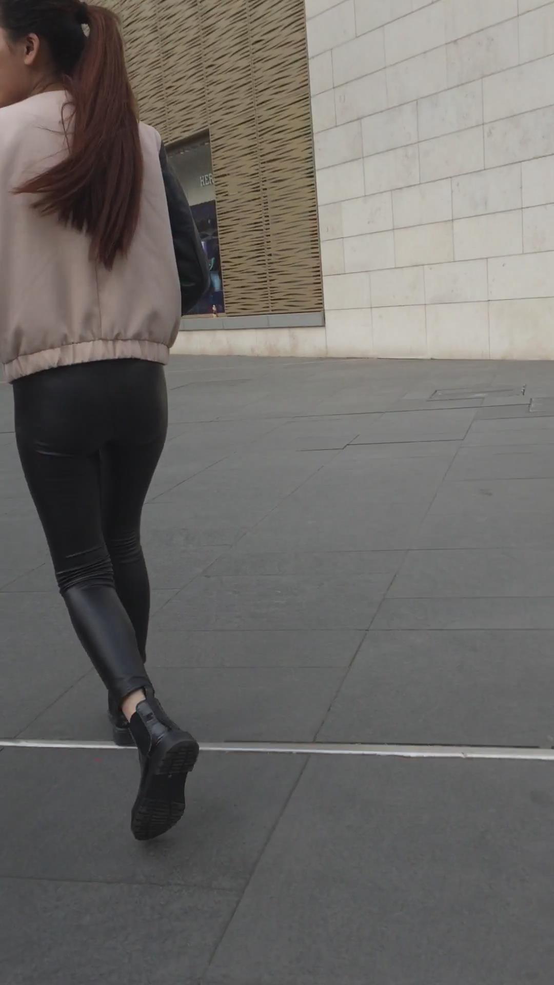 街拍马尾辫紧身皮裤美眉,大美臀真圆 编号5390