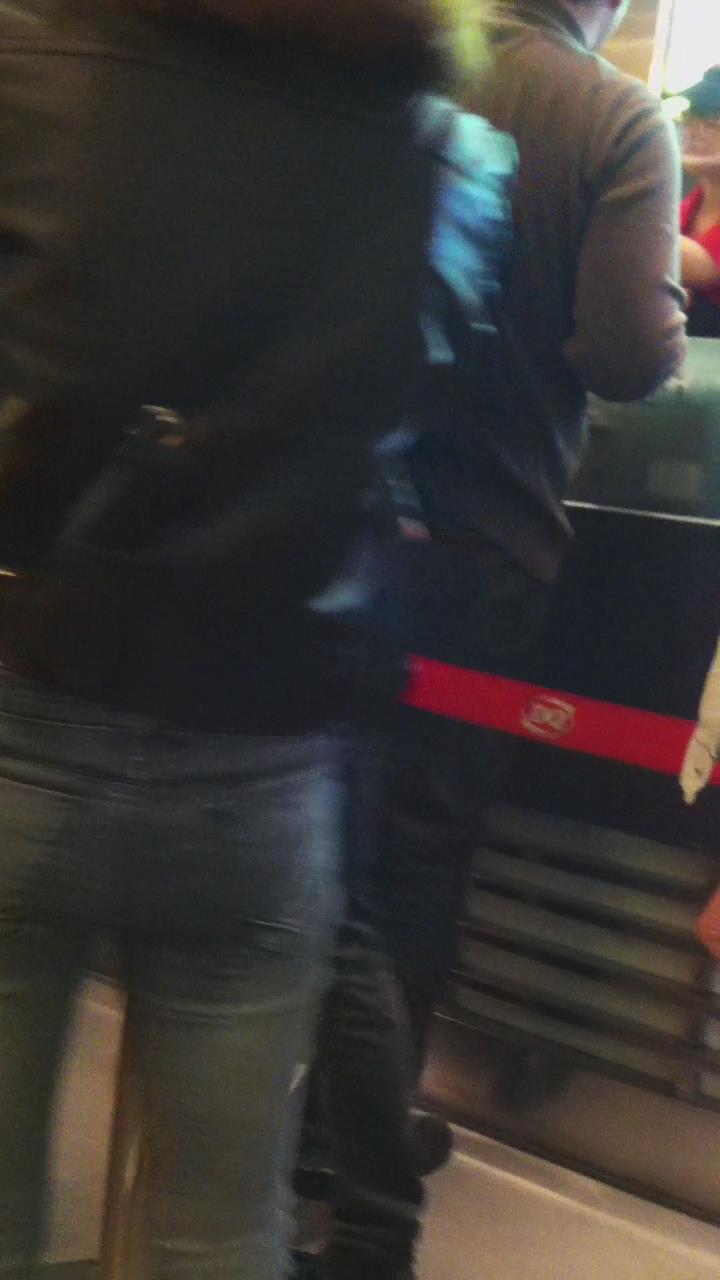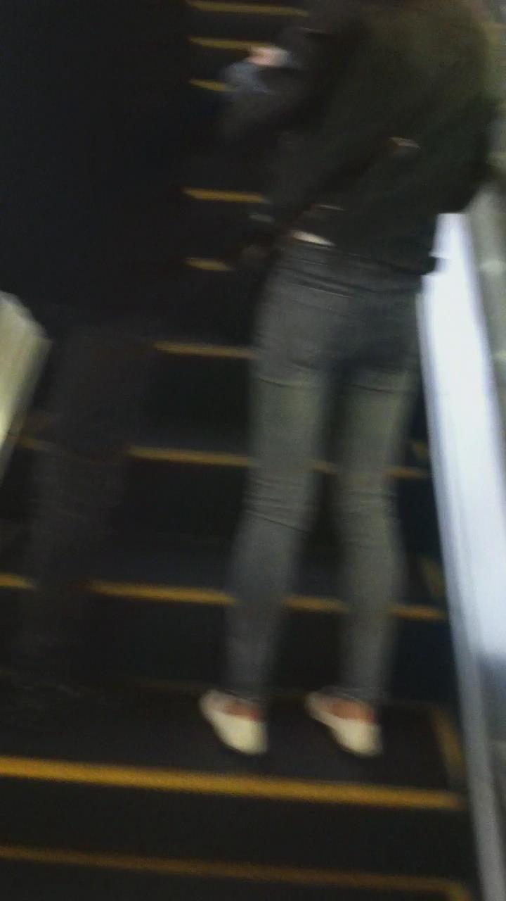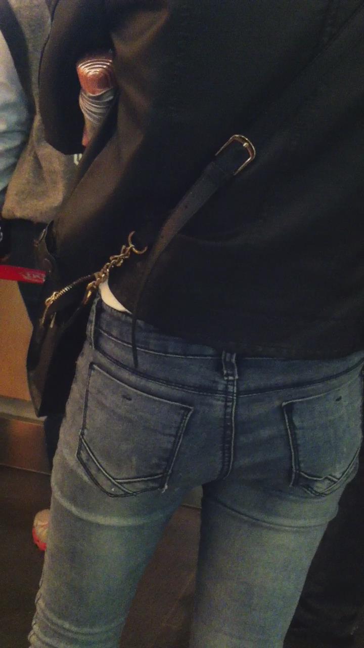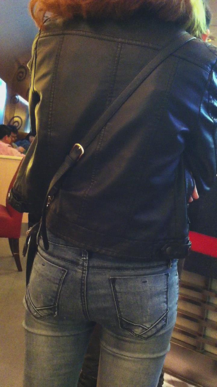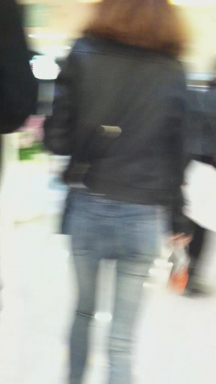 街拍紧身蓝色牛仔裤妹子 编号5393