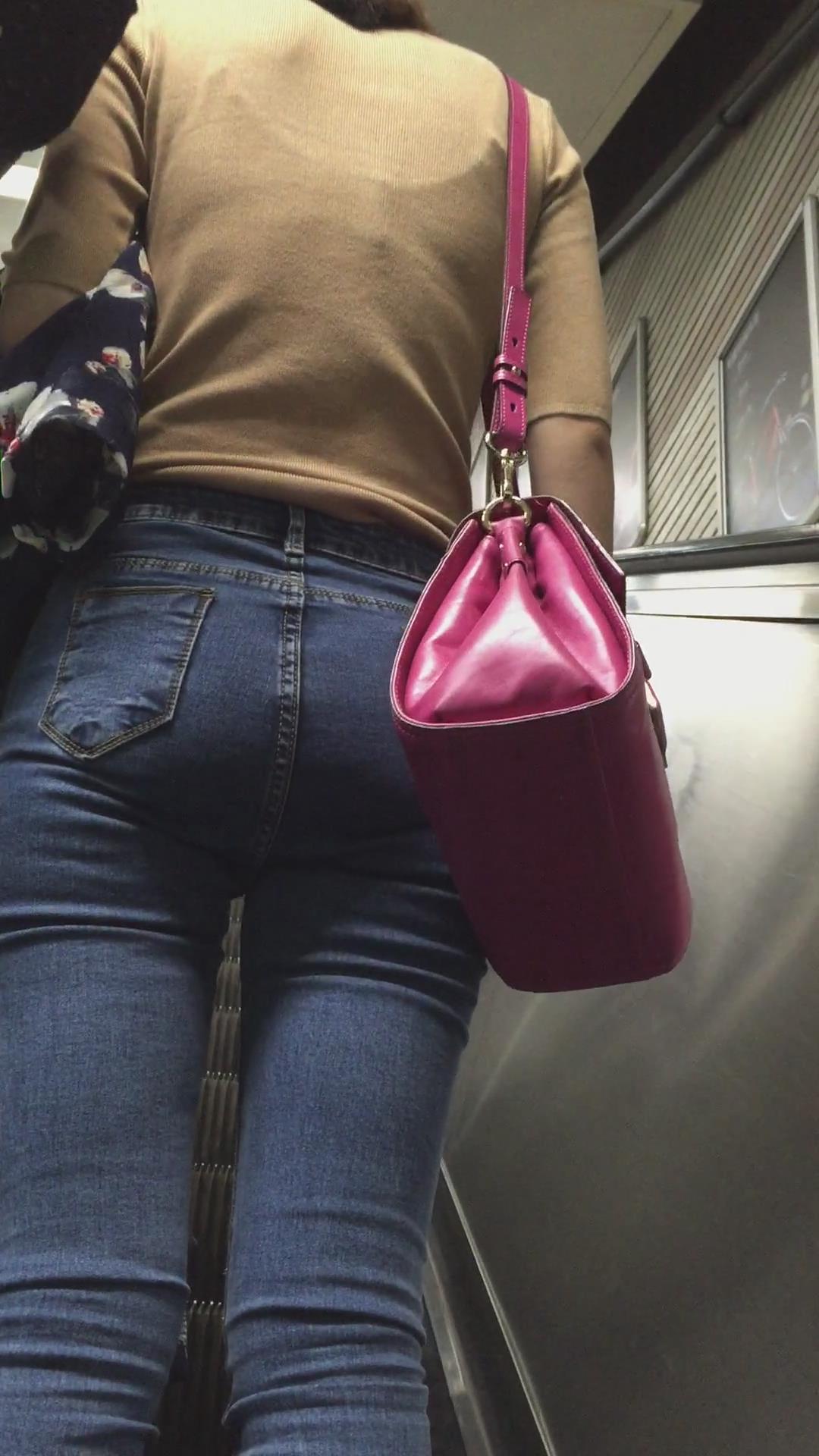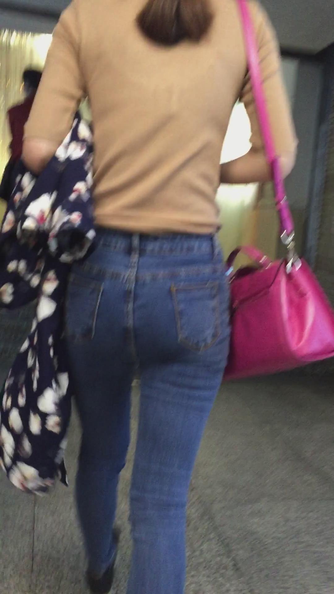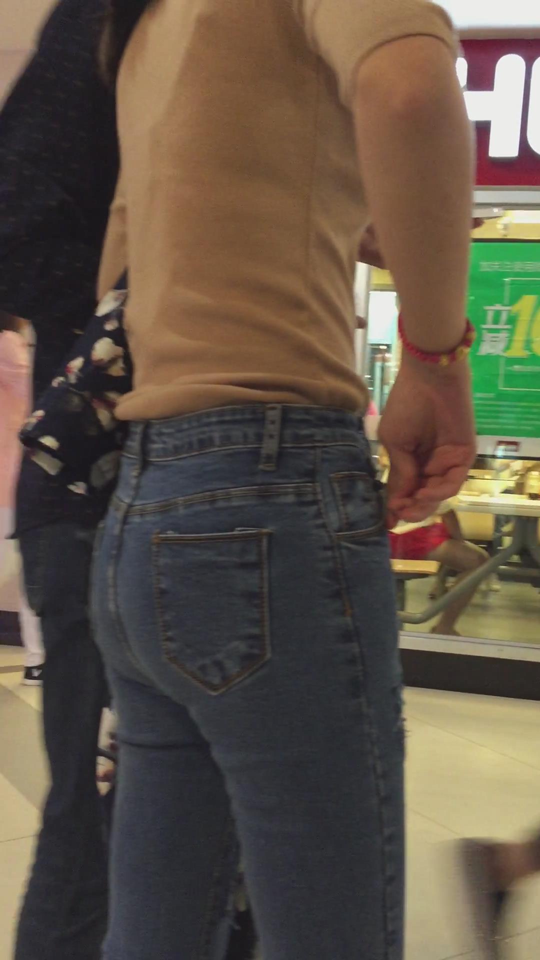 街拍紧身蓝色牛仔裤少妇 编号5401
