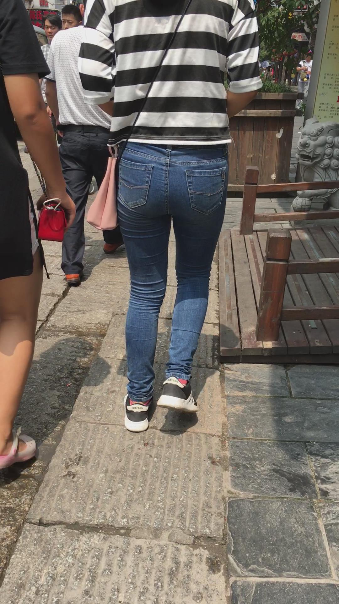 街拍紧身蓝色牛仔裤妹纸 编号5412