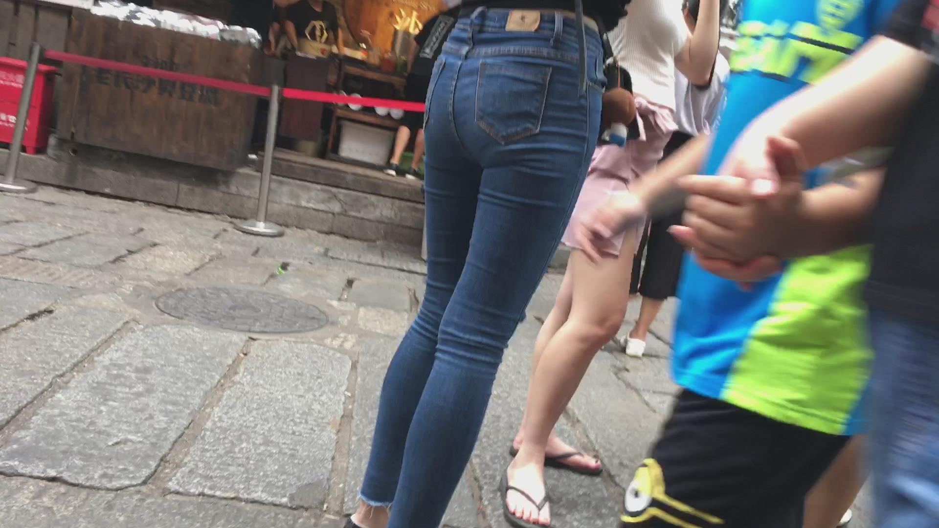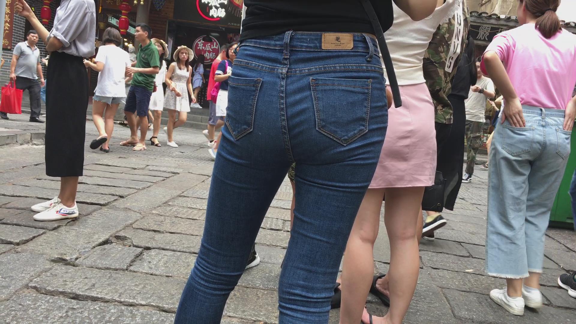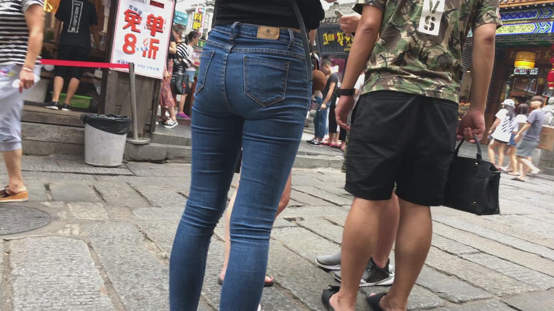街拍超紧身蓝色牛仔裤小姐姐,pp很给力 编号5415