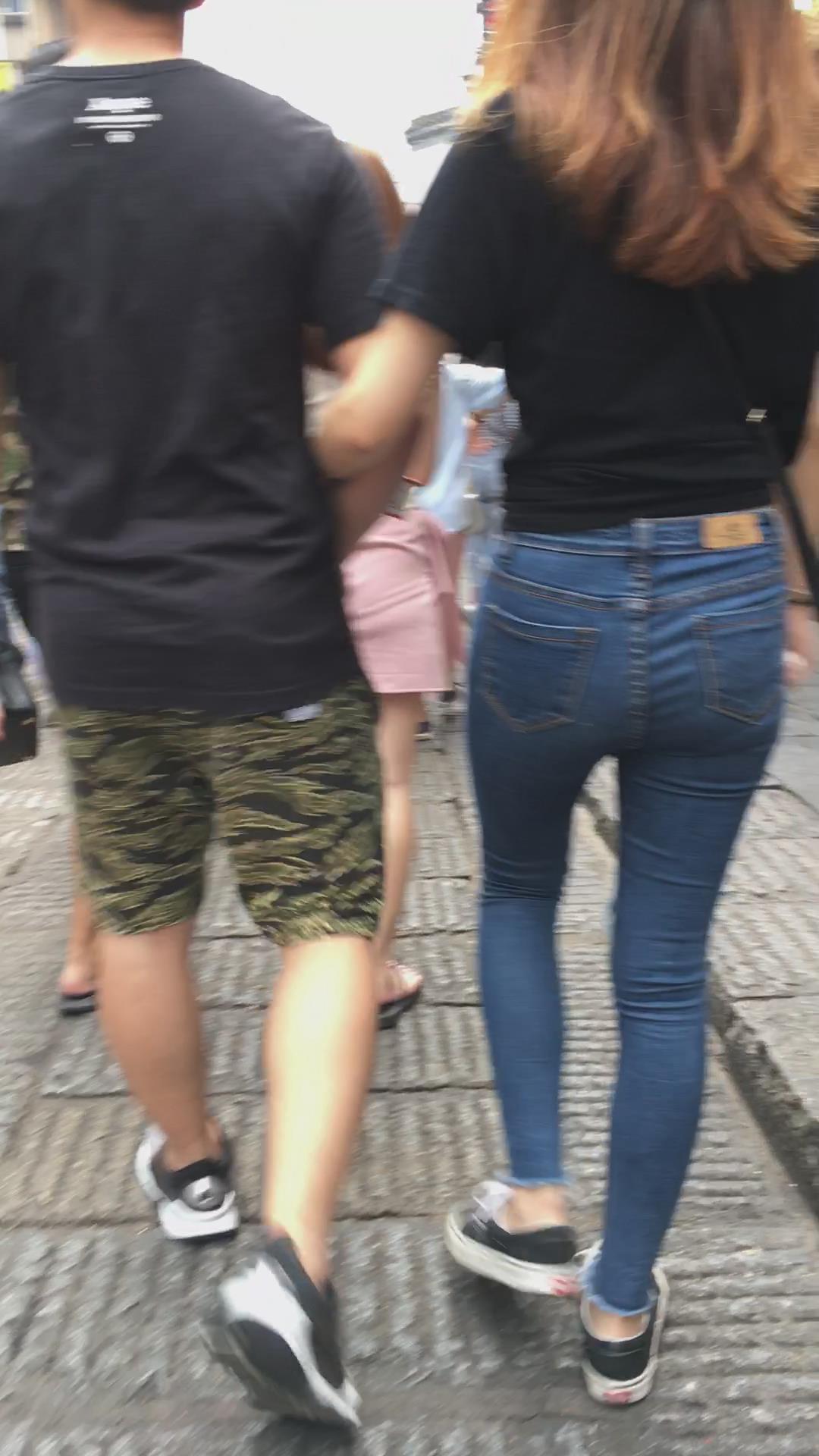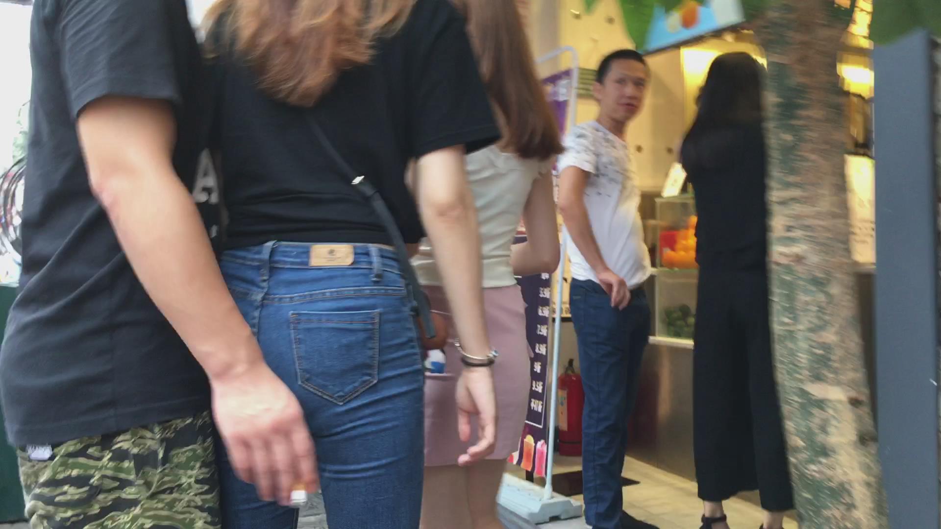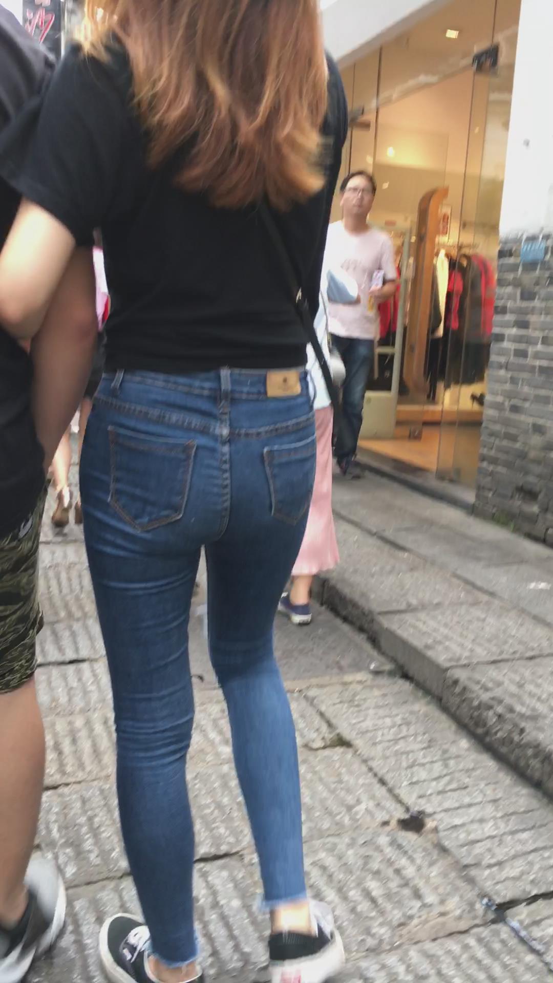 街拍超紧身蓝色牛仔裤小姐姐,pp很给力 编号5415